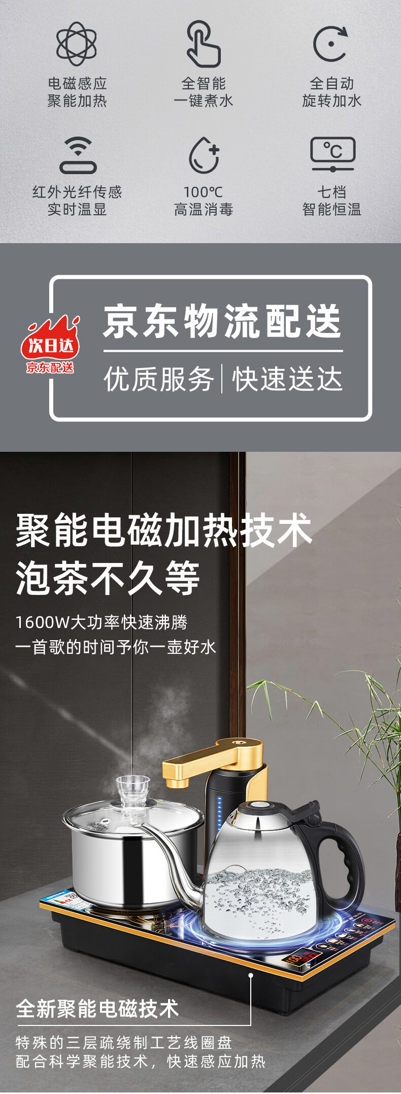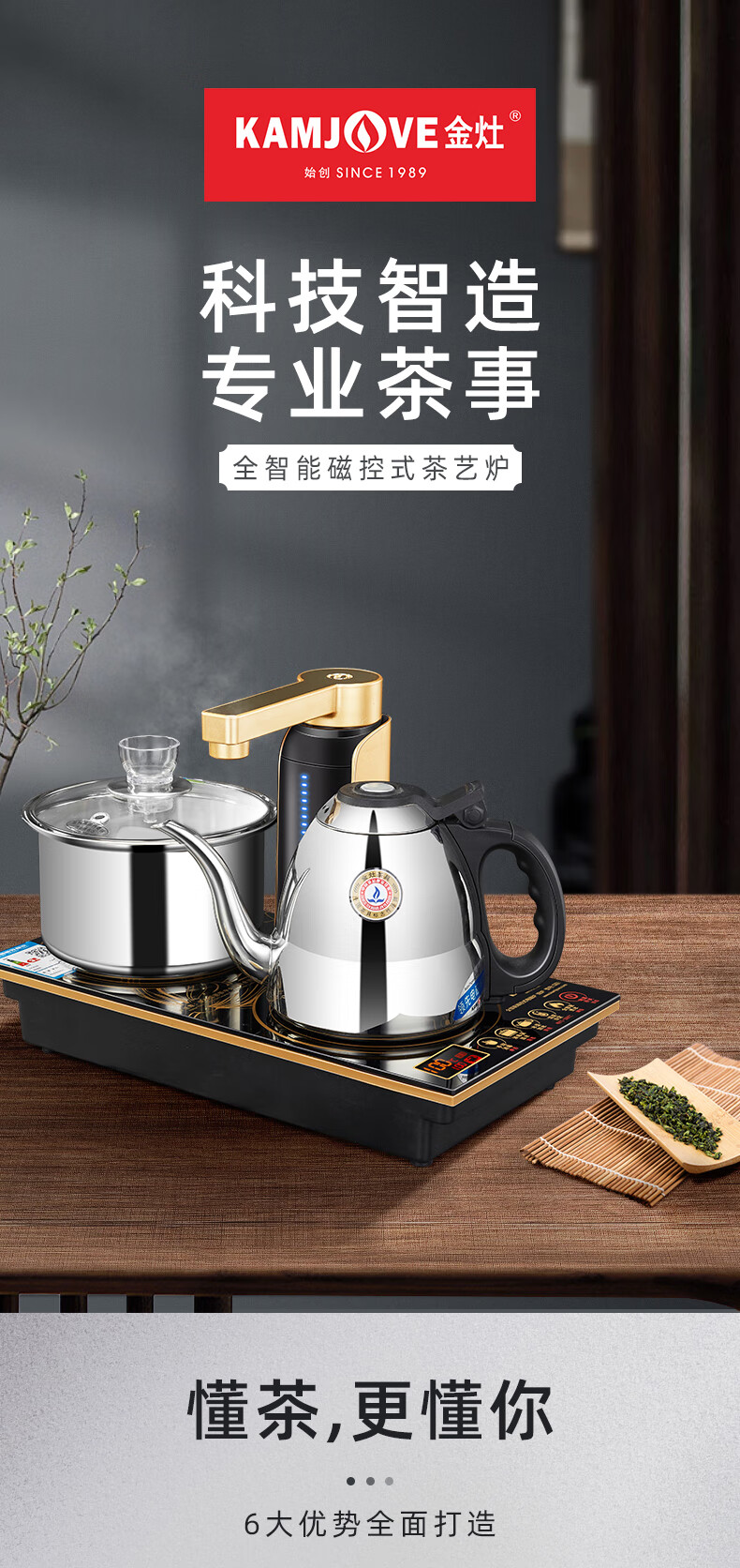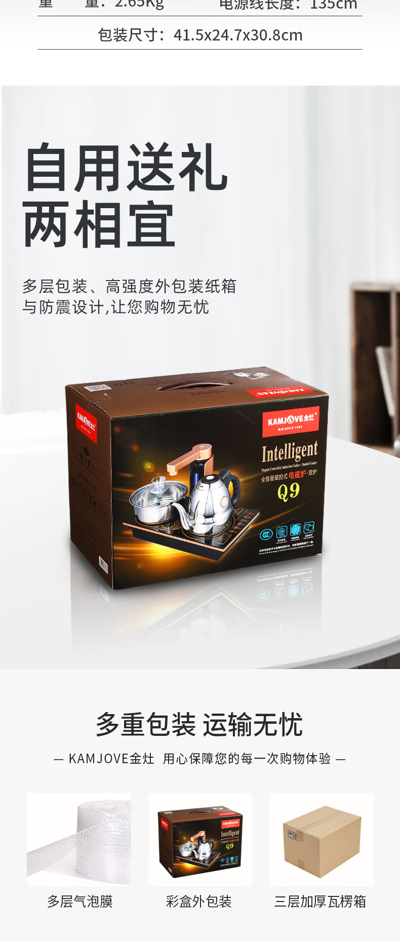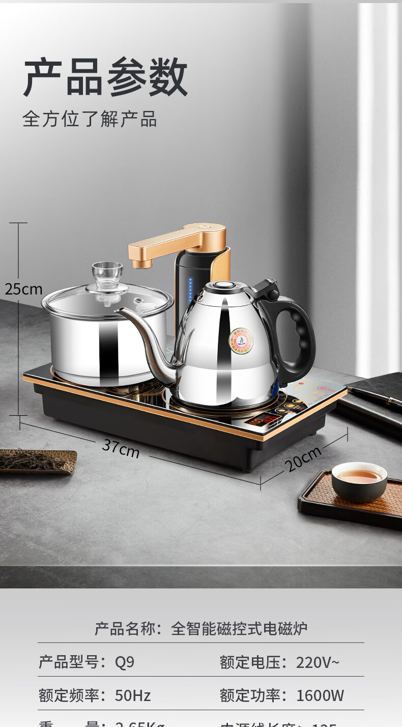 金灶(KAMJOVE) 自动上水电磁炉全智能茶具电茶炉茶台烧水壶电磁泡茶壶烧水器自动上水 Q9 1L 黑色