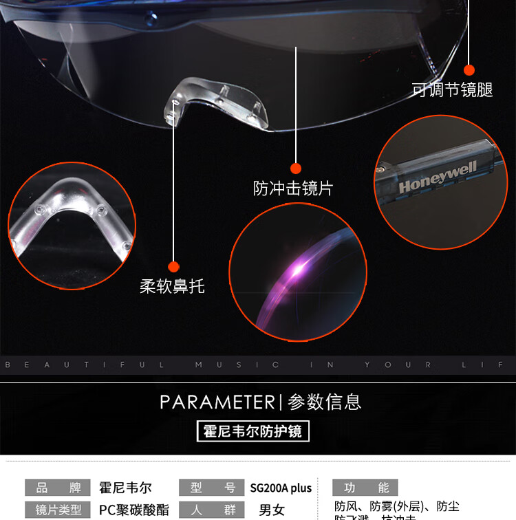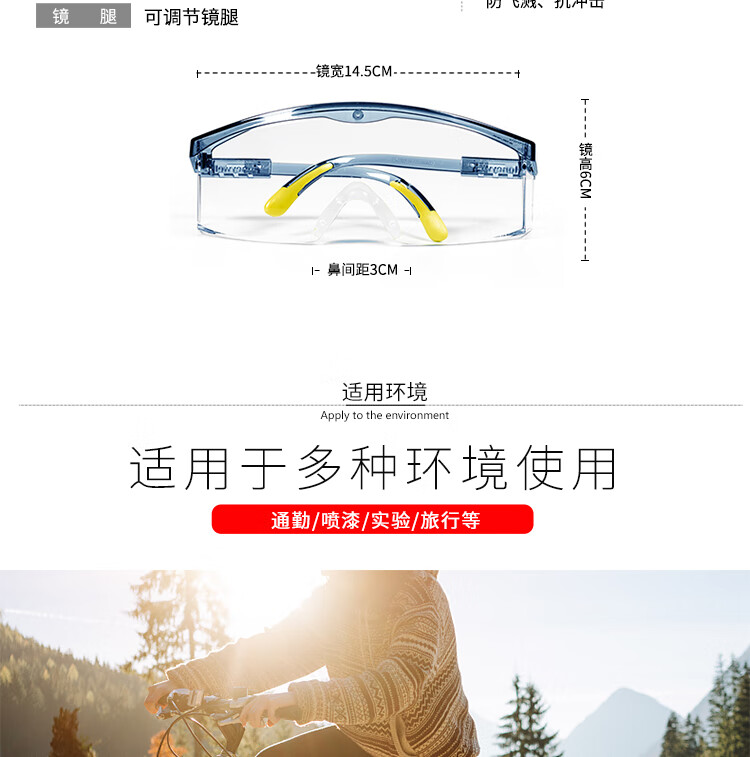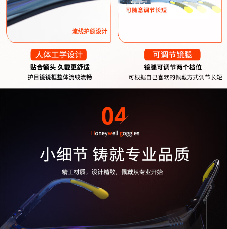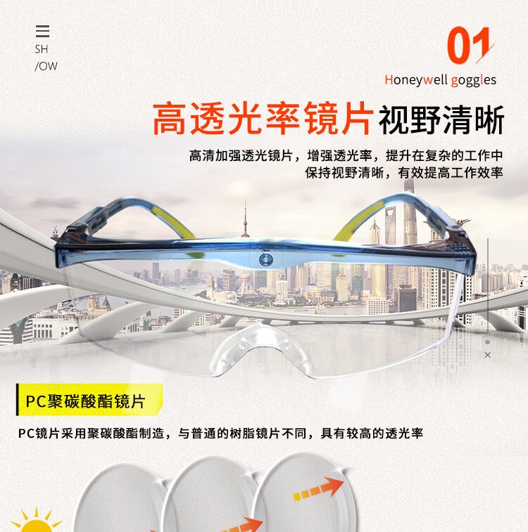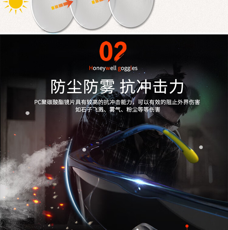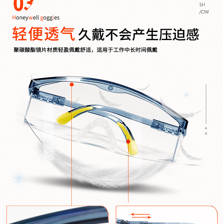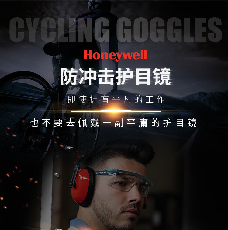 霍尼韦尔(Honeywell)防冲击骑行防飞溅高透光防雾可调节护目镜防风平镜防护眼镜开学