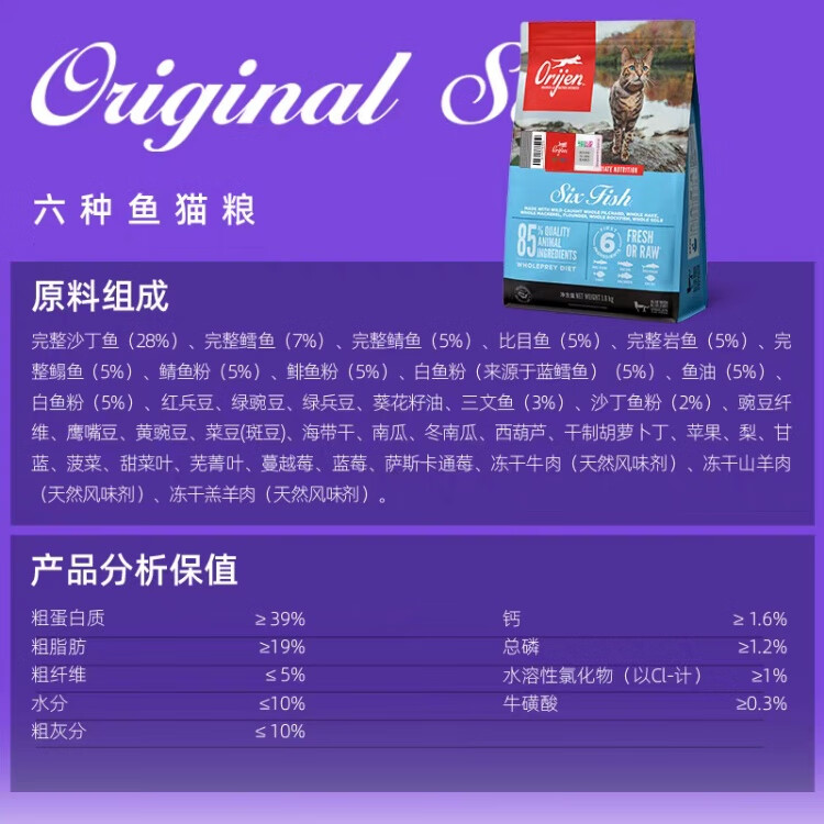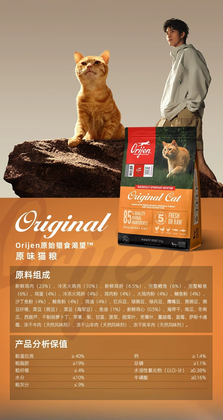 Orijen渴望猫粮成猫幼猫渴望六种鱼通用粮原味渴望鸡肉5.4kg布偶蓝猫 26.01月*美版冠军鸡肉5.4kg