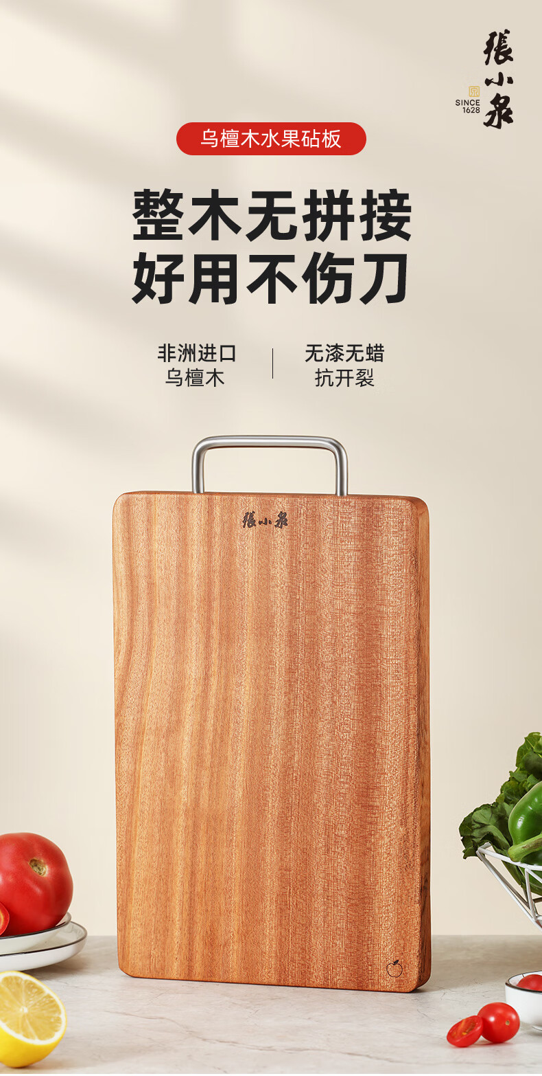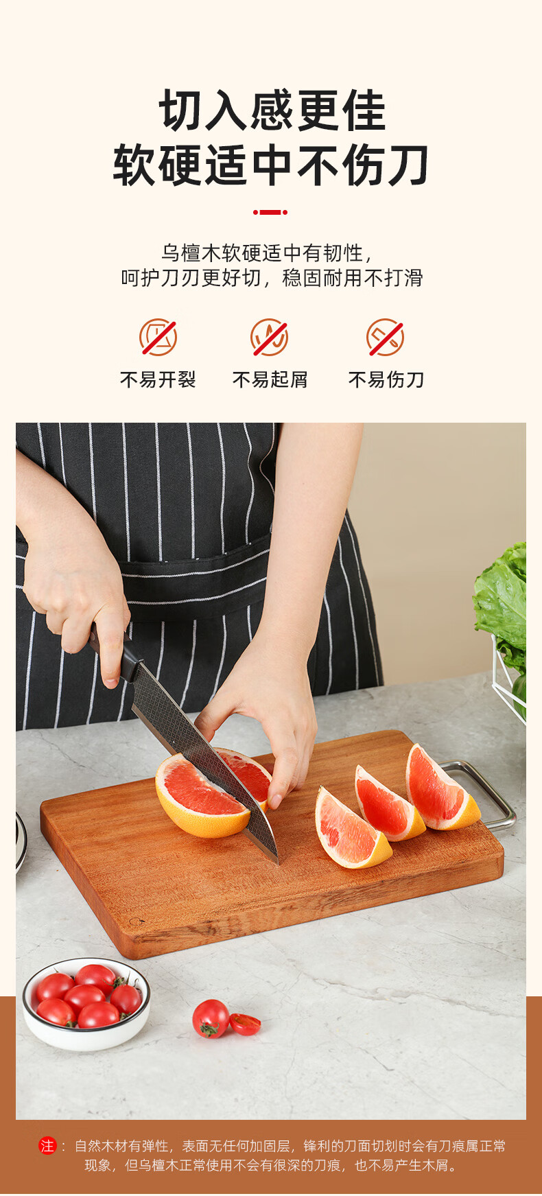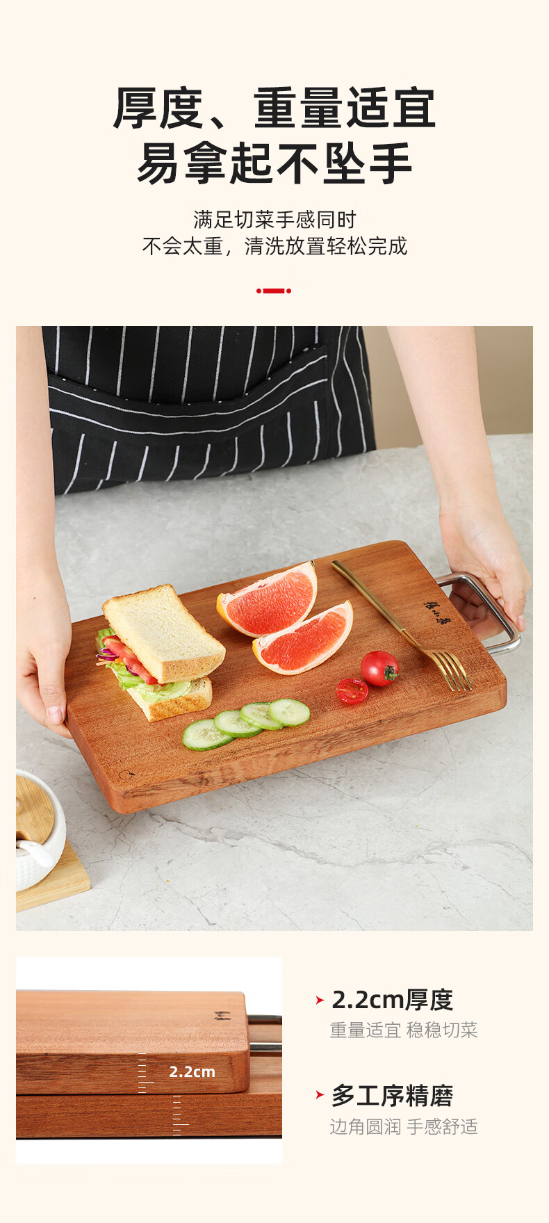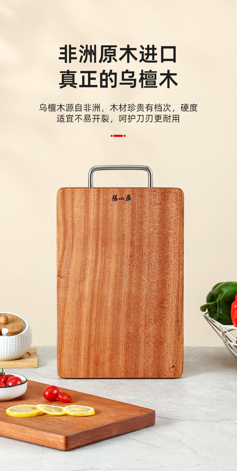 张小泉菜板砧板长方形水果板加厚家用案板占板粘板菜墩 乌檀木30*20*2.2cm