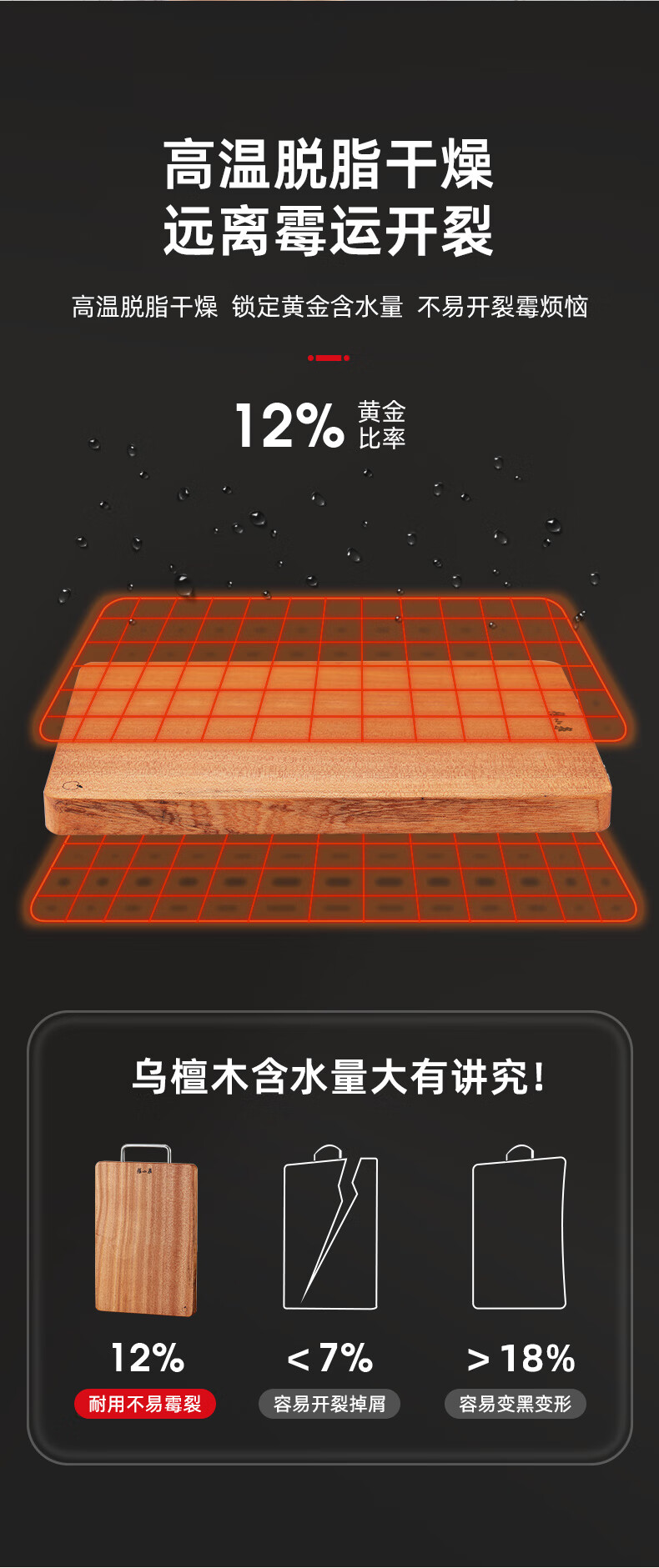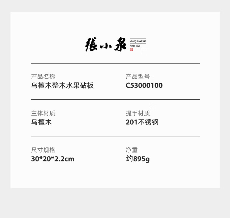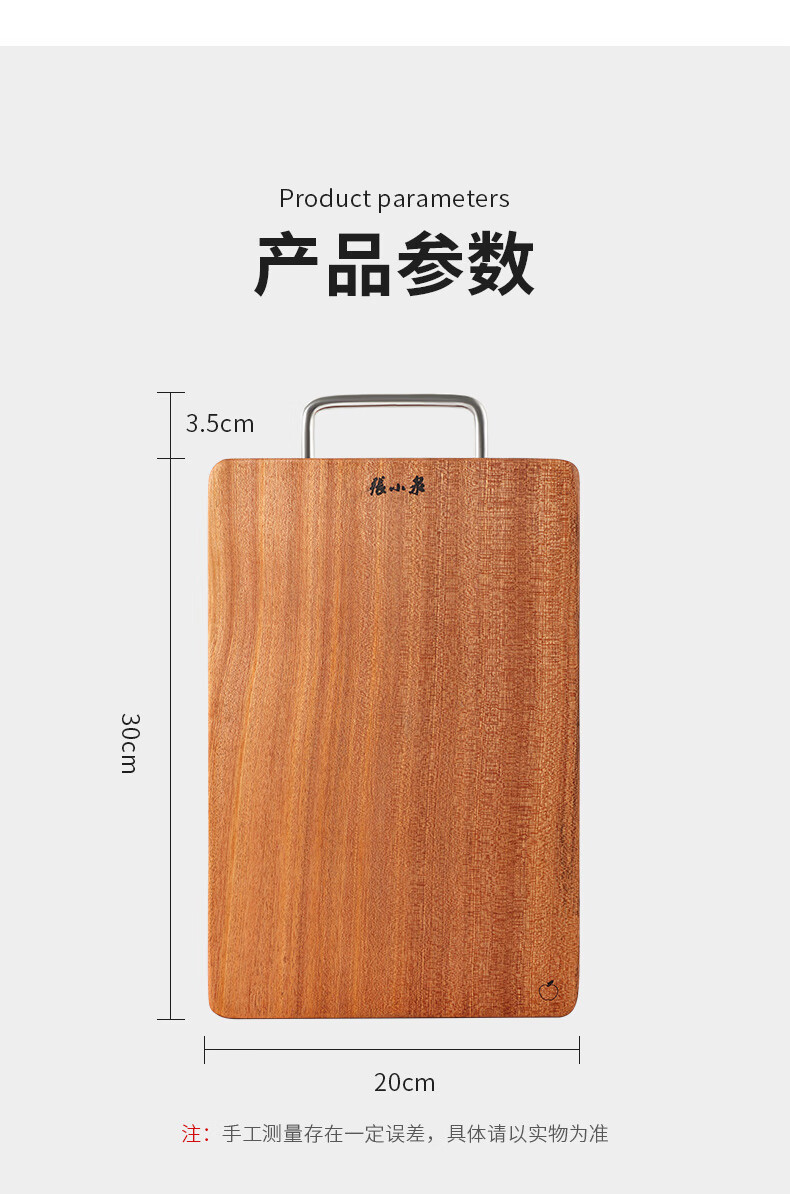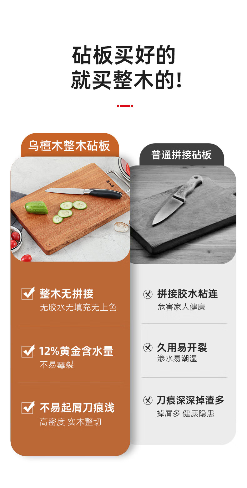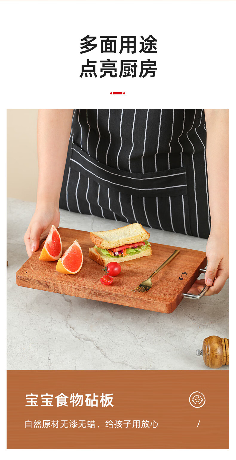 张小泉菜板砧板长方形水果板加厚家用案板占板粘板菜墩 乌檀木30*20*2.2cm