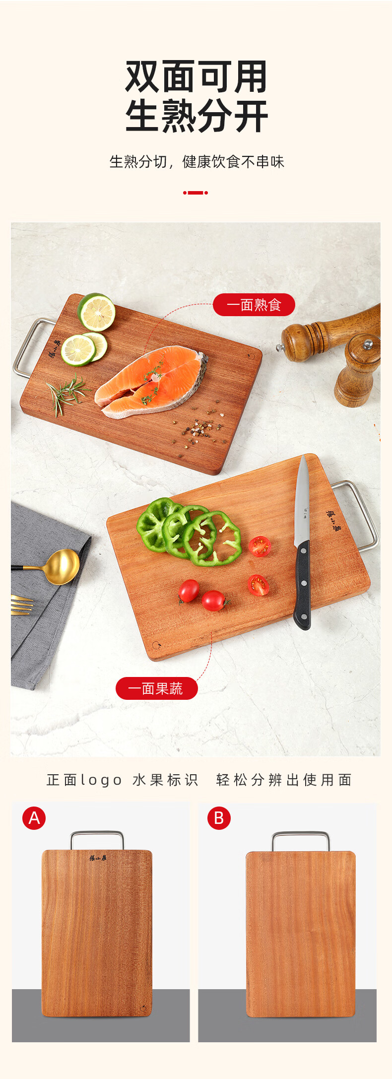 张小泉青绿系列菜板砧板家用双面菜板PP无漆无蜡加厚切菜板 乌檀木+PP(38.5cm*26.5cm*1.85cm)