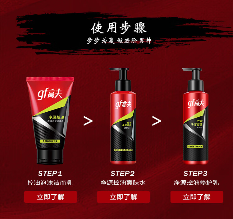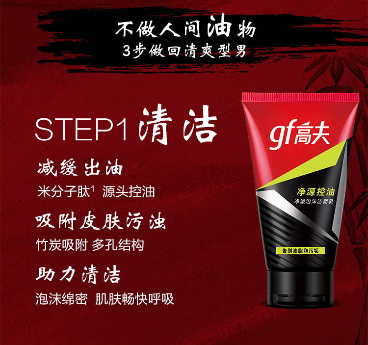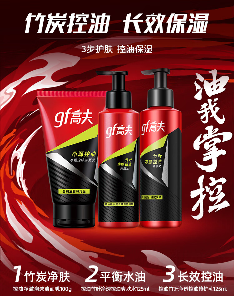 高夫男士护肤套装净源控油礼盒(洁面+水+乳)清洁保湿生日礼物送男友
