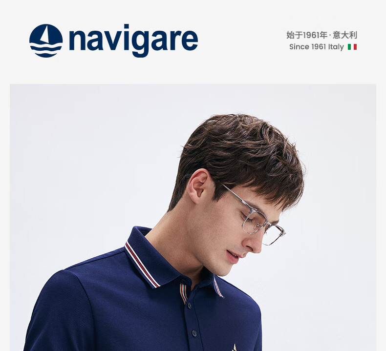 Navigare意大利小帆船男士速干抑菌凉感通勤短袖POLO衫1325525564 蓝 M