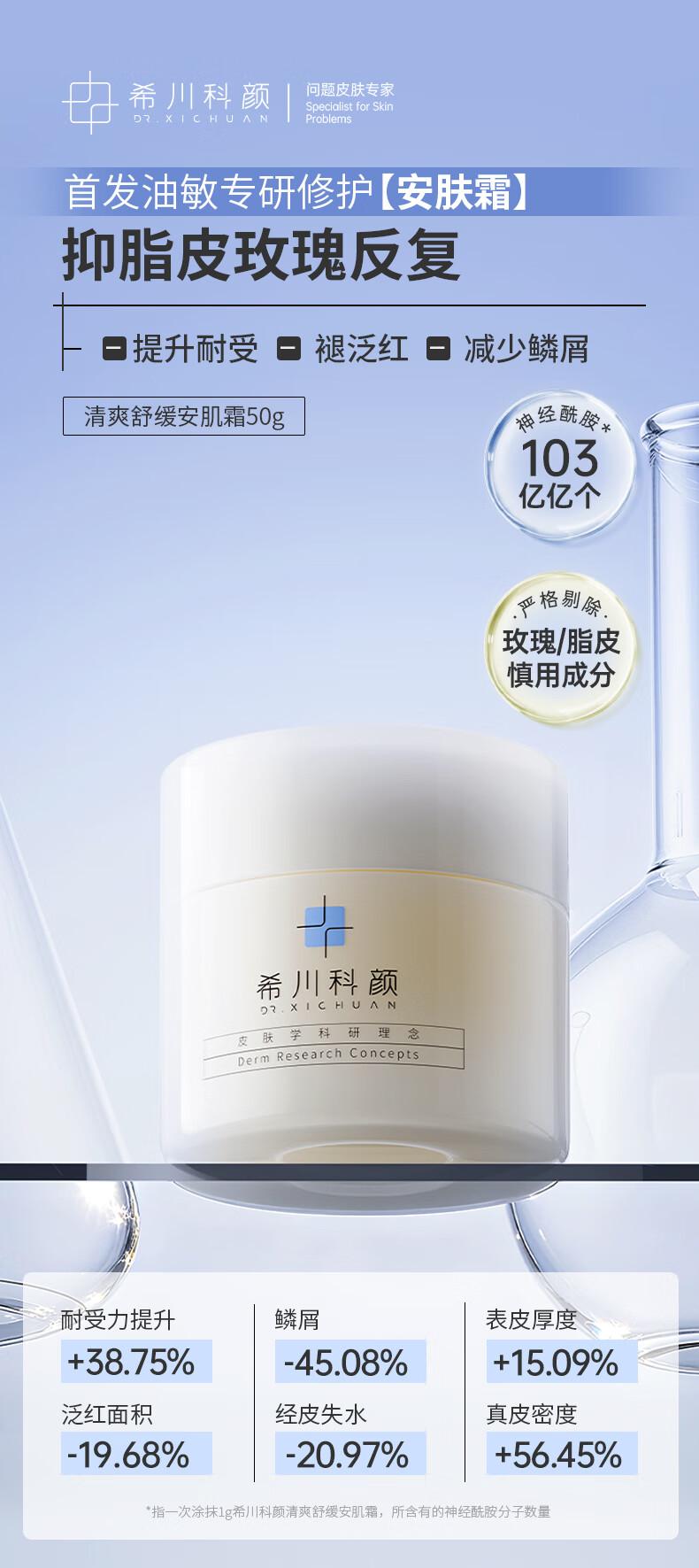 希川科颜安肤霜清爽舒缓修护保湿抗皱紧致控油面霜50g 新品上市 圣诞礼物