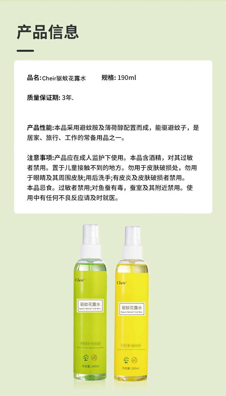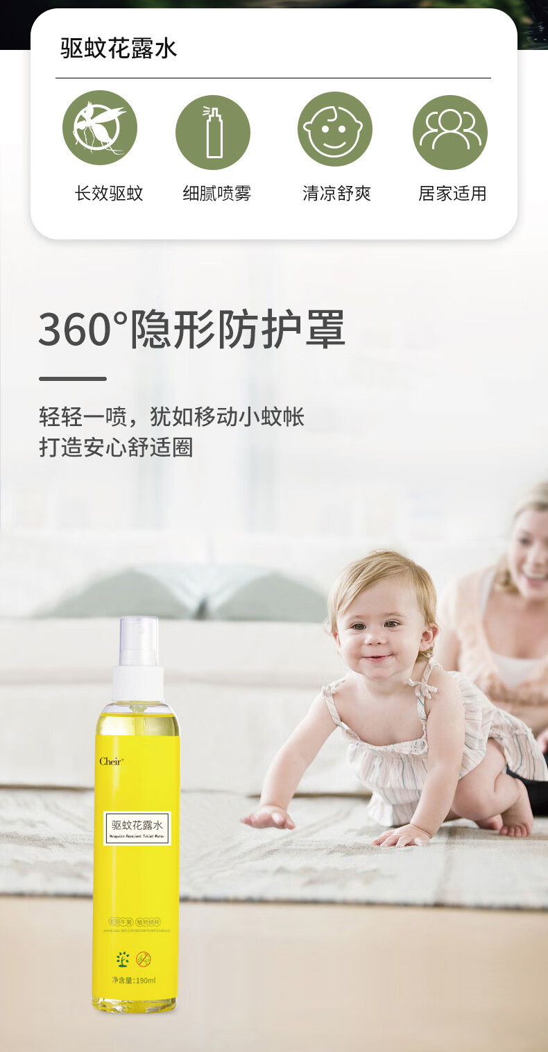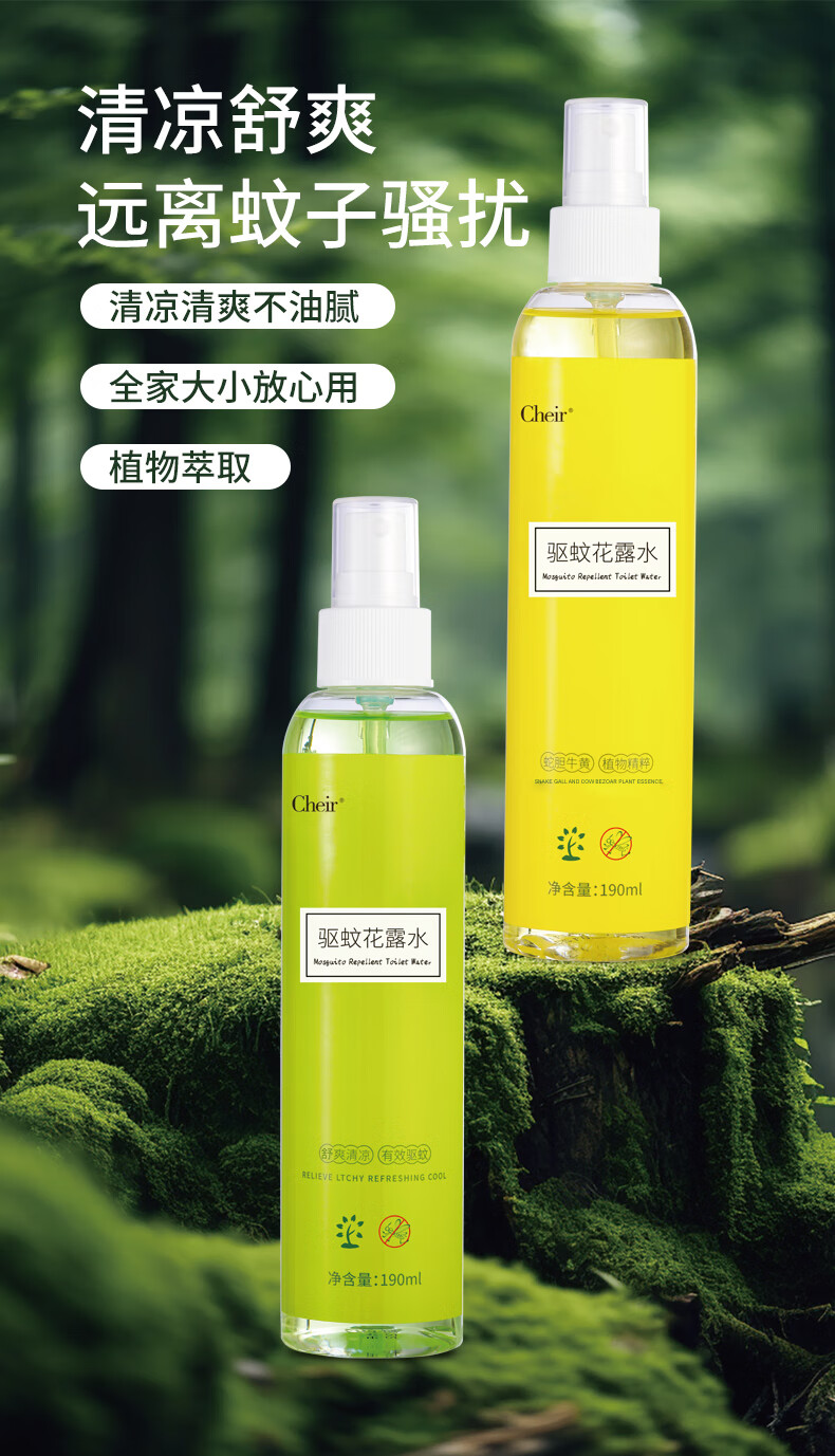 CHEIR花露水防蚊驱蚊喷雾婴儿童防驱蚊液水基孔肯雅热蛇胆花露水190ml