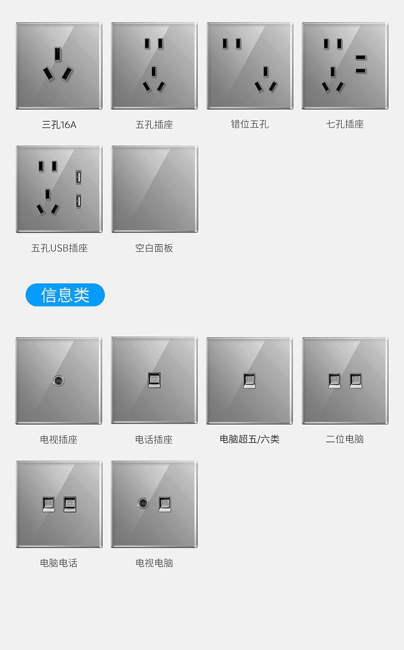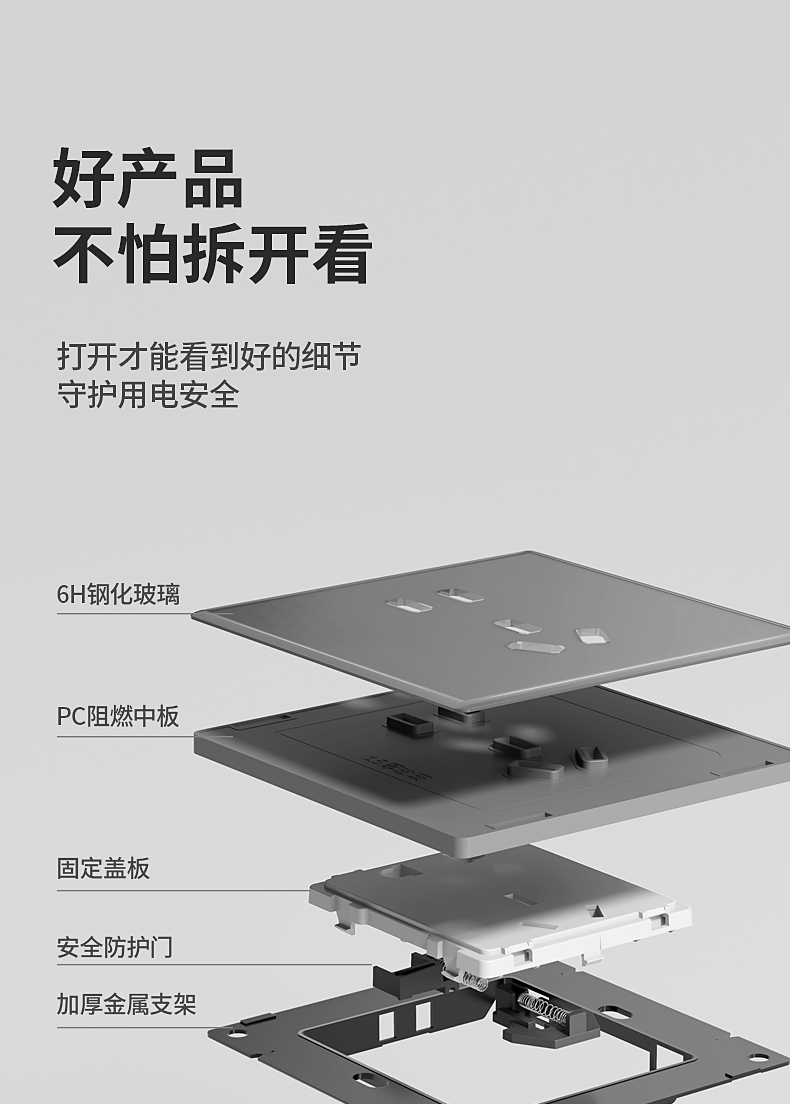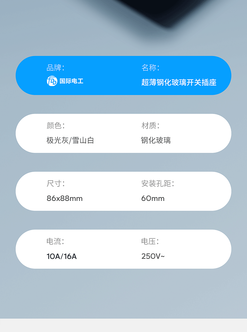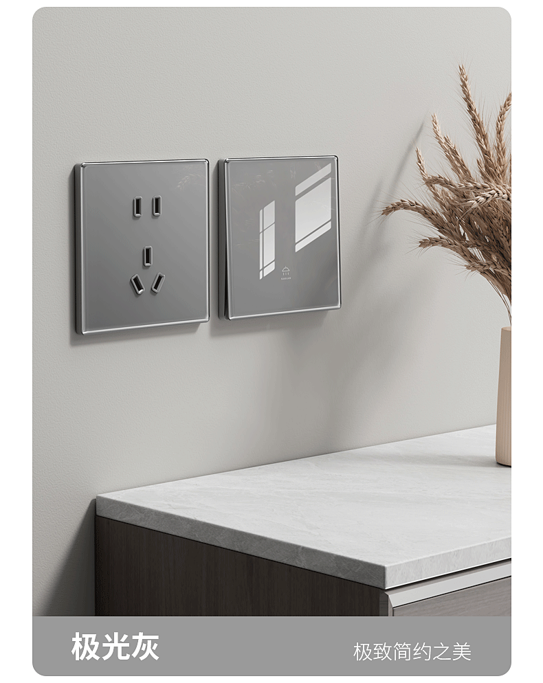 国际电工86型灰色超薄开关插座面板钢化玻璃防刮痕家用一开五孔墙壁暗装 一开单控【钢化玻璃】灰色