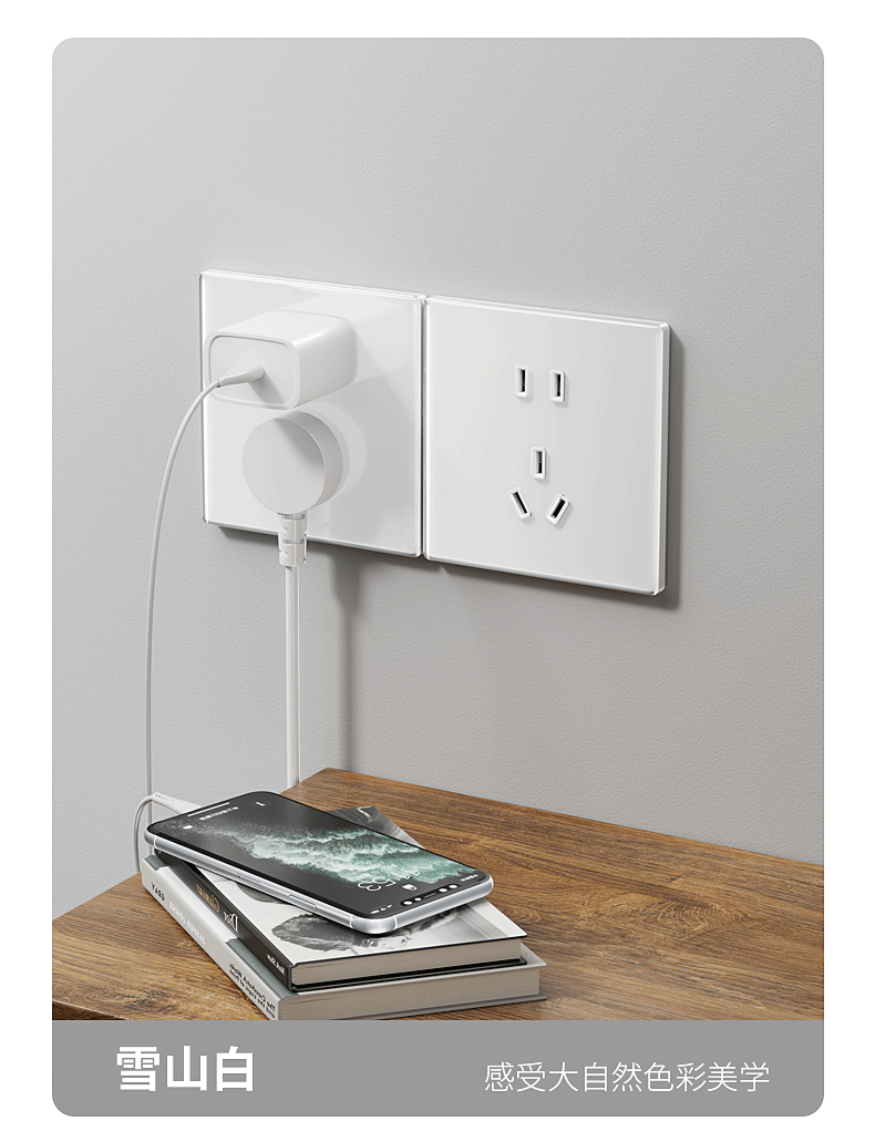 小米墙壁插座三孔16A五孔10A AG玻璃面板高温阻燃无框面板一体成型 小米墙壁插座 五孔10A 白色