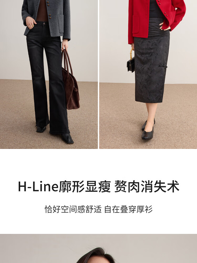 热风(Hotwind)【商场同款】女士直筒牛仔裤2025年冬季新款侧分割宽松阔腿裤子 27深兰 25