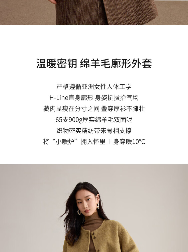 尚都比拉含绵羊毛保暖毛呢大衣女冬季垂坠感气质中长款长袖外套高级感大衣