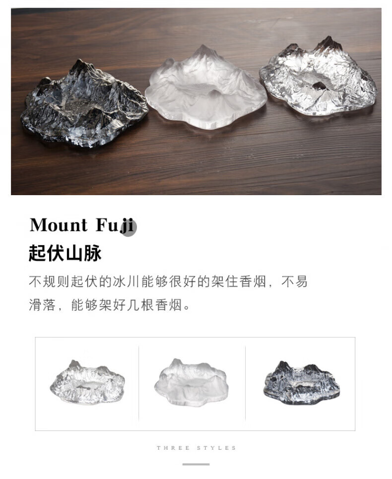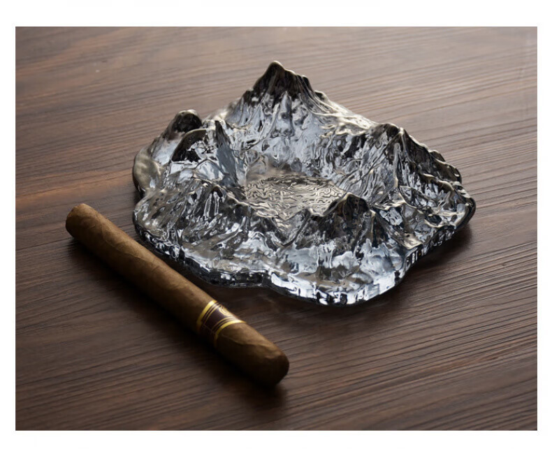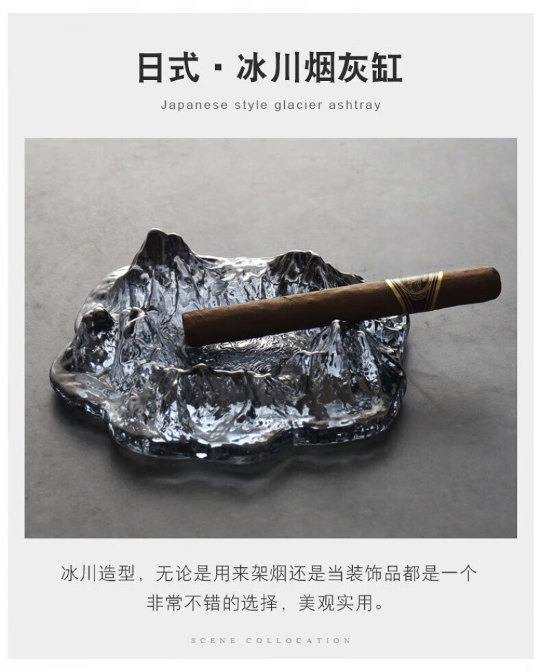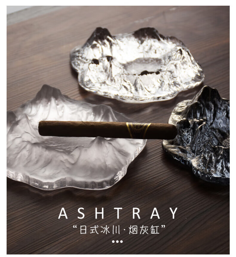 AILUKI日本富士山烟灰缸水晶玻璃冰山雪山雪茄缸酒吧办公室家用轻奢潮流 沉稳灰(赠送烟泥
