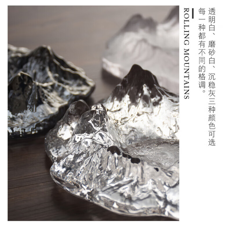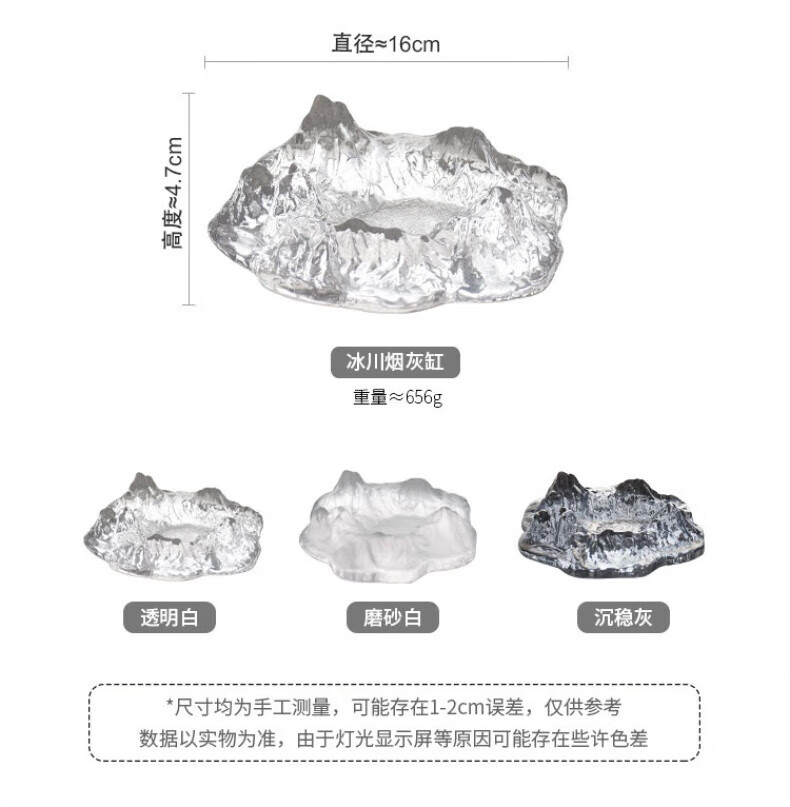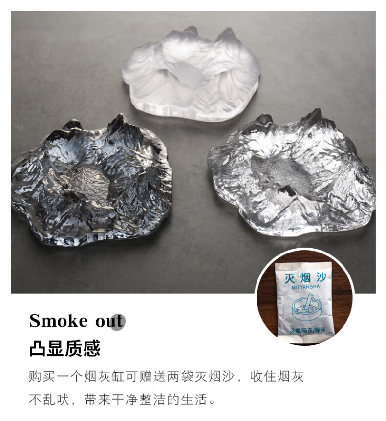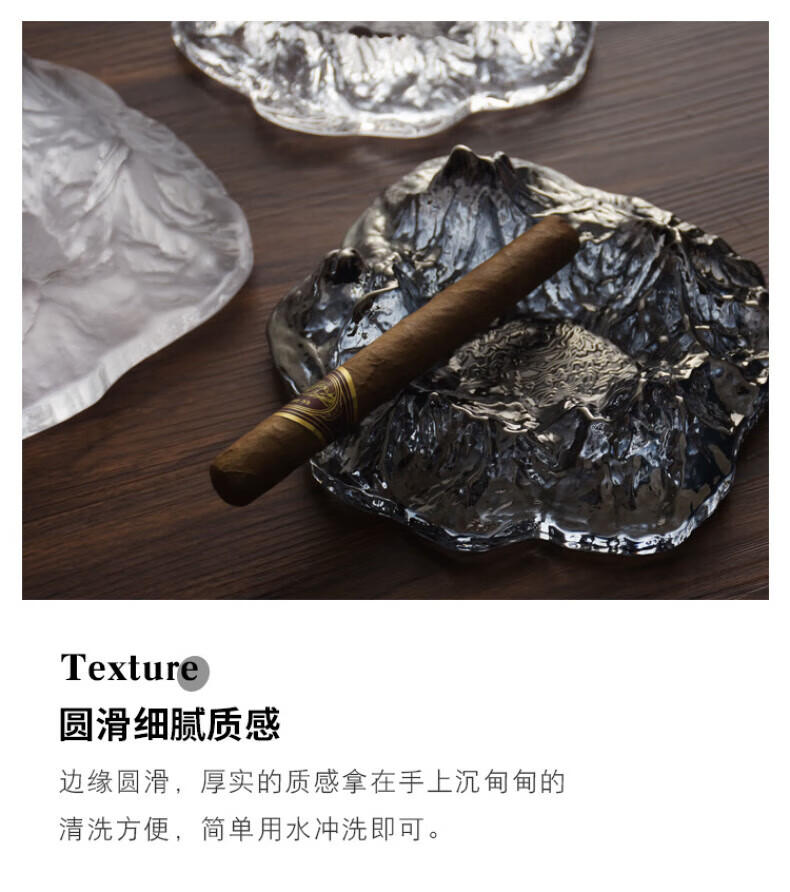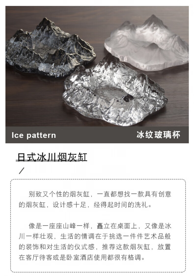 AILUKI日本富士山烟灰缸水晶玻璃冰山雪山雪茄缸酒吧办公室家用轻奢潮流 沉稳灰(赠送烟泥