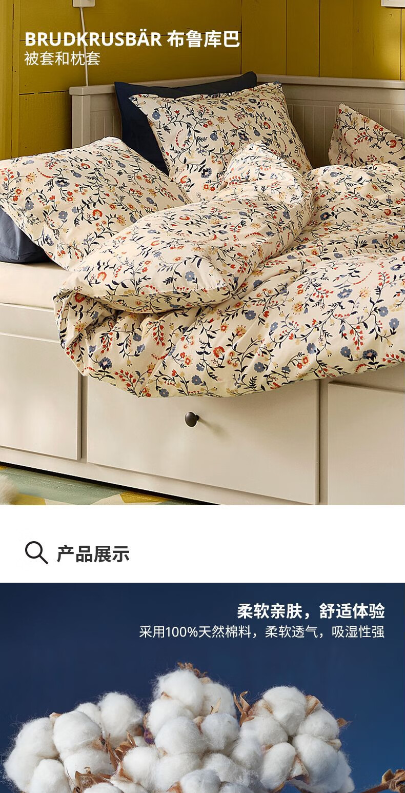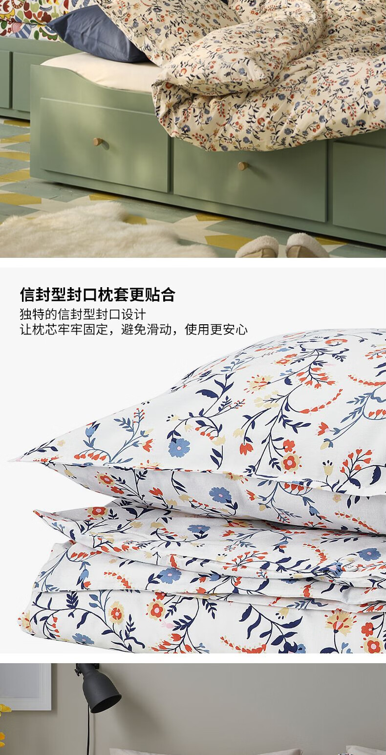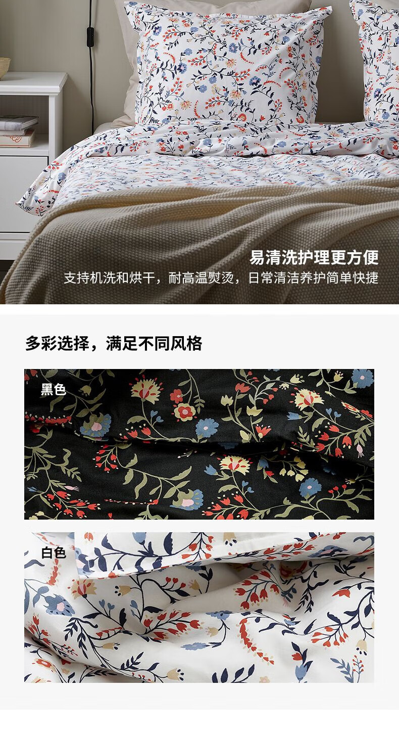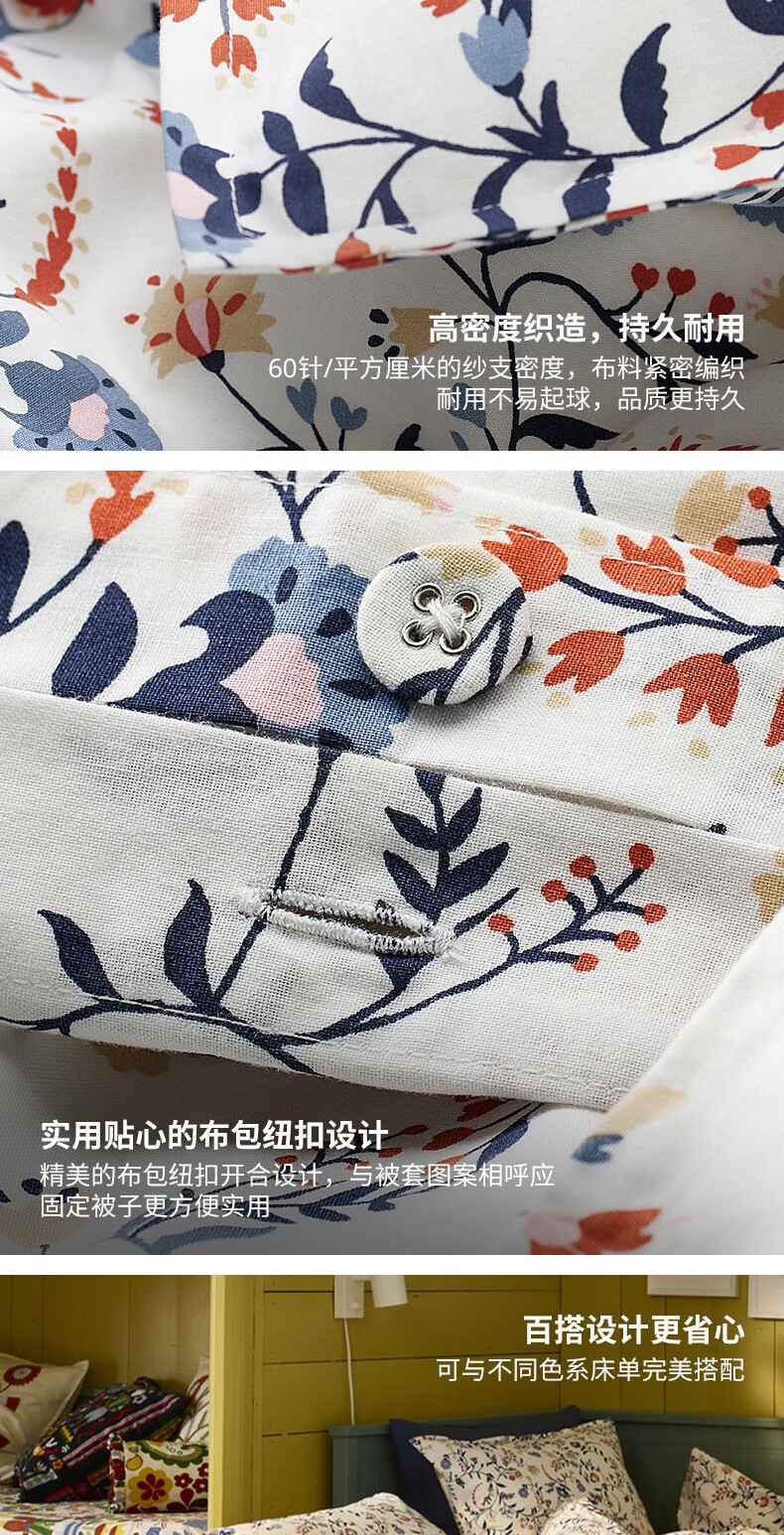 宜家(IKEA)【新品】BRUDKRUSBAR布鲁库巴被套枕套多件套家用可机洗 多色花卉被套和2枕套200X230cm