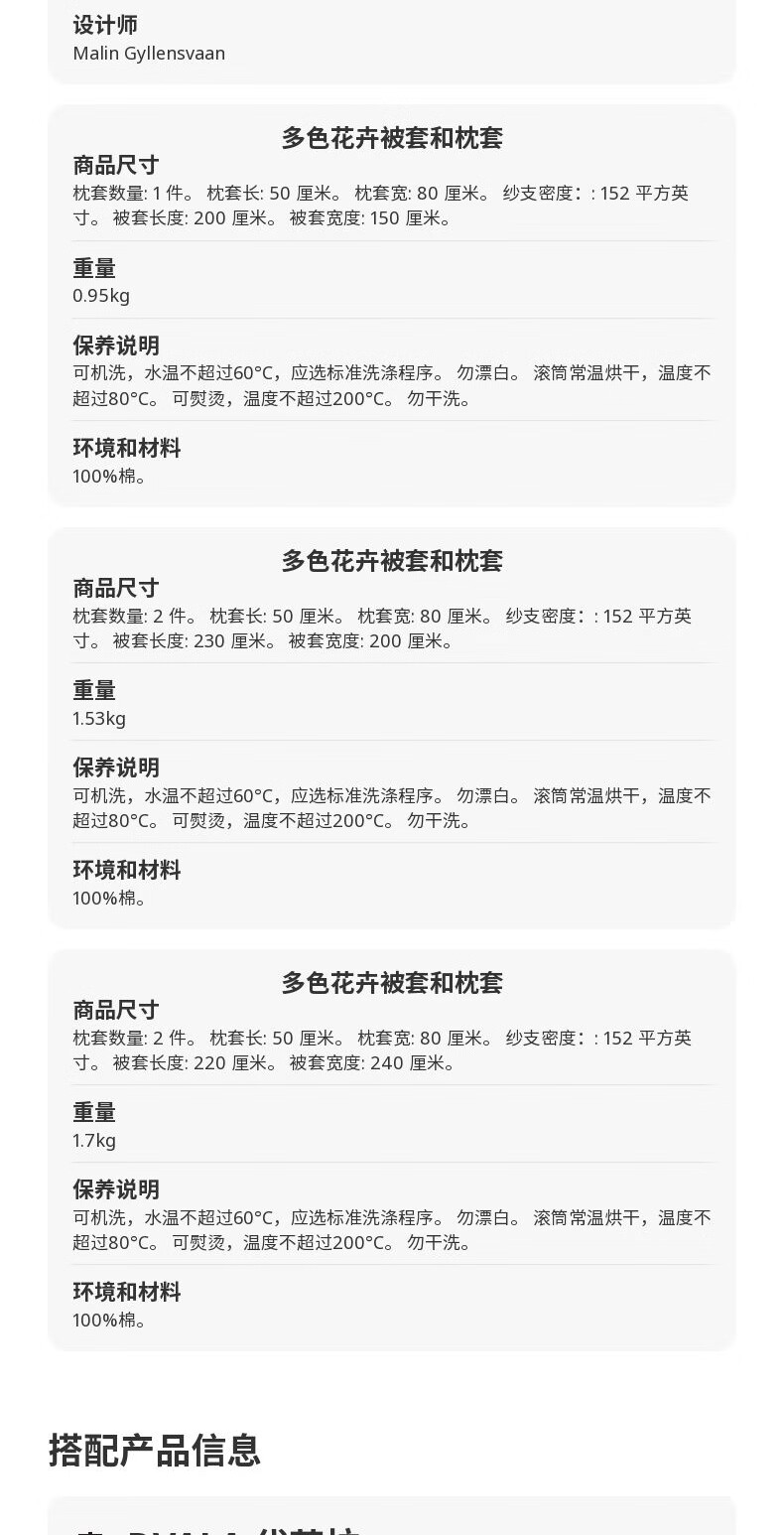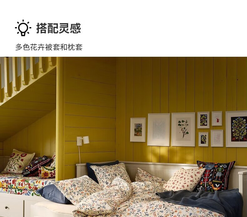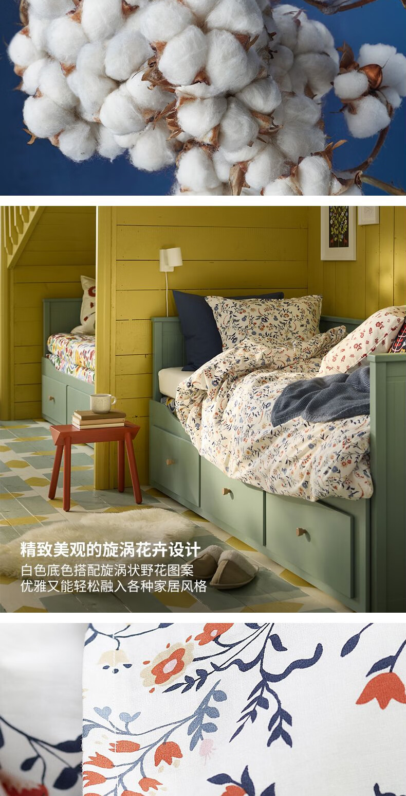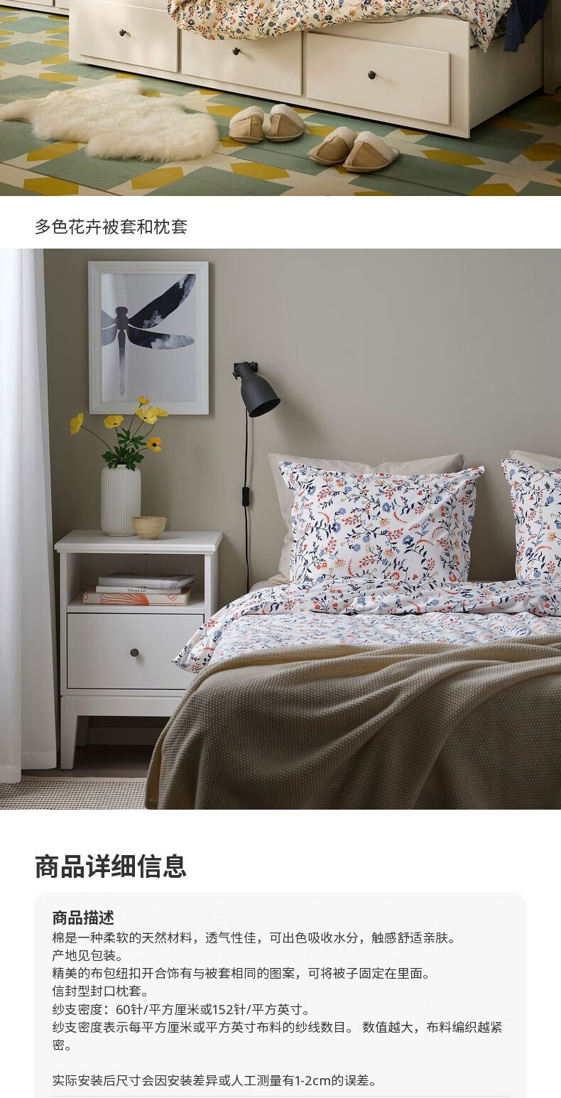 宜家(IKEA)【新品】BRUDKRUSBAR布鲁库巴被套枕套多件套家用可机洗 多色花卉被套和2枕套200X230cm