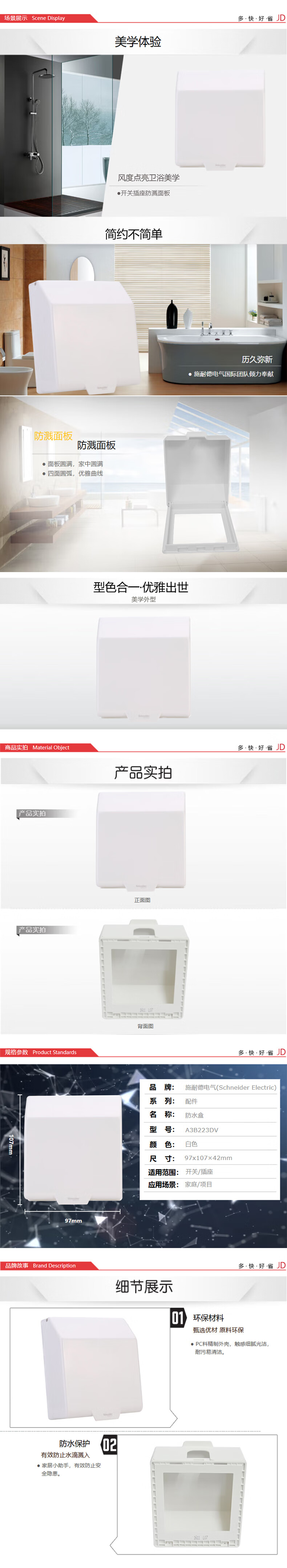 施耐德电气 开关插座面板 86型防溅盒 通用型防水盒 防水面盖 白色