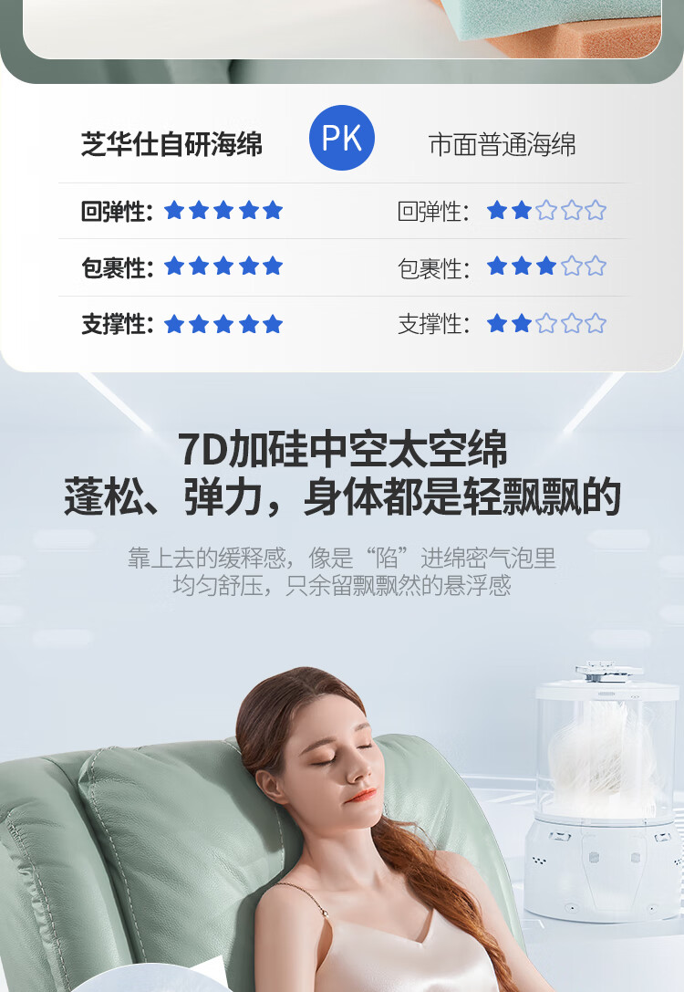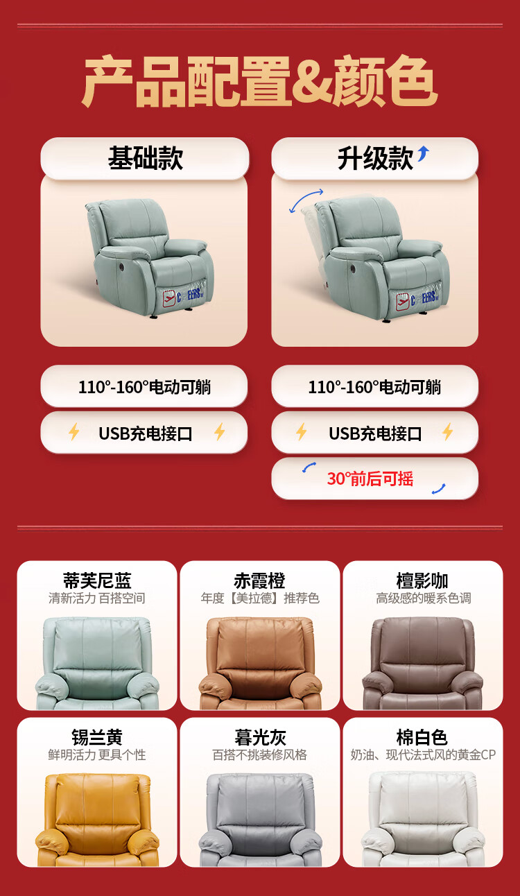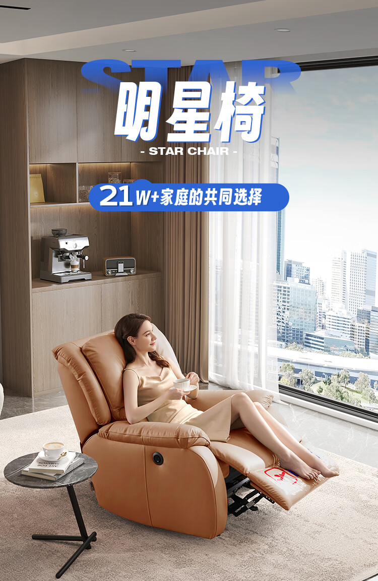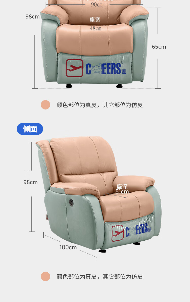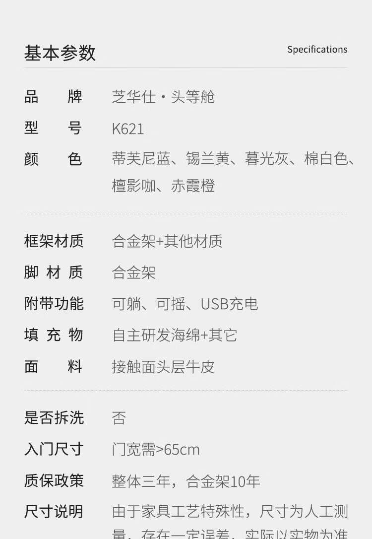 芝华仕(CHEERS)头等舱智能椅真皮单人沙发客厅电动功能明星椅K621蓝【京仓闪发】