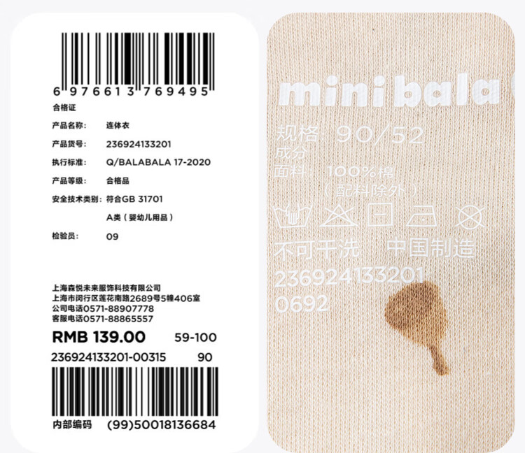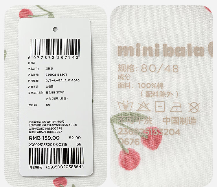 巴拉巴拉婴儿羽绒连体衣男女童冬季哈衣萌趣200424120201