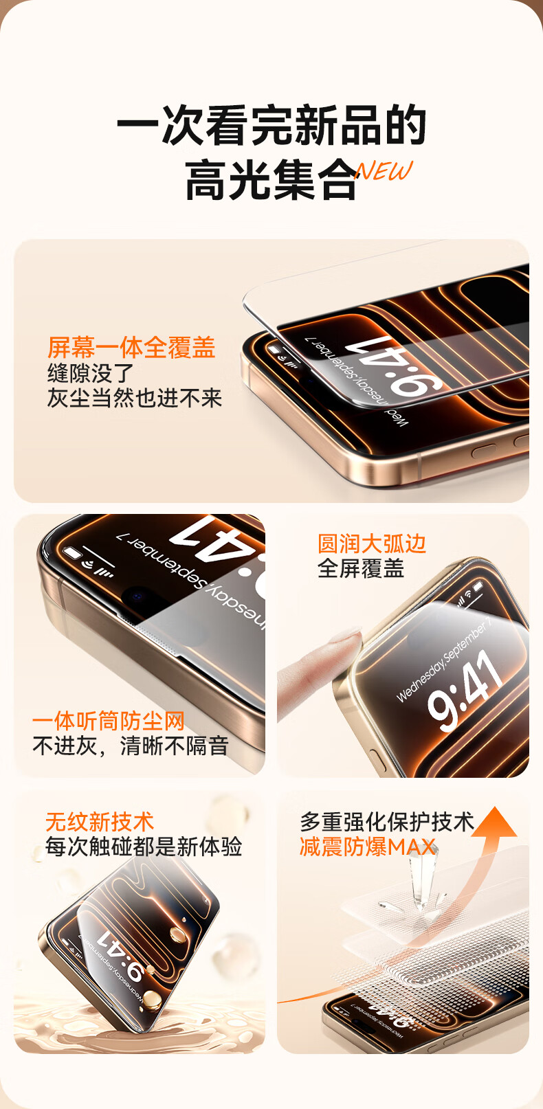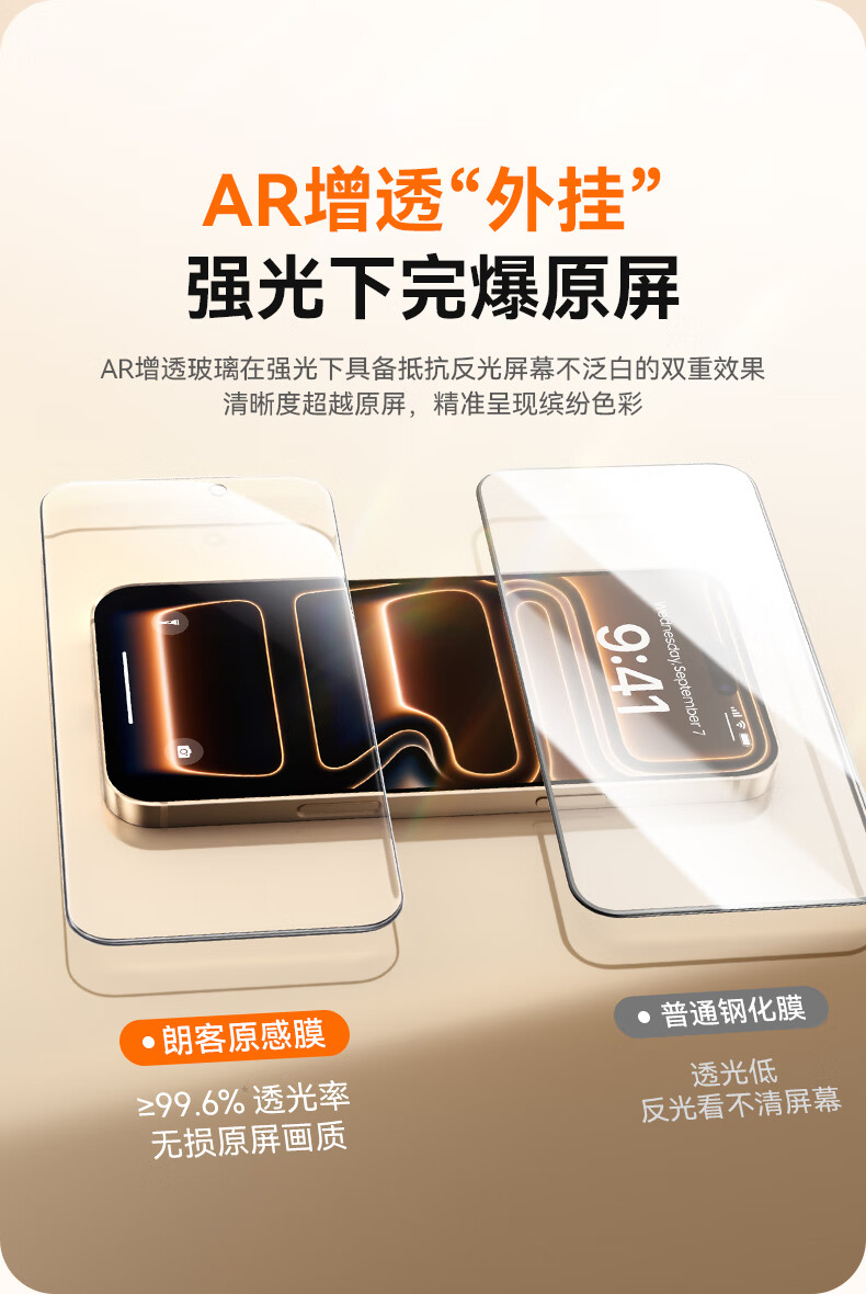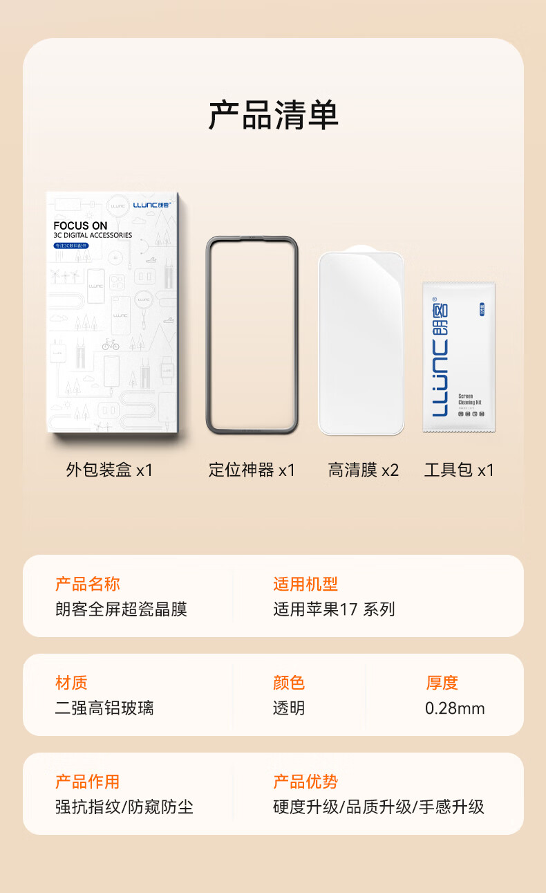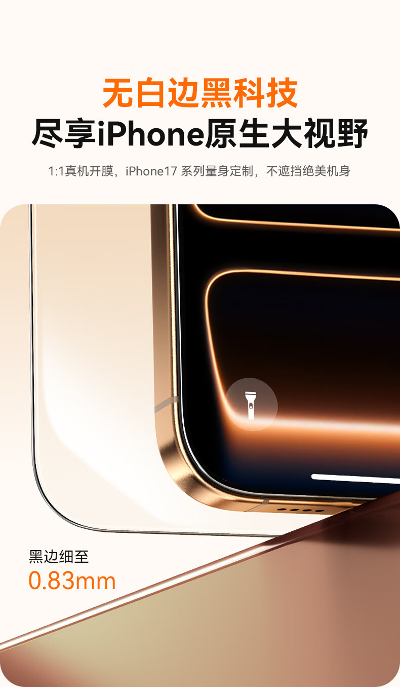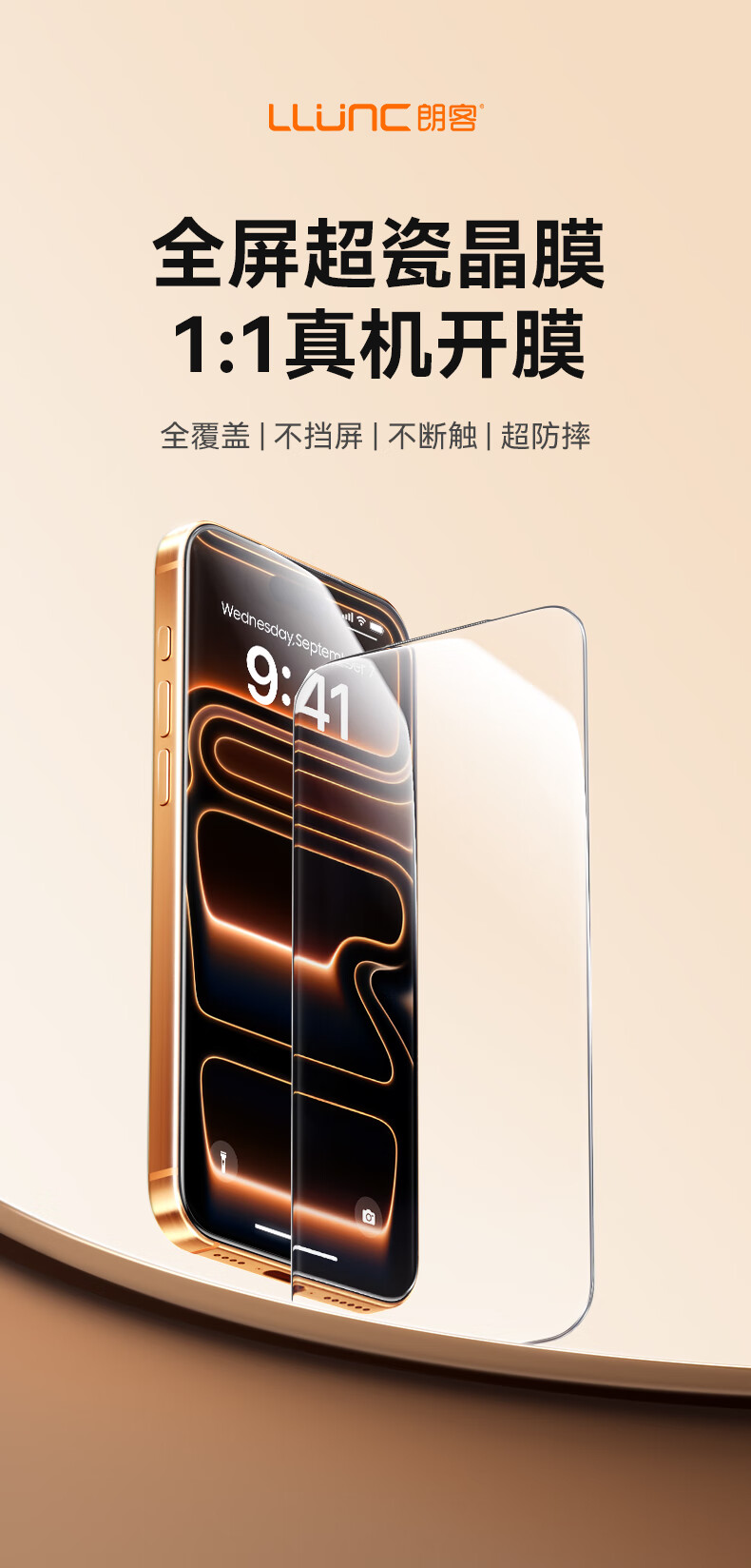 朗客【2片装】适用iphone17钢化膜苹果17手机膜超清强化玻璃防摔爆抗指纹超薄全覆盖听筒防尘保护贴膜