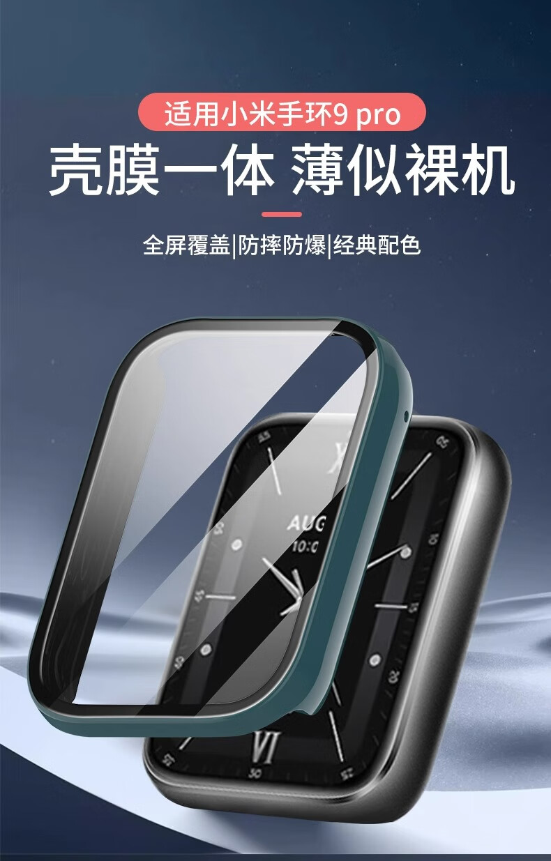 十闪 小米手环9pro保护壳膜一体band 9PRO保护套钢化膜全包防摔保护膜高清耐磨玻璃贴膜配件 透明