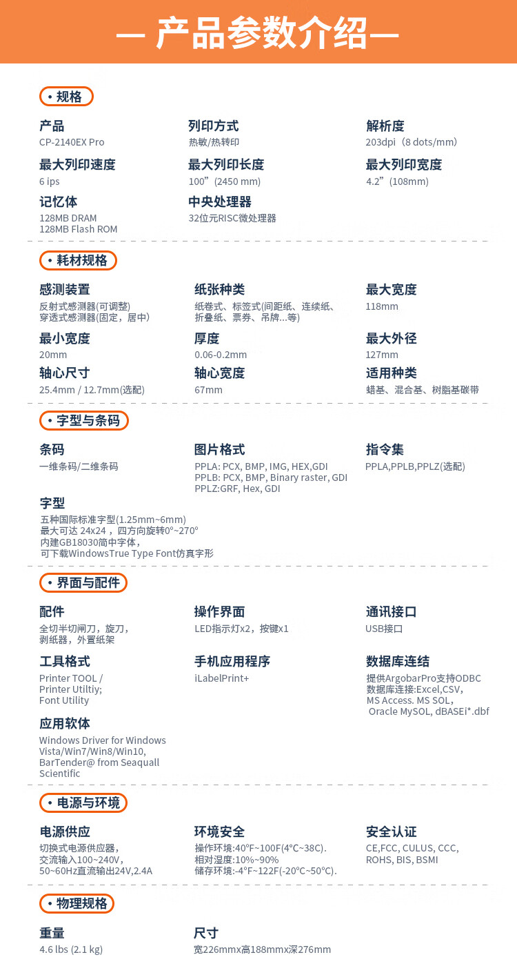 立象(ARGOX) CP-2140EX升级款标签打印机 热敏/热转印二维码服装吊牌不干胶电子面单条码打印机