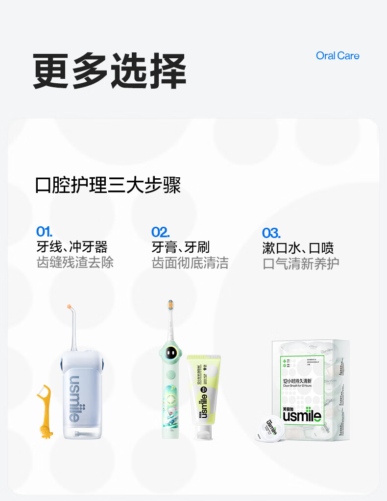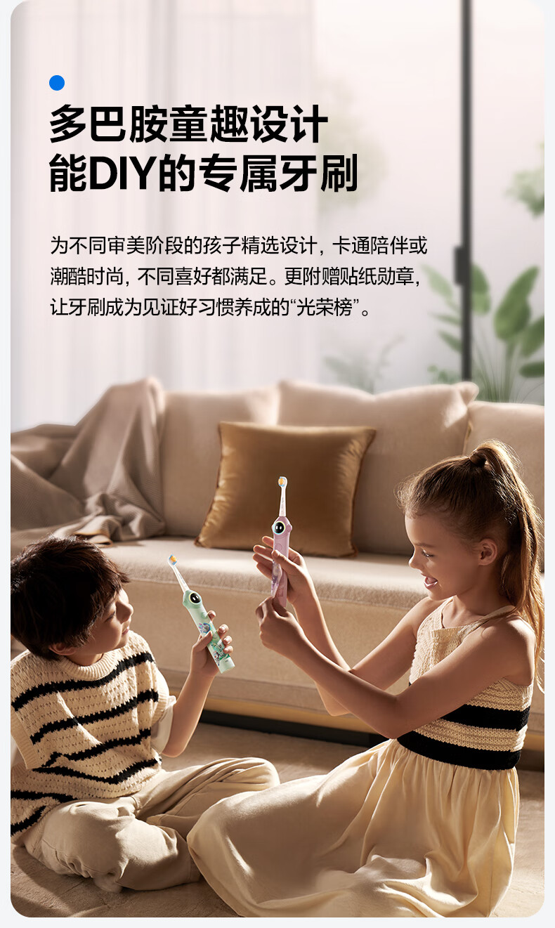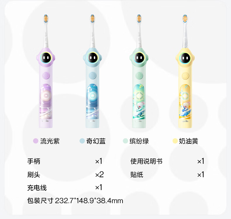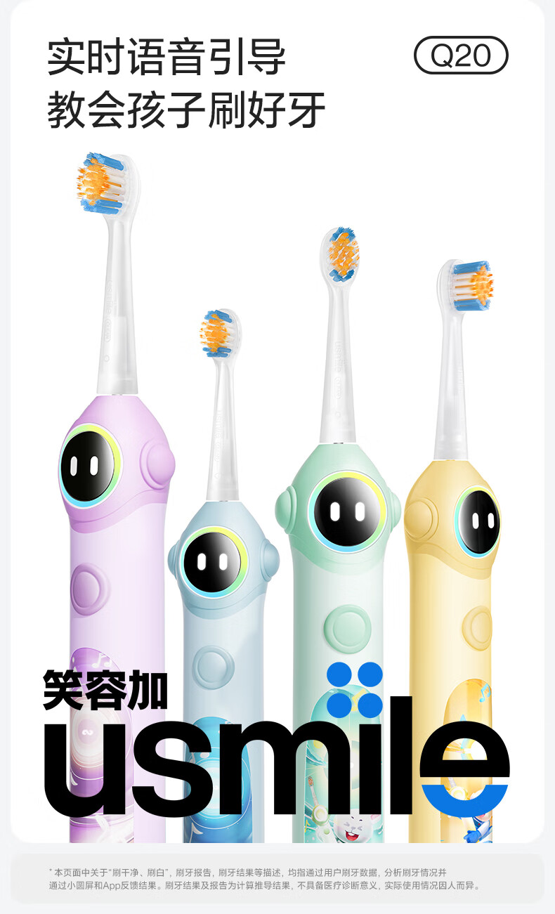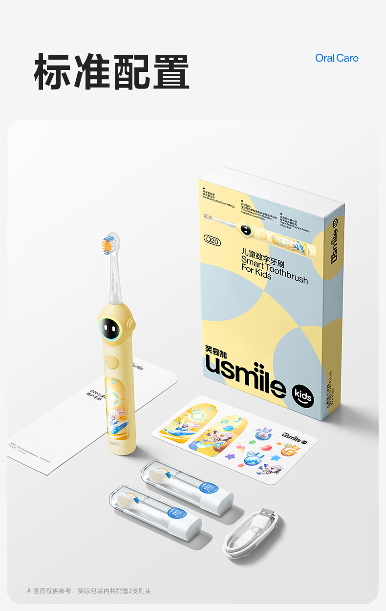 usmile笑容加儿童电动牙刷 数字牙刷 Q20奶油黄 适用3-15岁 学生礼物 生日礼物 儿童礼物