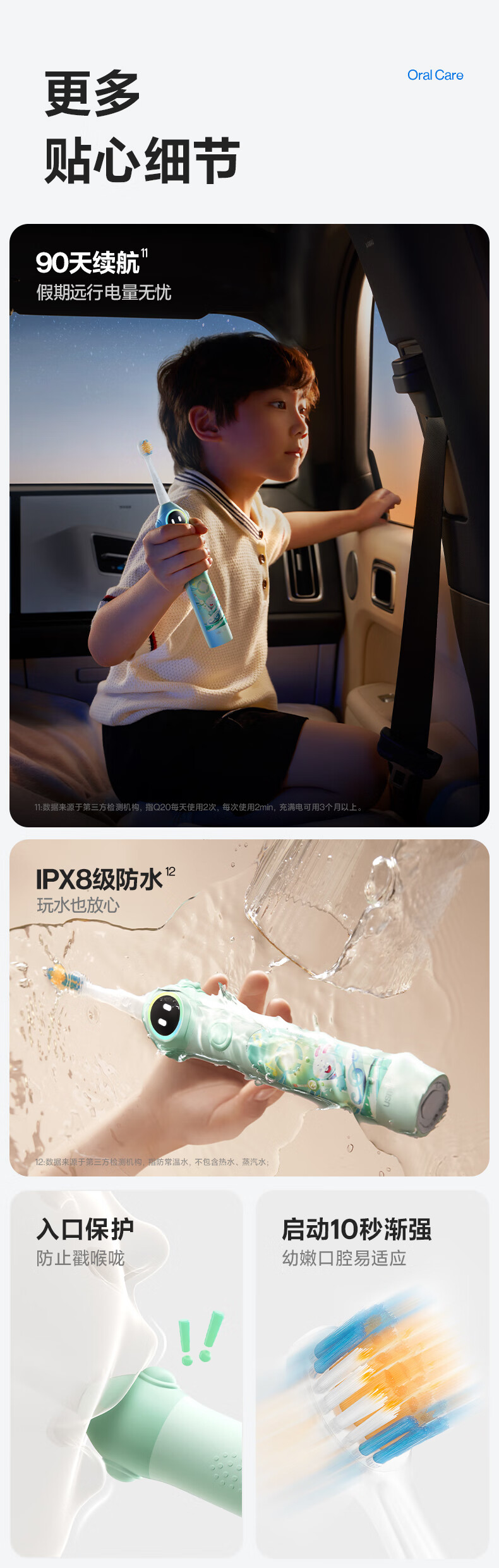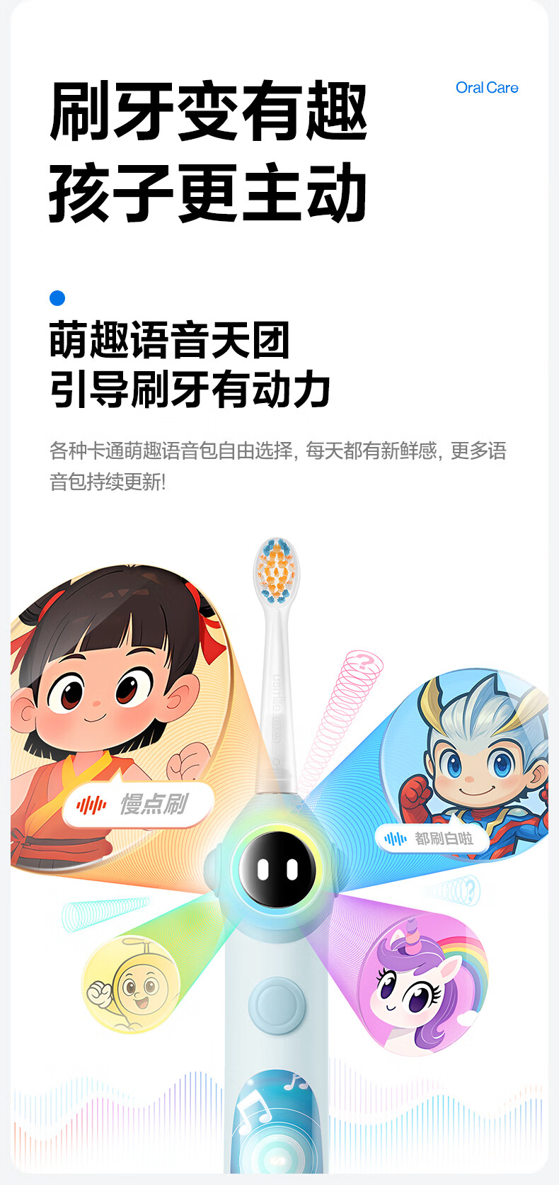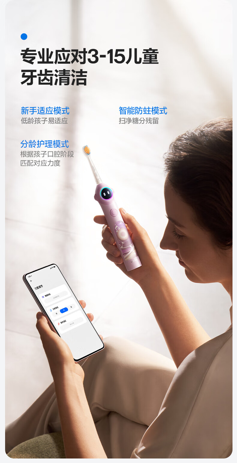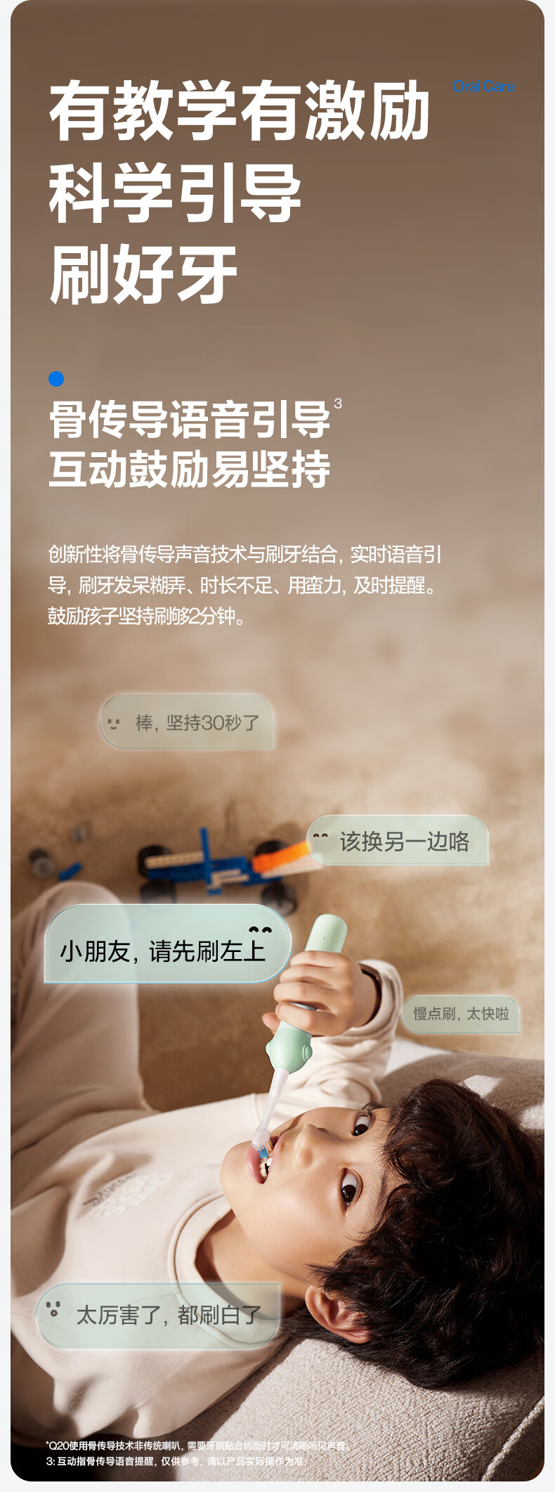 usmile笑容加儿童电动牙刷 数字牙刷 Q20奶油黄 适用3-15岁 学生礼物 生日礼物 儿童礼物