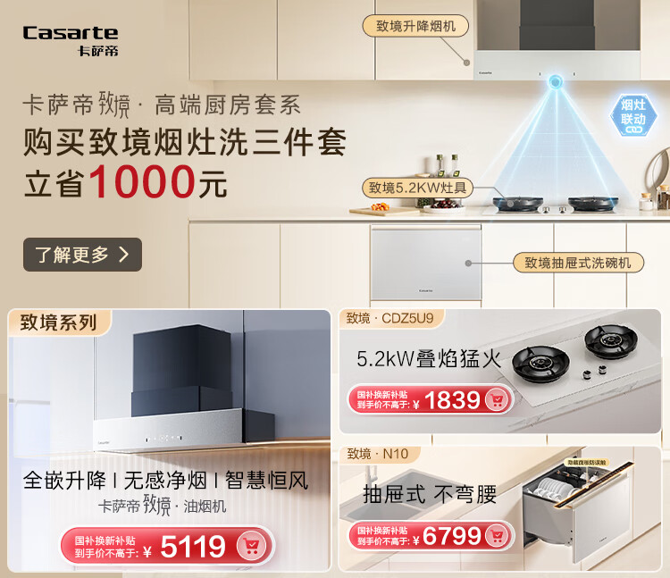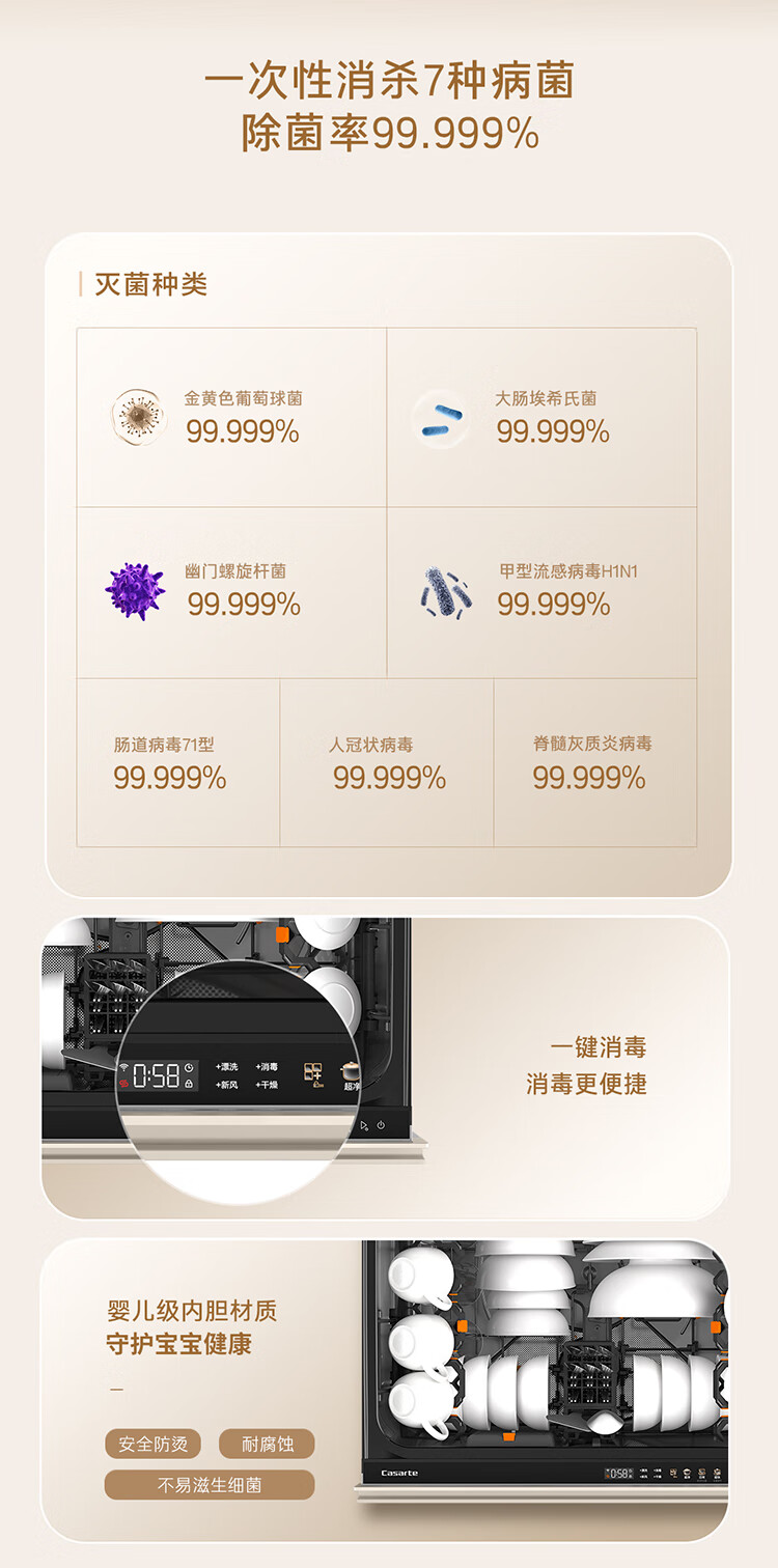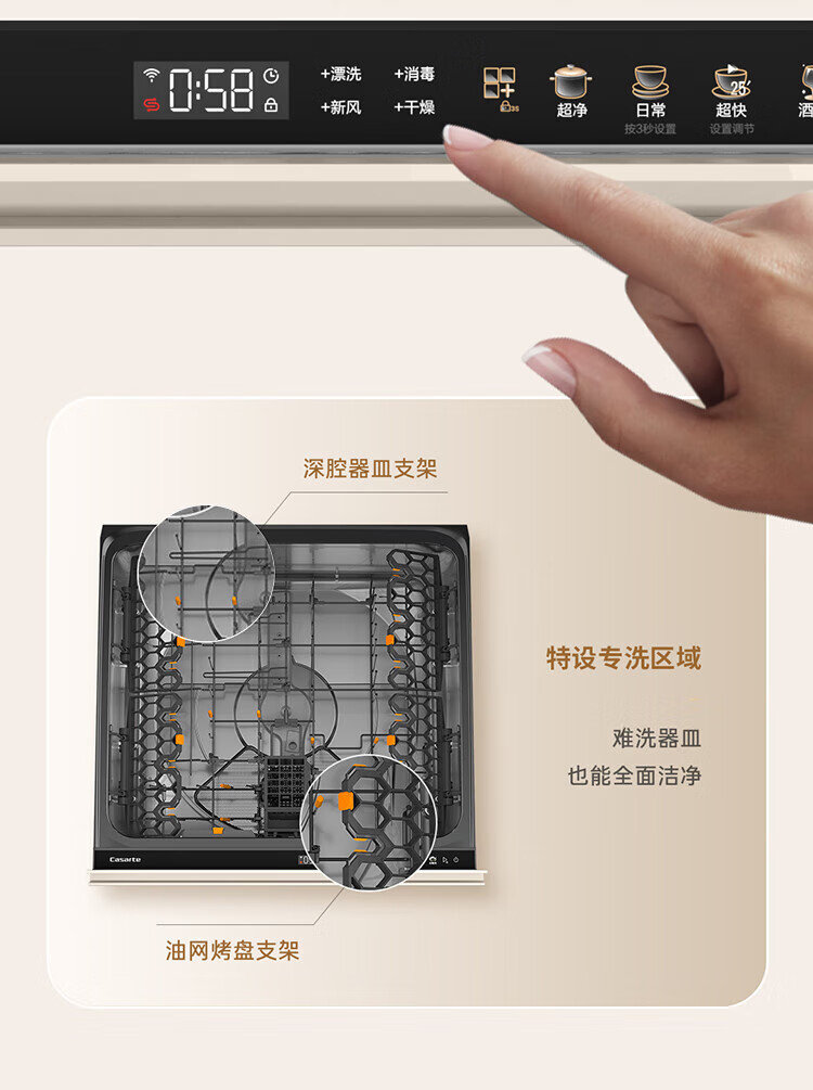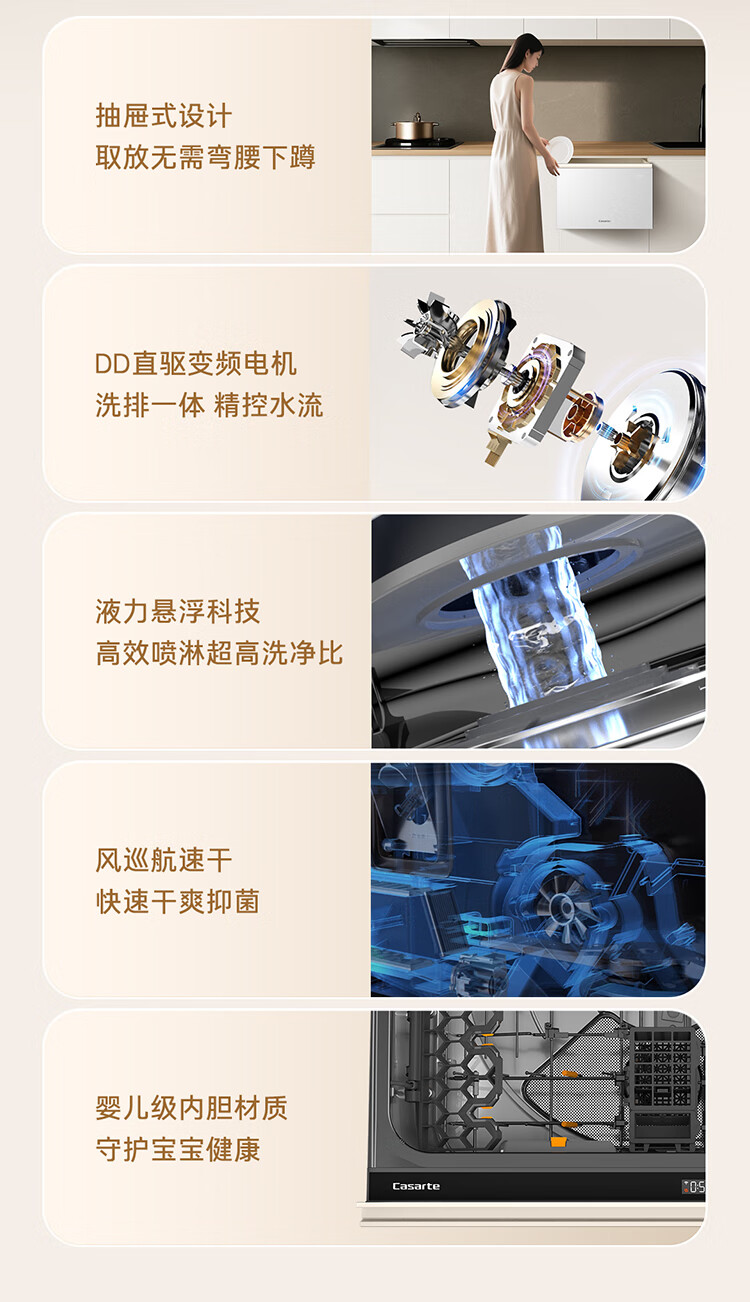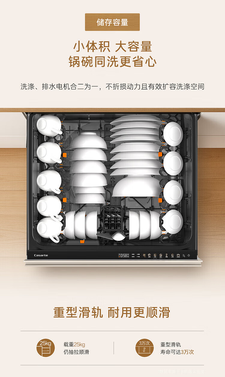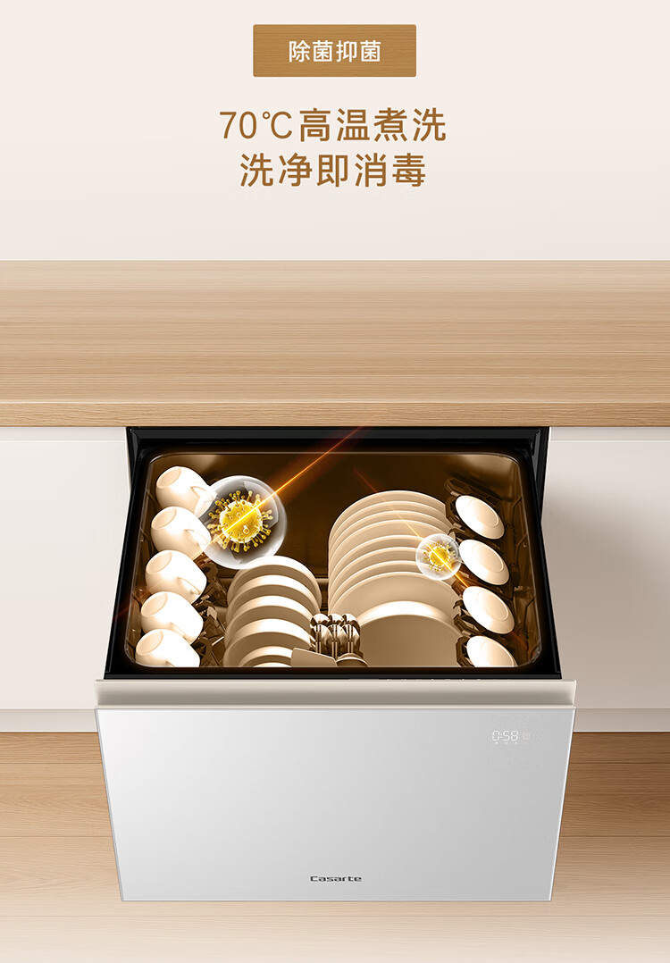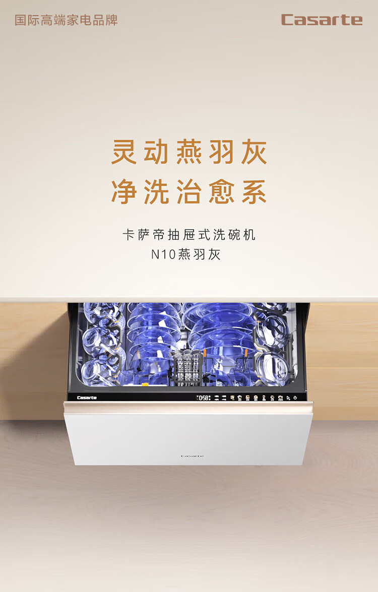 卡萨帝(Casarte)致境洗碗机N10国家补贴抽屉式燕羽灰嵌入式 不弯腰家用全自动烘干消毒一体机CWC8-B57YYU1