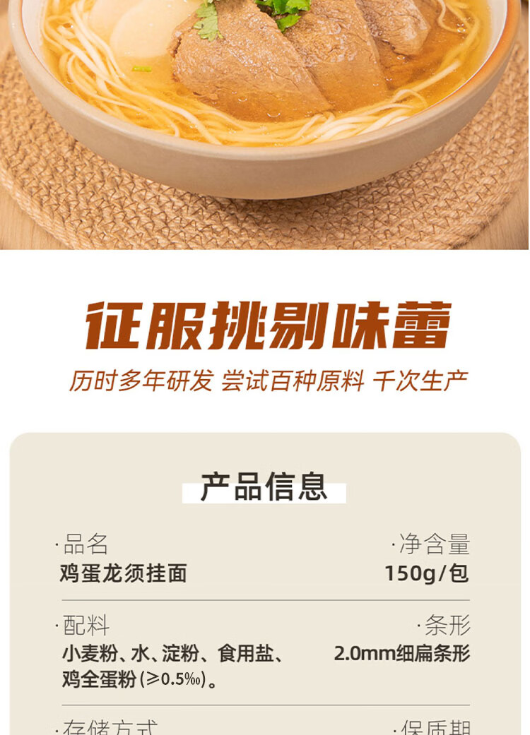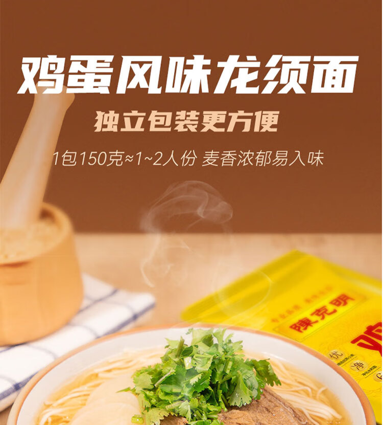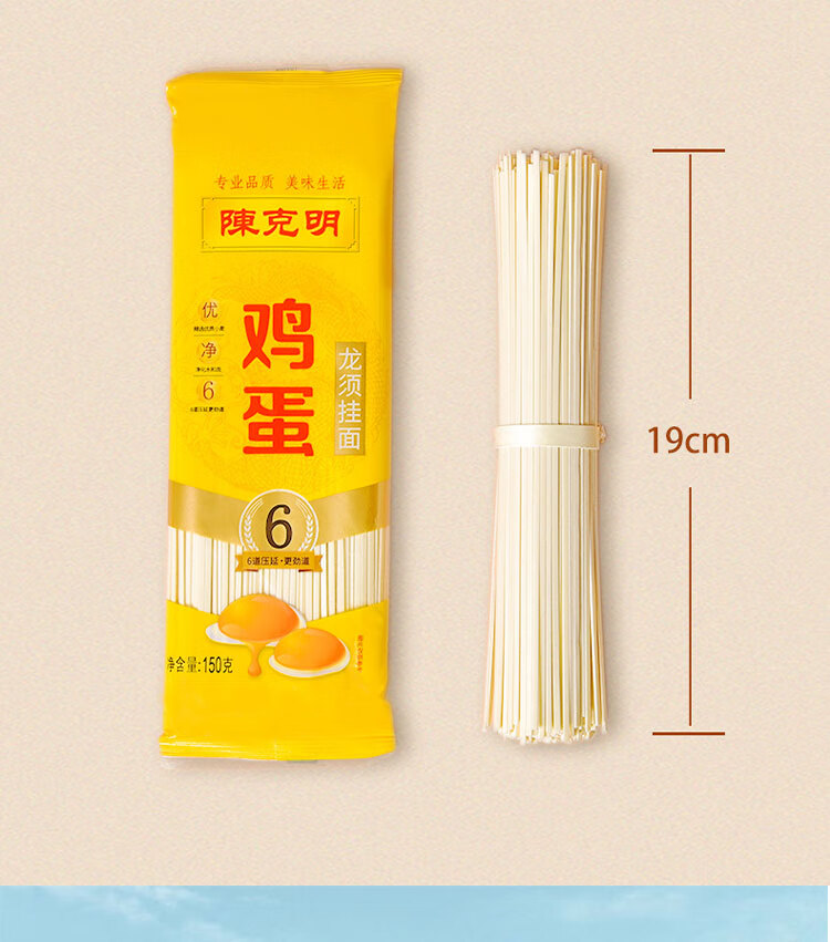 陈克明鸡蛋龙须挂面150g*10包炸酱面拉面家庭面早餐【临期清仓】