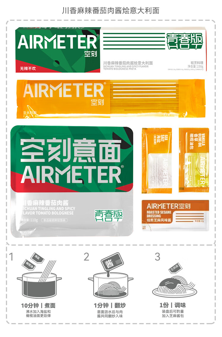 空刻青春辣意面川香麻辣番茄肉酱238g*10盒装速食辣意大利面套装