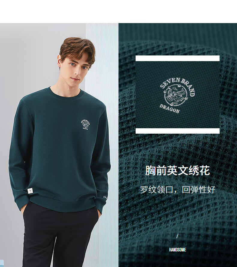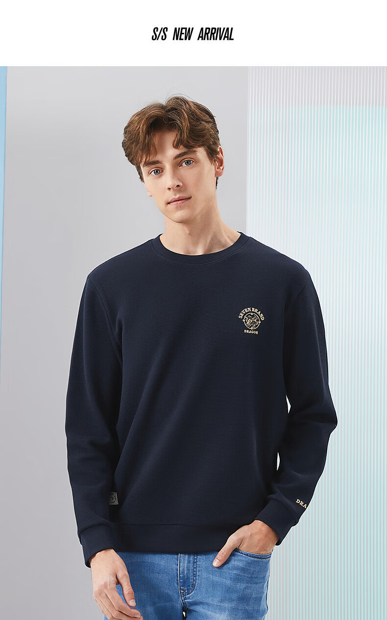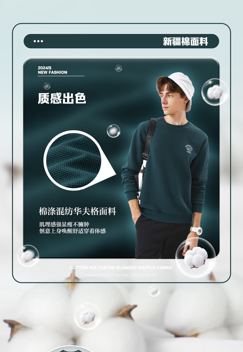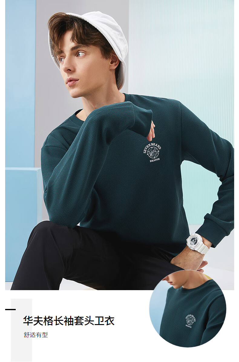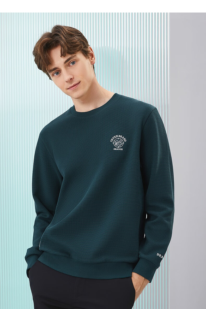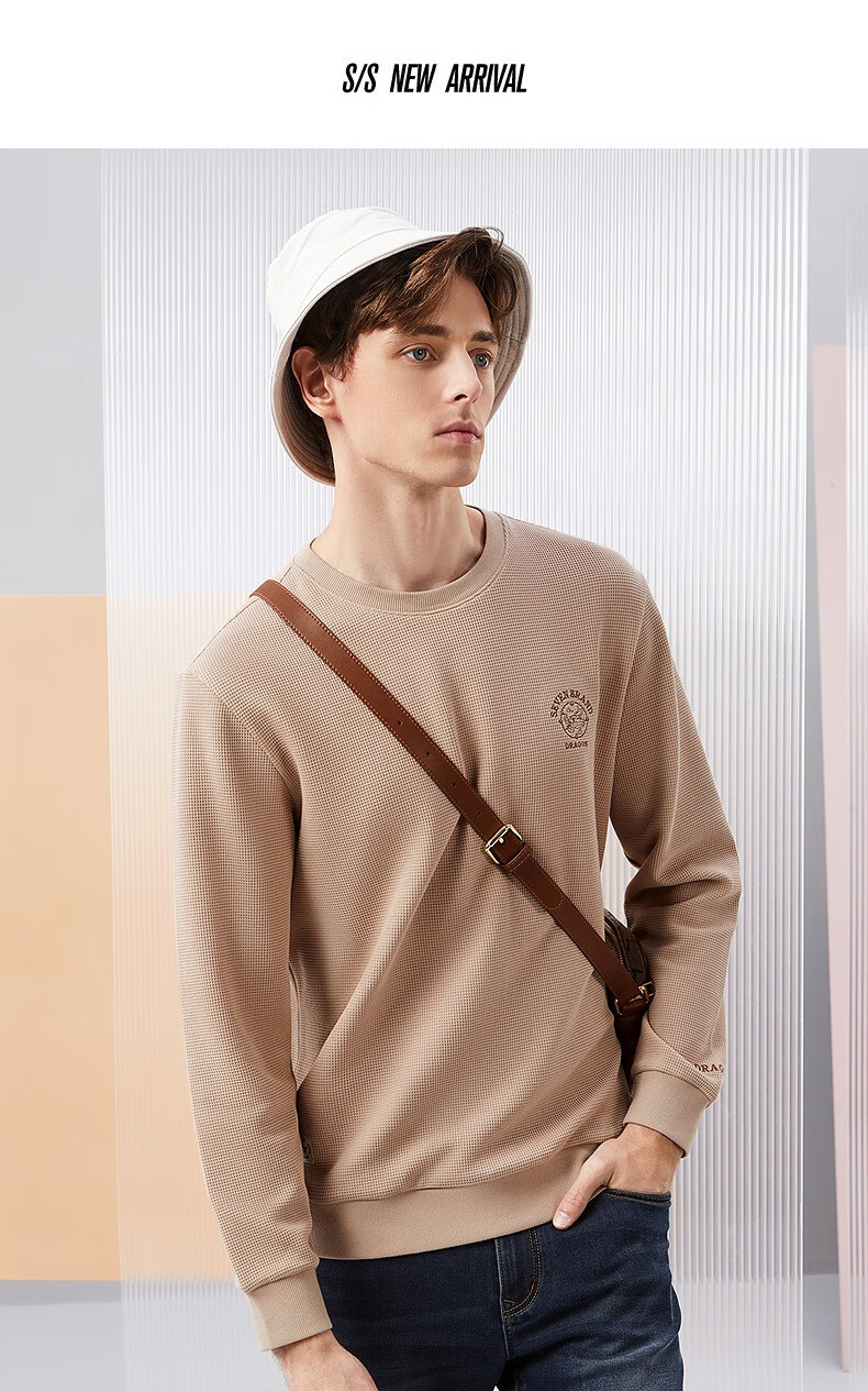 柒牌【华夫格】圆领卫衣男春季时尚休闲百搭男士长袖上衣