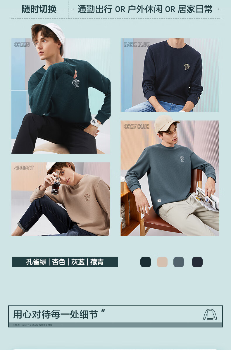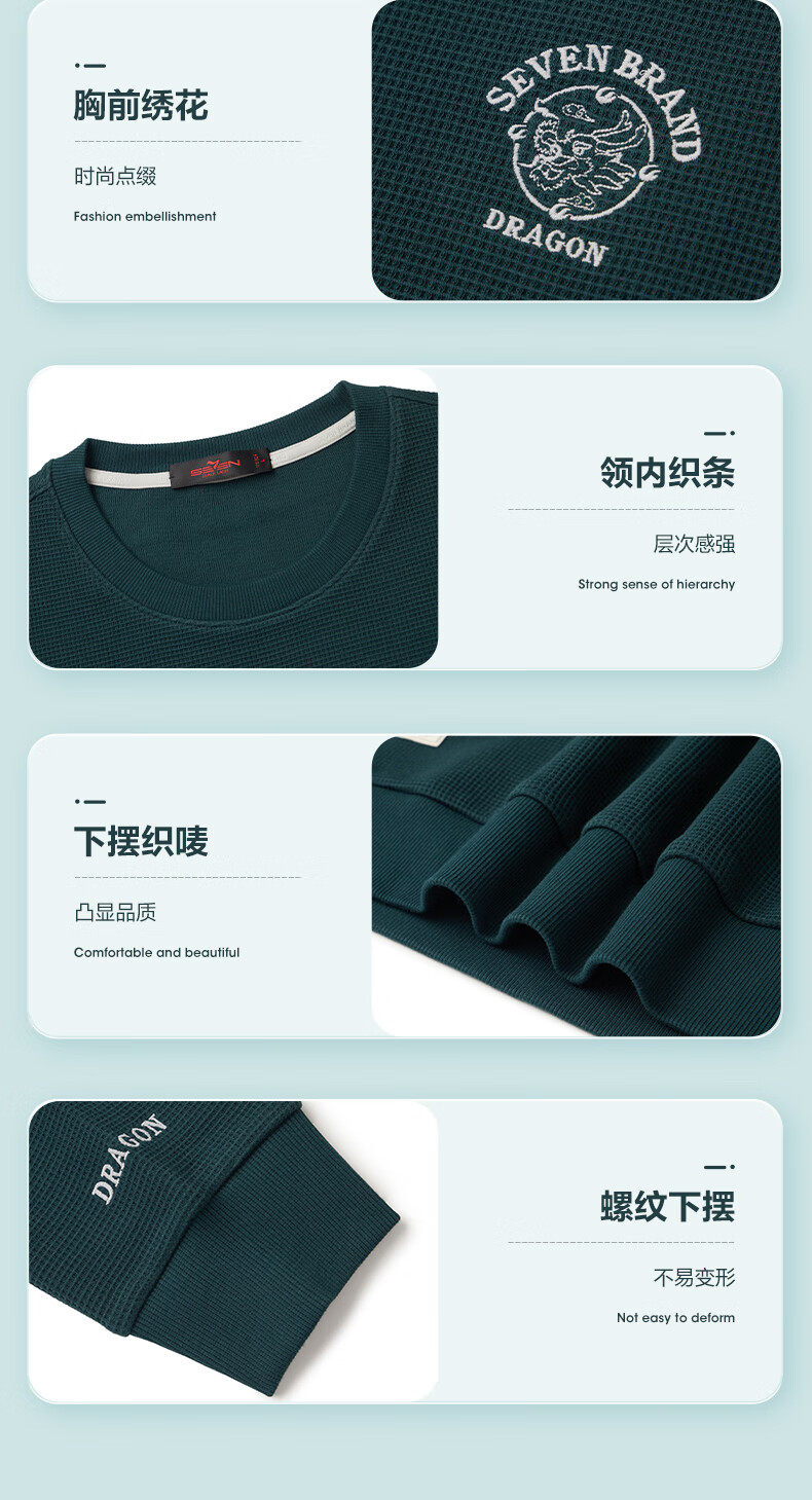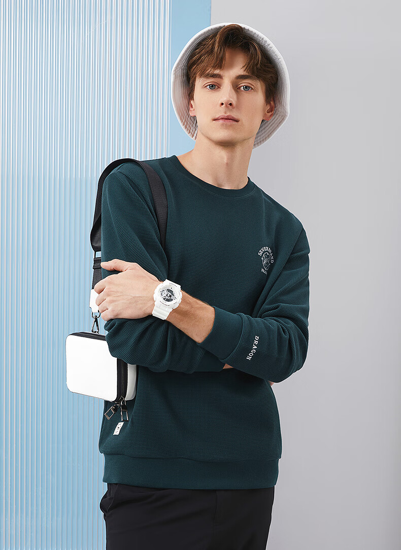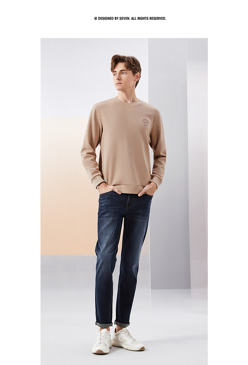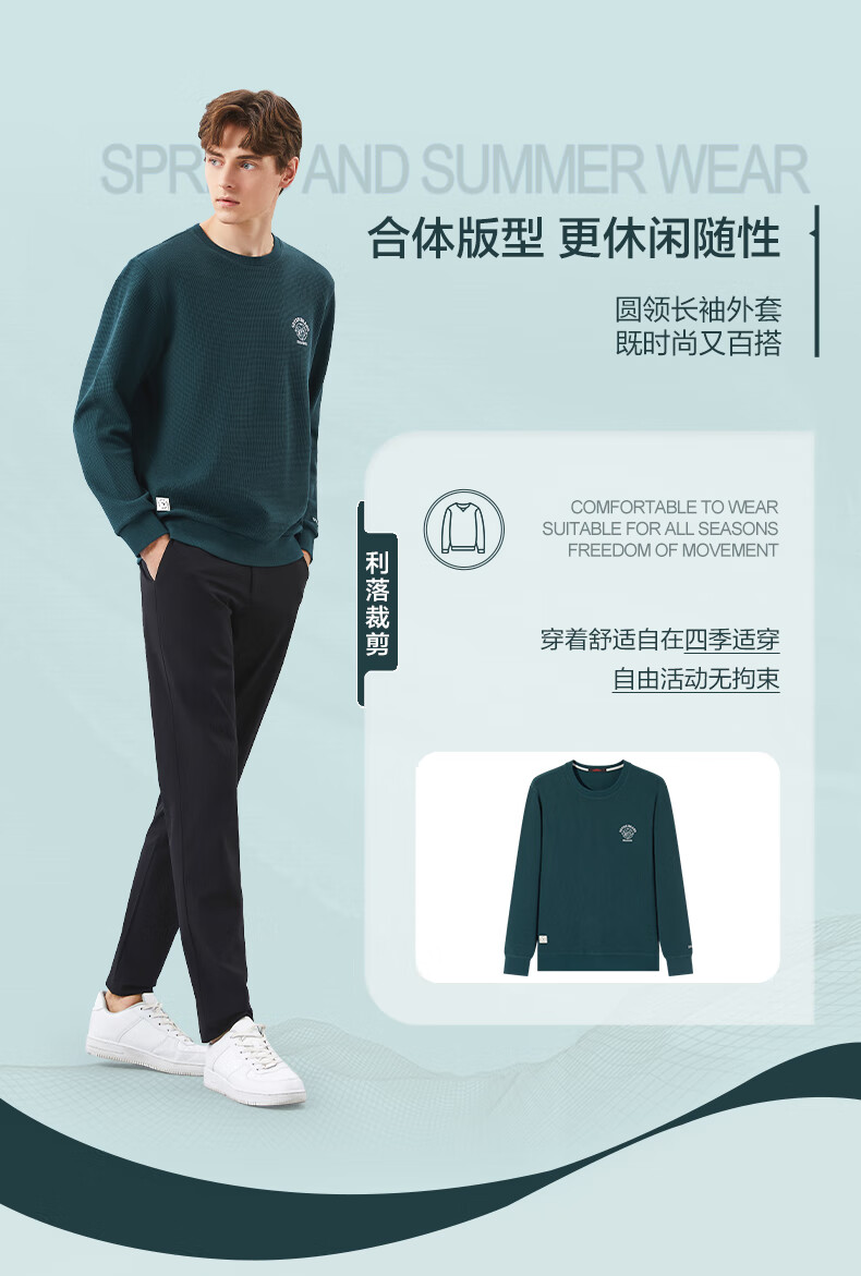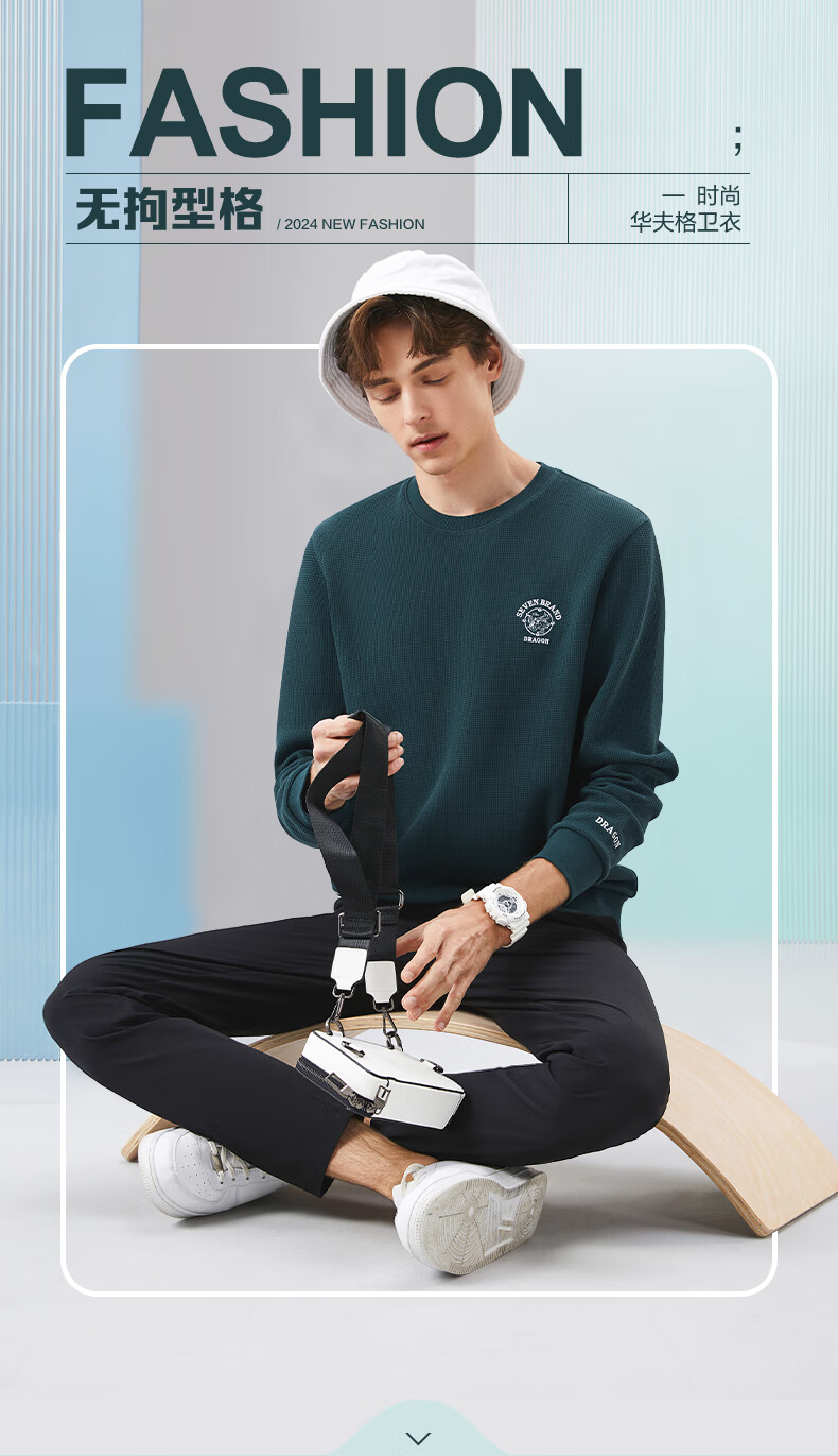 柒牌【华夫格】圆领卫衣男春季时尚休闲百搭男士长袖上衣