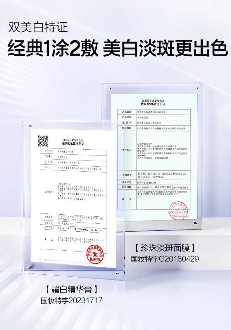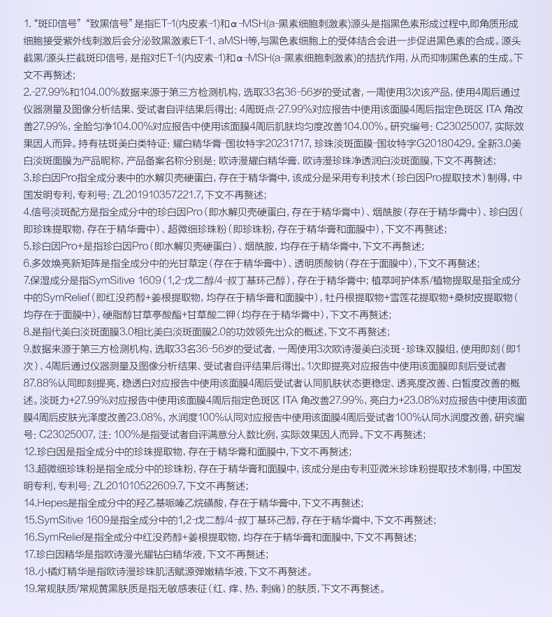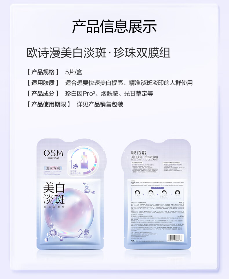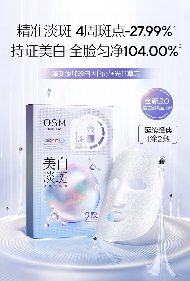 欧诗漫(OSM)珍珠晒后面膜美白补水淡斑提亮肤色烟酰胺保湿护肤品生日礼物女