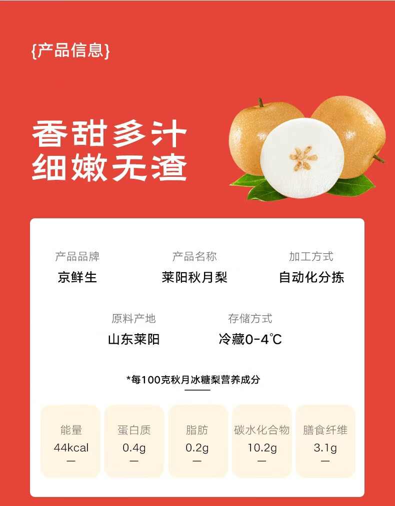 京鲜生山东烟台莱阳秋月梨净重4.5斤单果300g+ 新鲜水果 源头直发包邮
