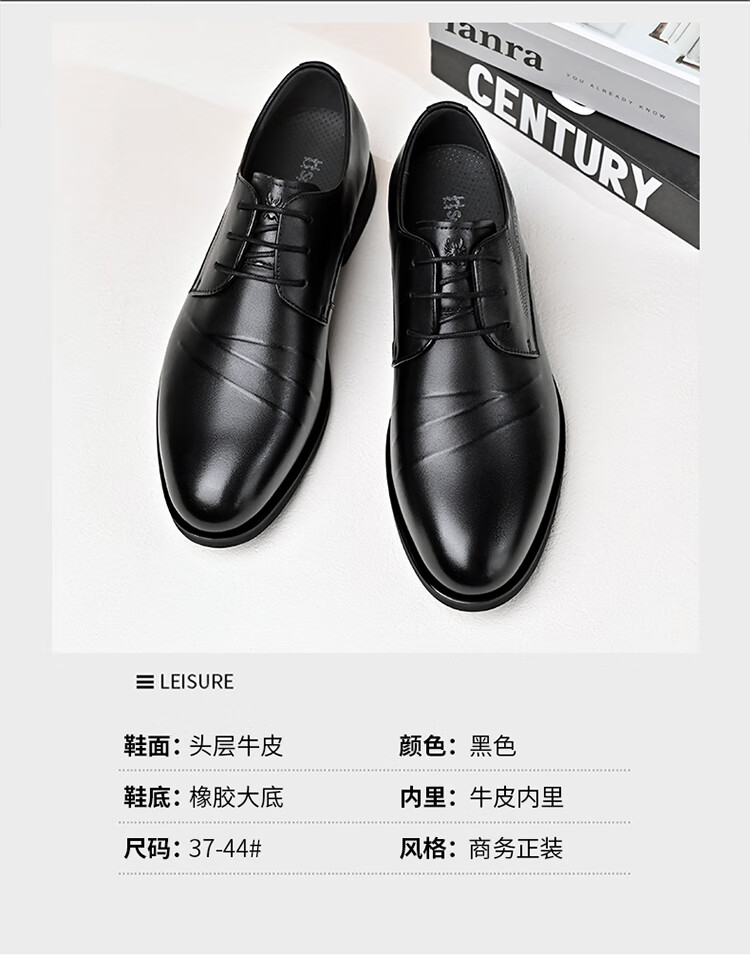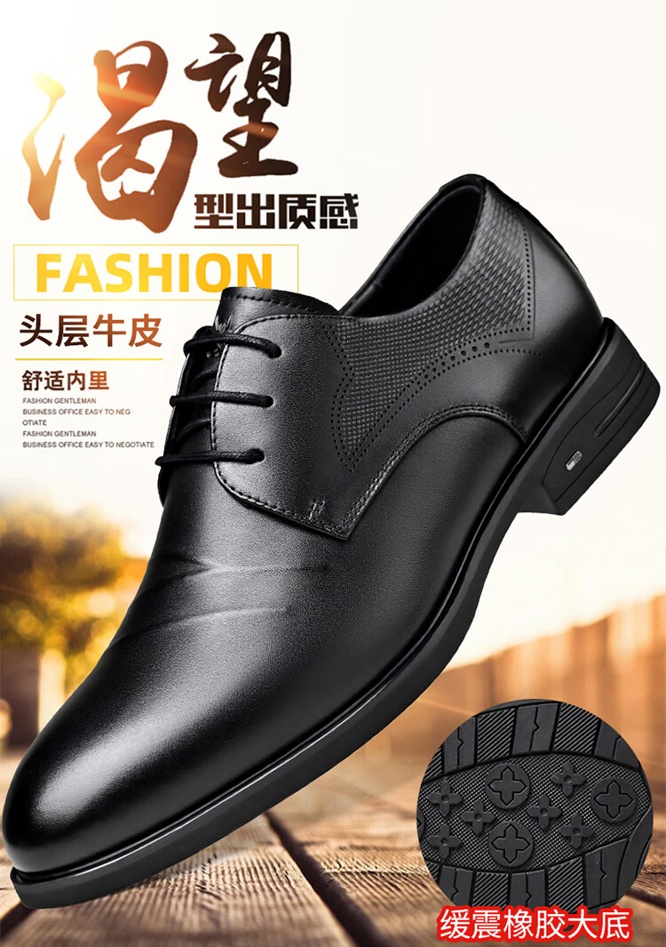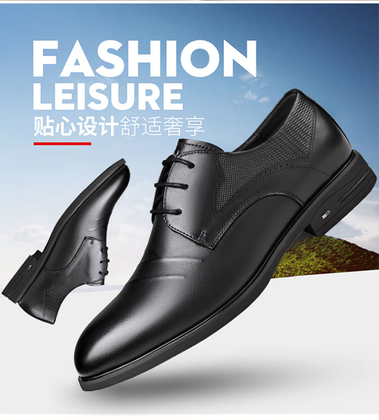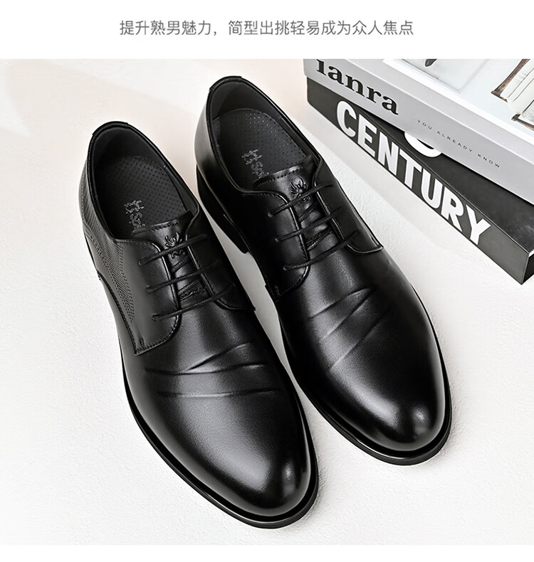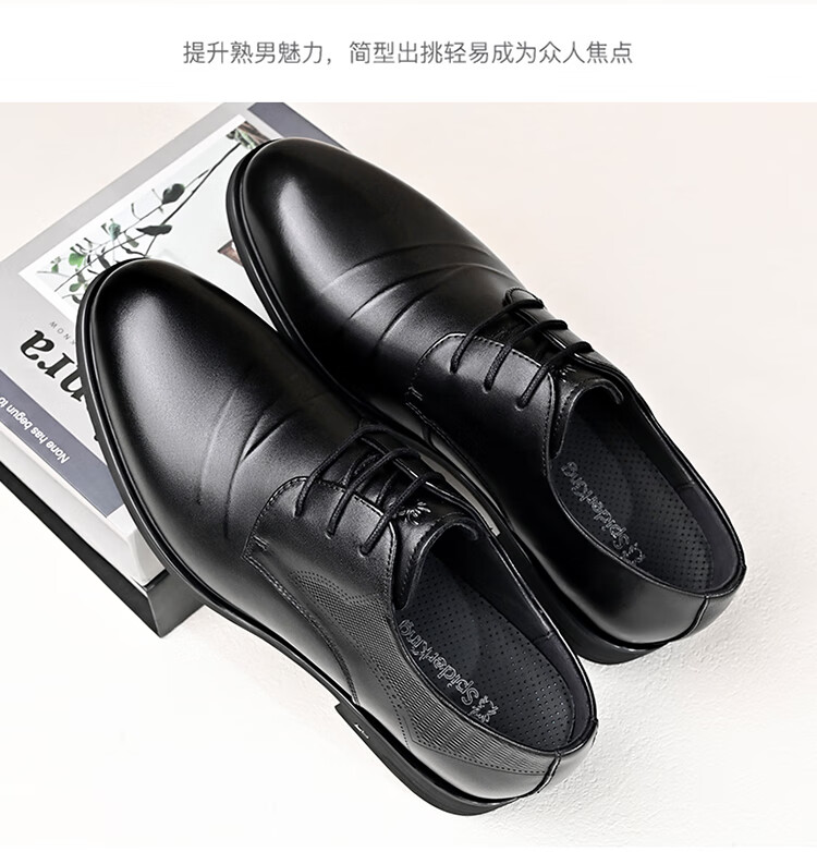 蜘蛛王皮鞋男春秋季牛皮商务正装西装单鞋结婚新郎 2A75F139 黑色 38