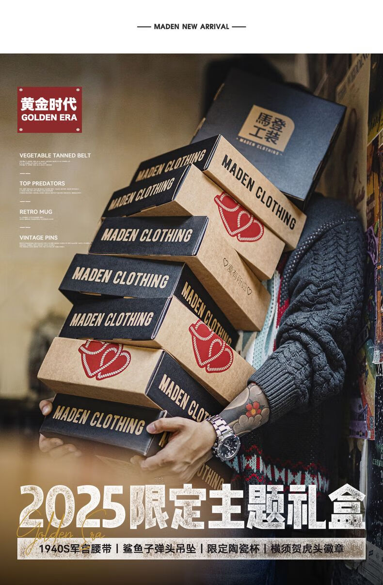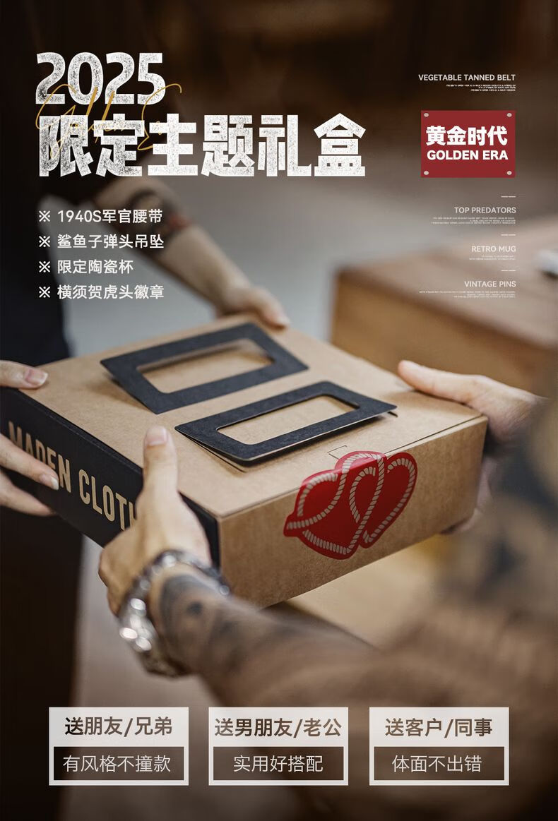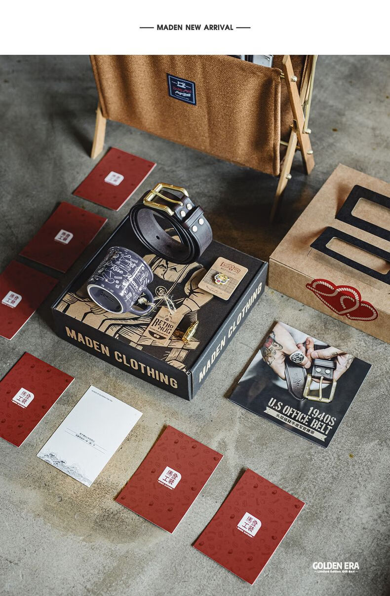 马登工装礼盒送男生七夕节真皮腰带皮带高档礼物送男生送老公实用潮牌 七夕礼盒 【腰带+项链+徽章+马克杯】 均码