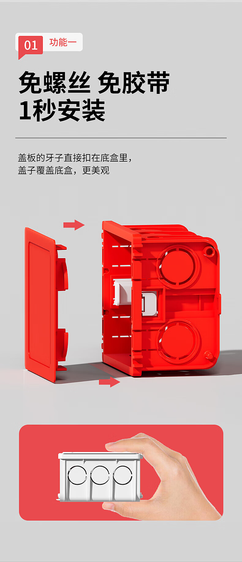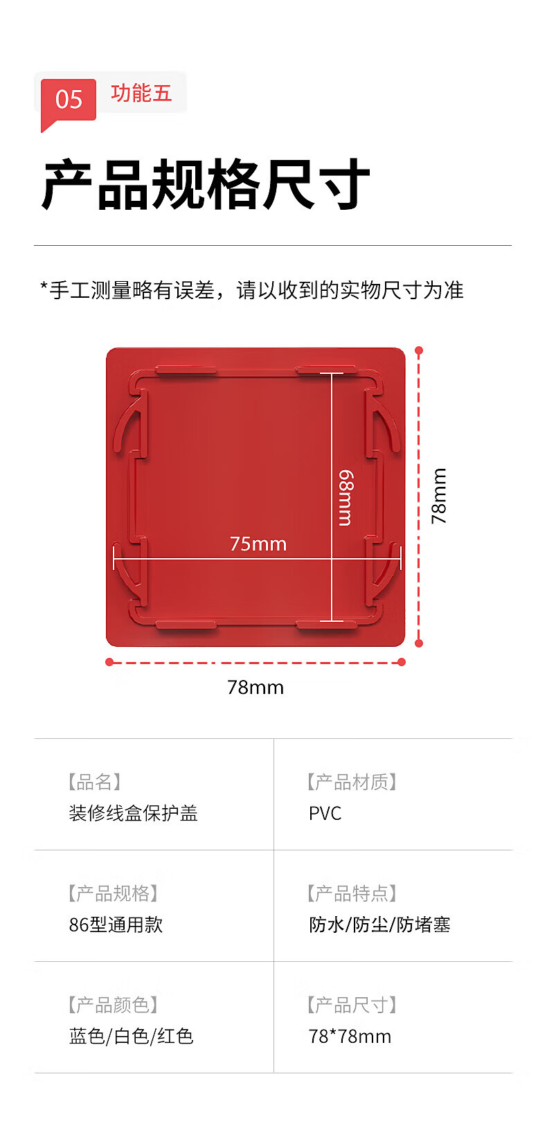 国际电工86型暗装底盒暗盒空白盖板红白色接线盒盖板pvc自扣式免螺丝盖板 自扣免钉86型通用盖板-红色1只装