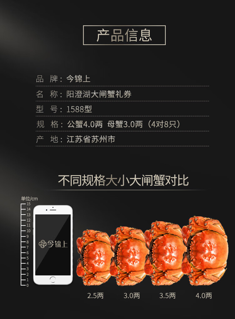 【礼券】今锦上 阳澄湖大闸蟹礼券1588型 公4.0两母3.0两4对8只中秋螃蟹卡礼盒礼品卡