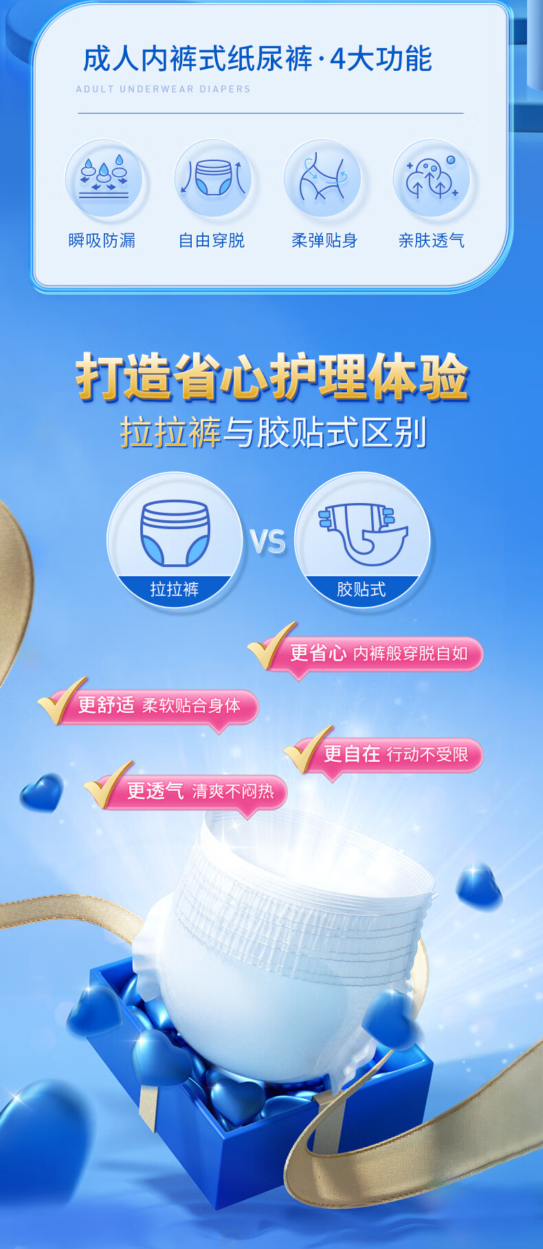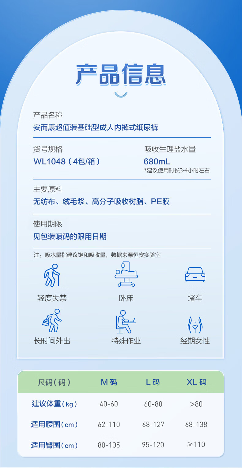 安而康(Elderjoy)超值装基础型成人拉拉裤L48片臀围95-120cm内裤式成人纸尿裤老人