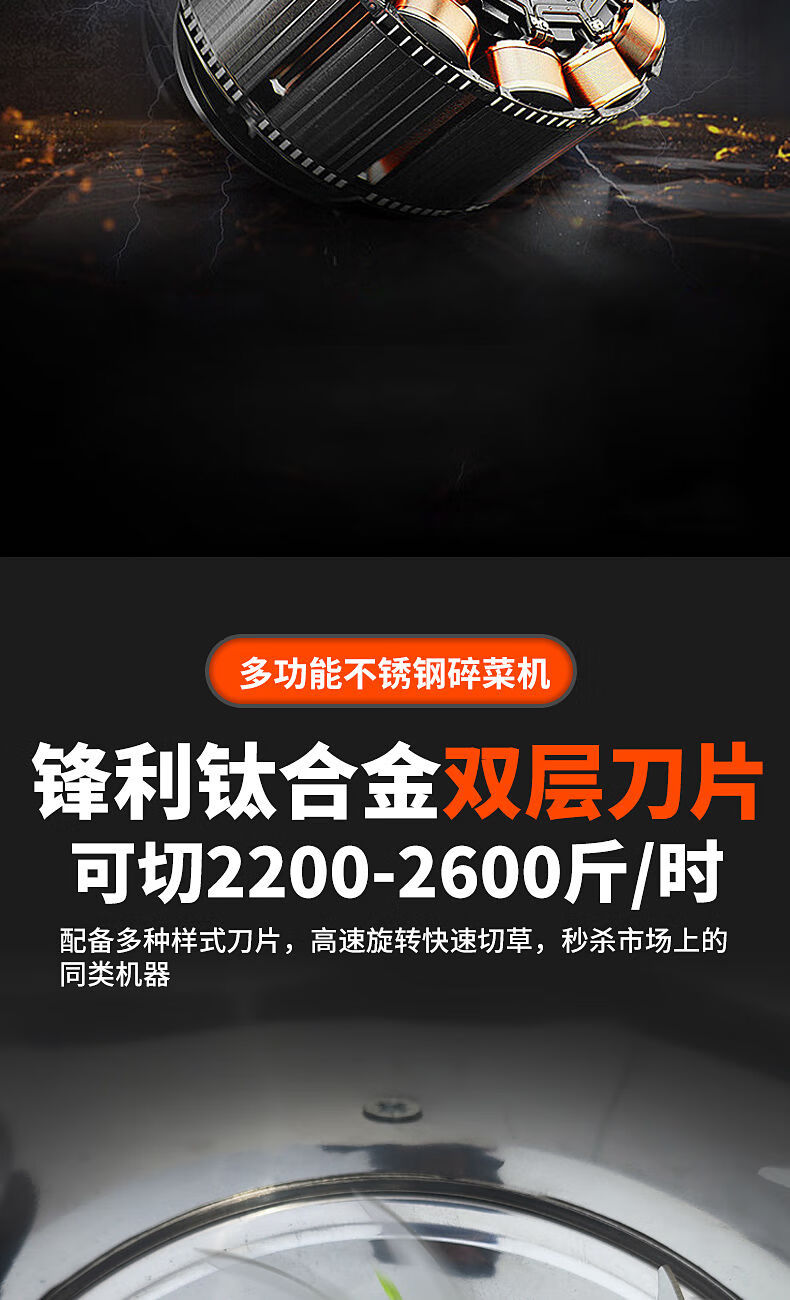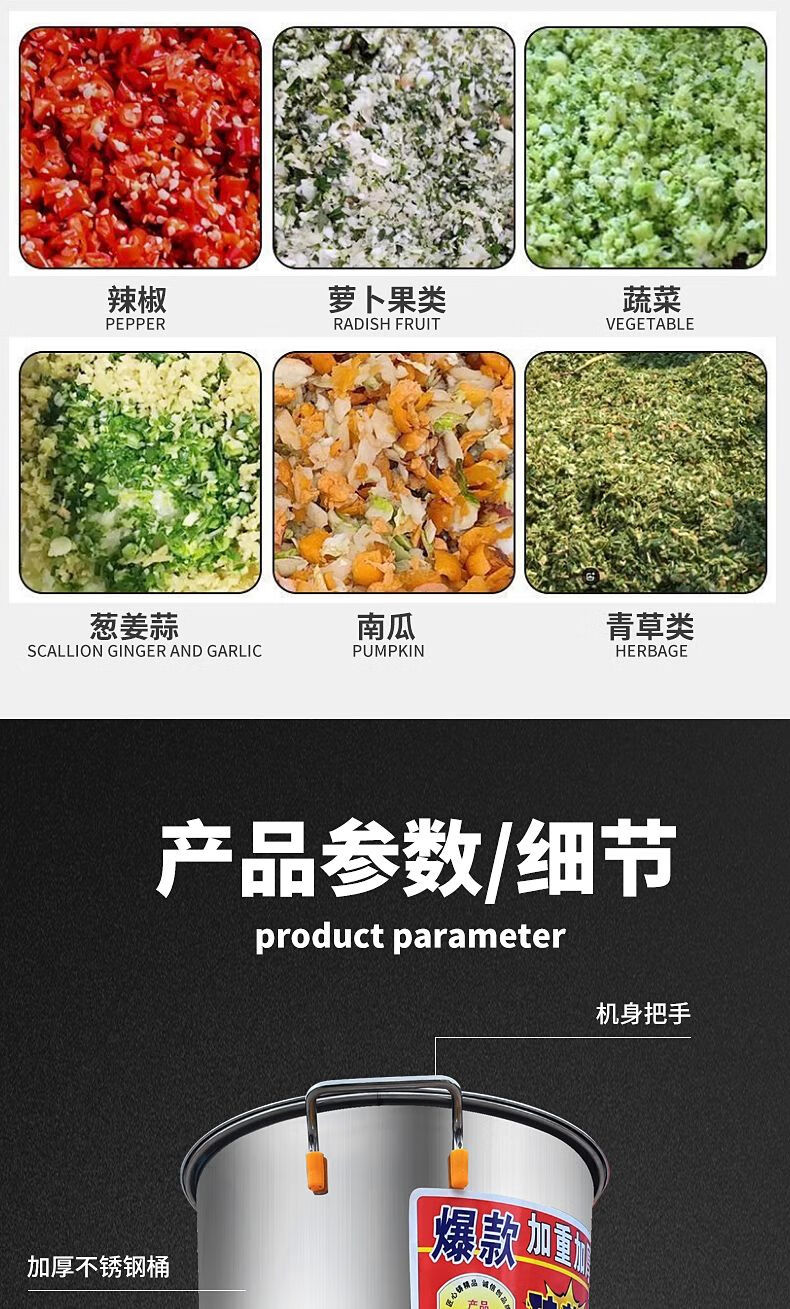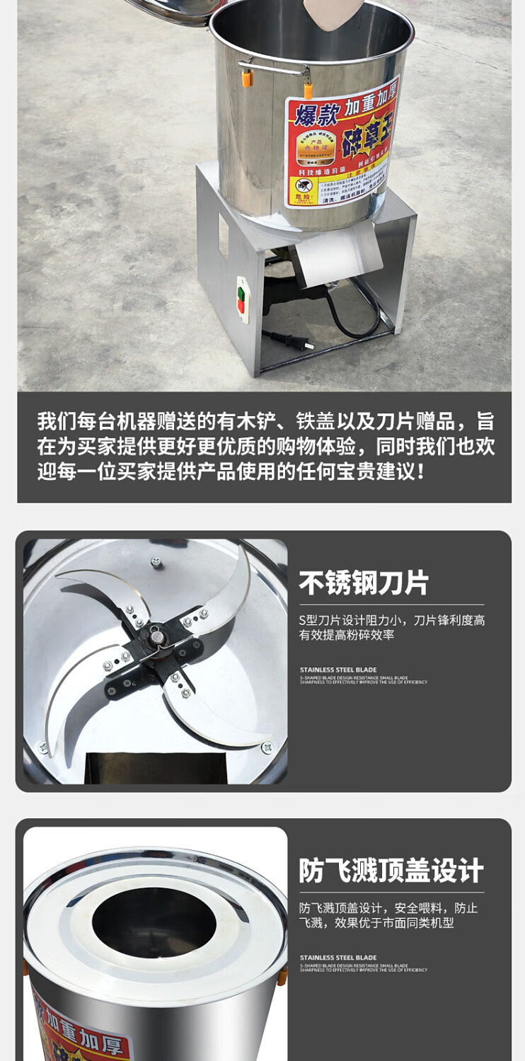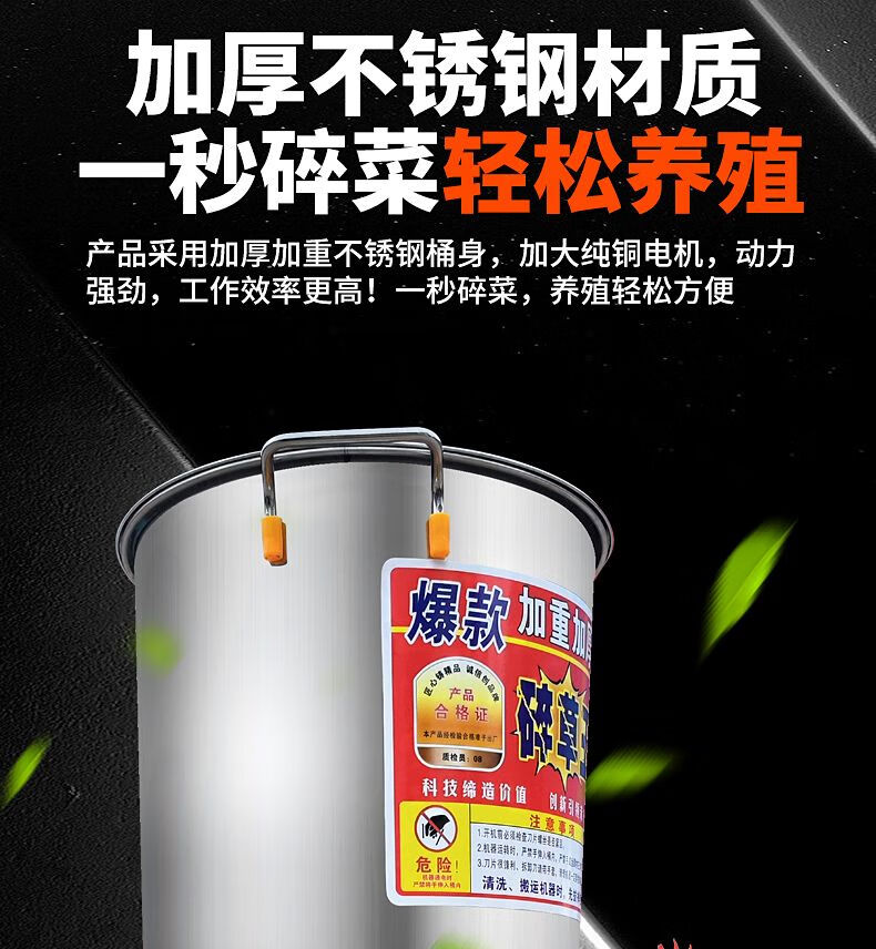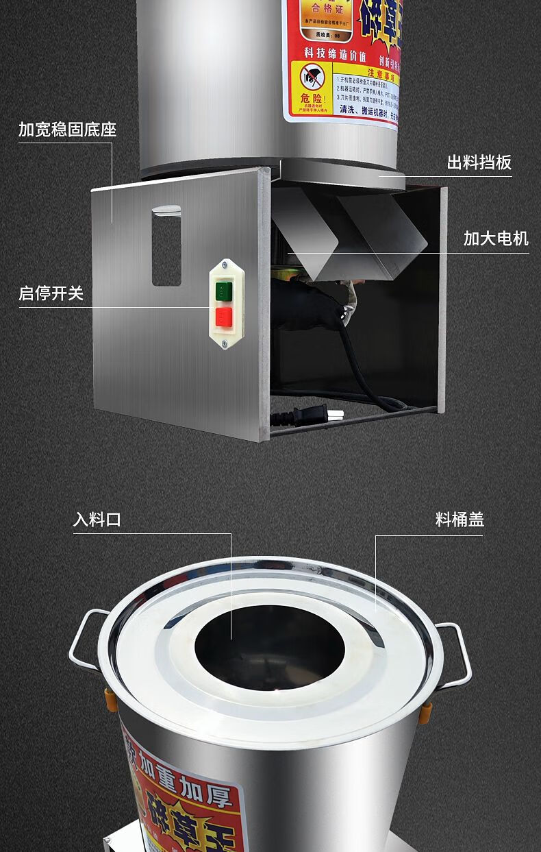 喜鹏 碎菜机养殖不锈钢碎草机喂鸡鸭鹅猪家用切草机粉碎机碎草机桶式 不锈钢桶+1500W【纯铜电机】