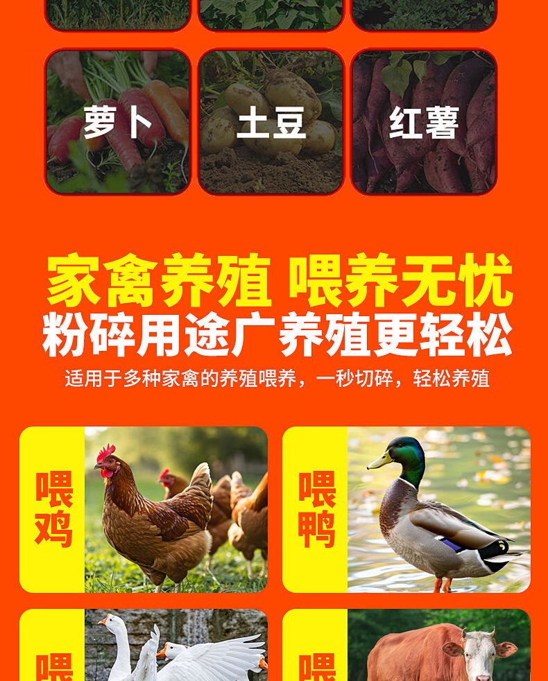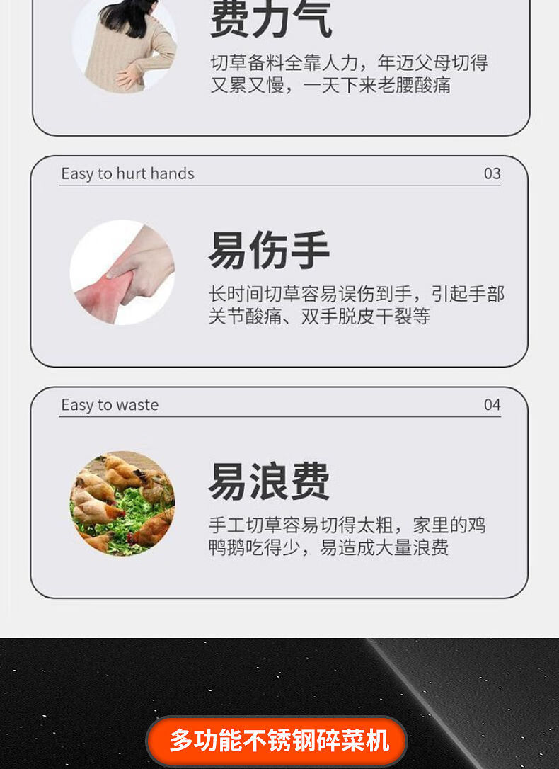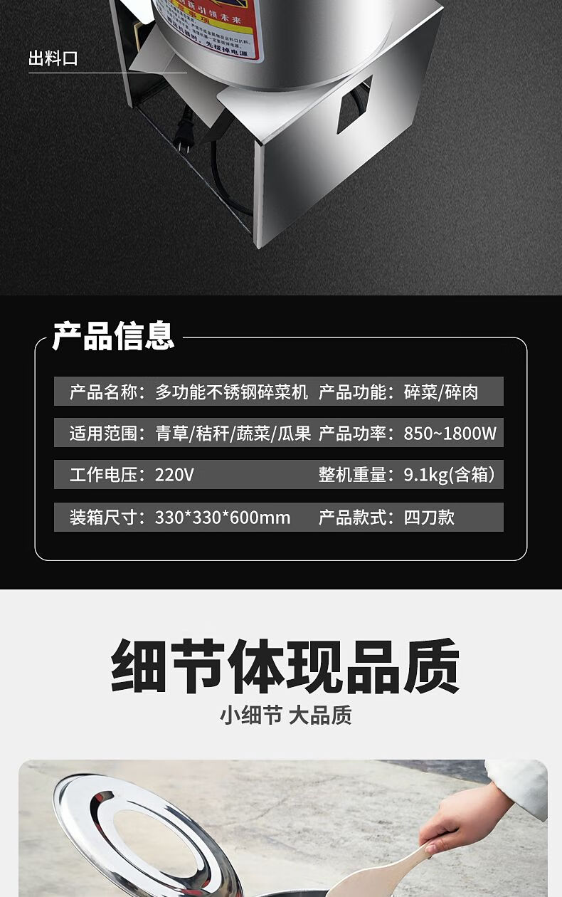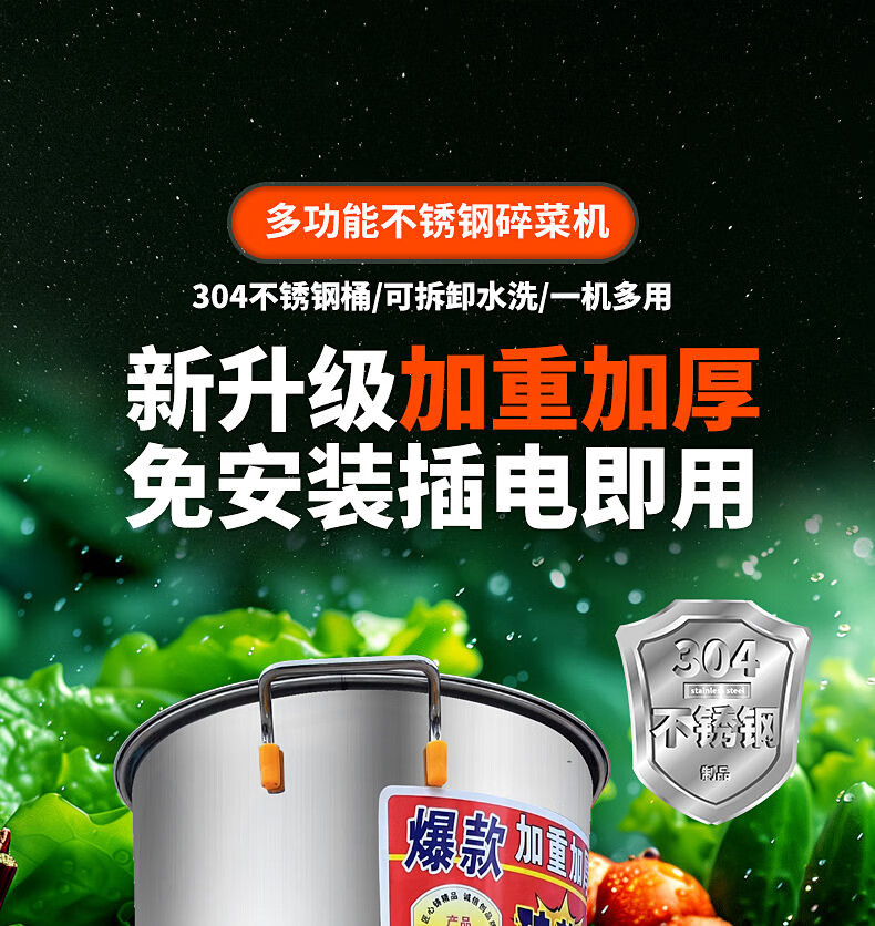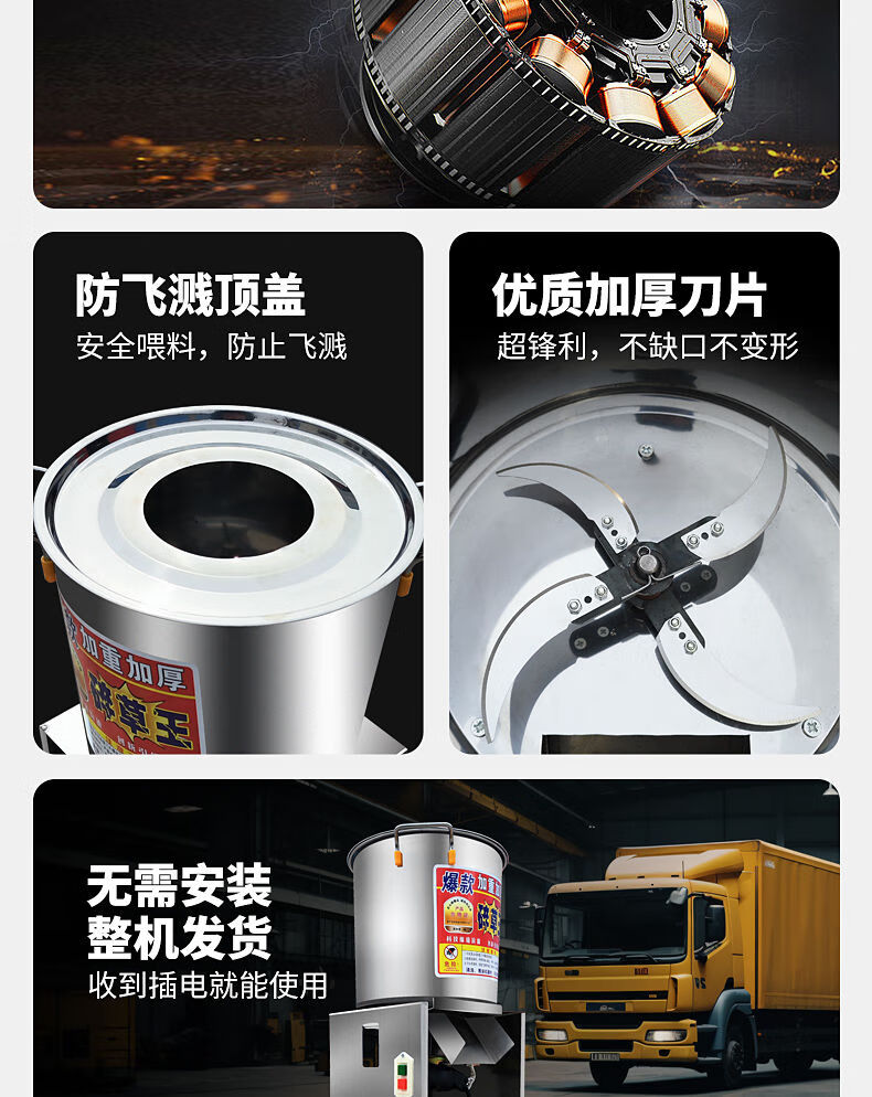 喜鹏 碎菜机养殖不锈钢碎草机喂鸡鸭鹅猪家用切草机粉碎机碎草机桶式 不锈钢桶+1500W【纯铜电机】