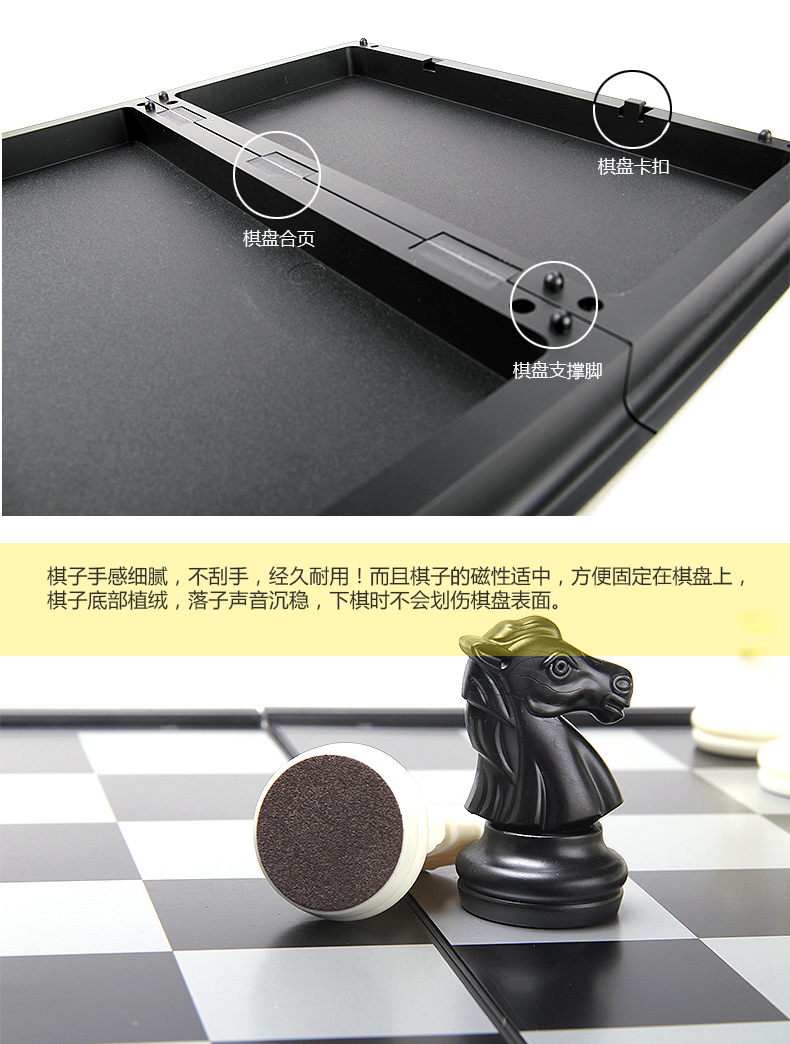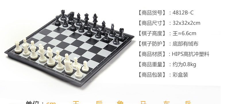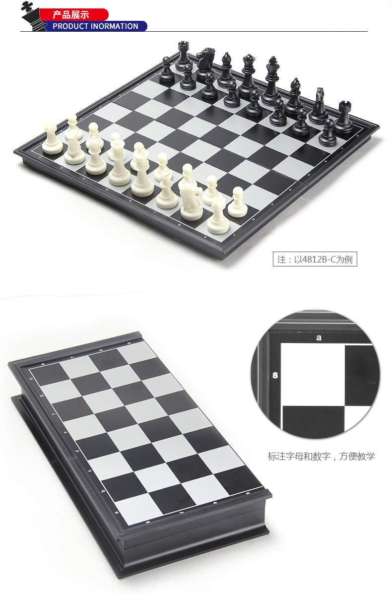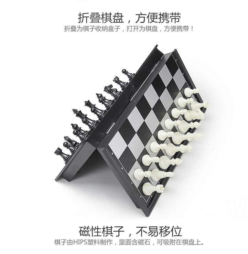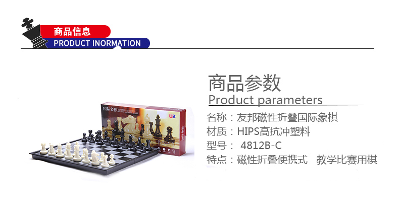 友邦(UB) 国际象棋黑白磁性折叠便携成人儿童学生教学用棋4812B-C(大号)