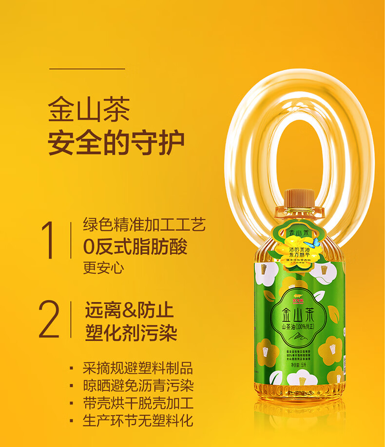 金龙鱼金山茶纯正山茶油食用油 5L 零反式脂肪酸野山茶籽油