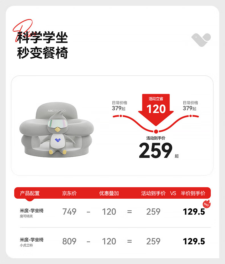 ABCMOKOO婴儿学坐椅不伤脊柱防侧翻座椅宝宝坐立神器沙发餐椅-魔可精灵