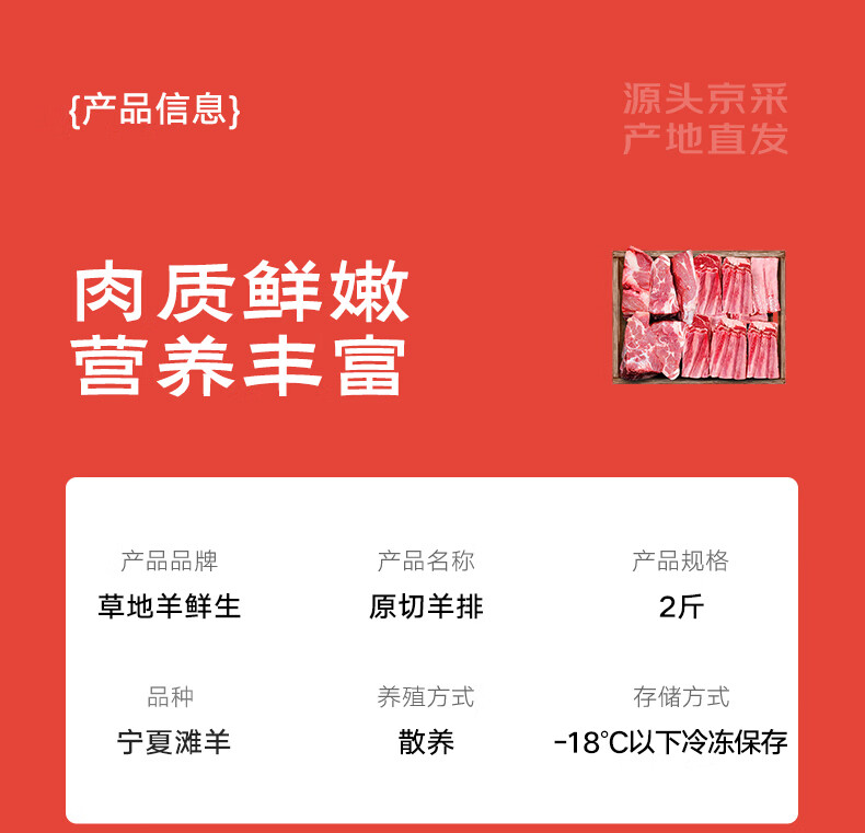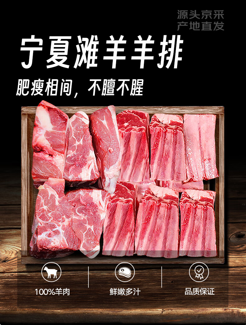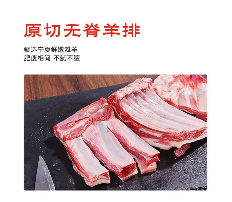 草地羊鲜生 宁夏滩羊 原切羊排块净重2斤 羊肉生鲜羊肋排烧烤食材 源头直发