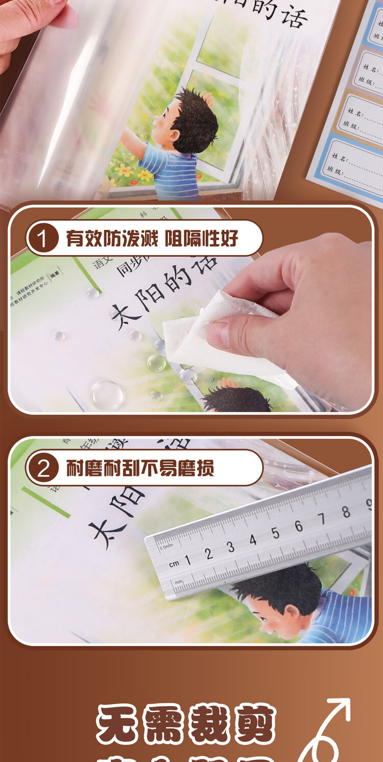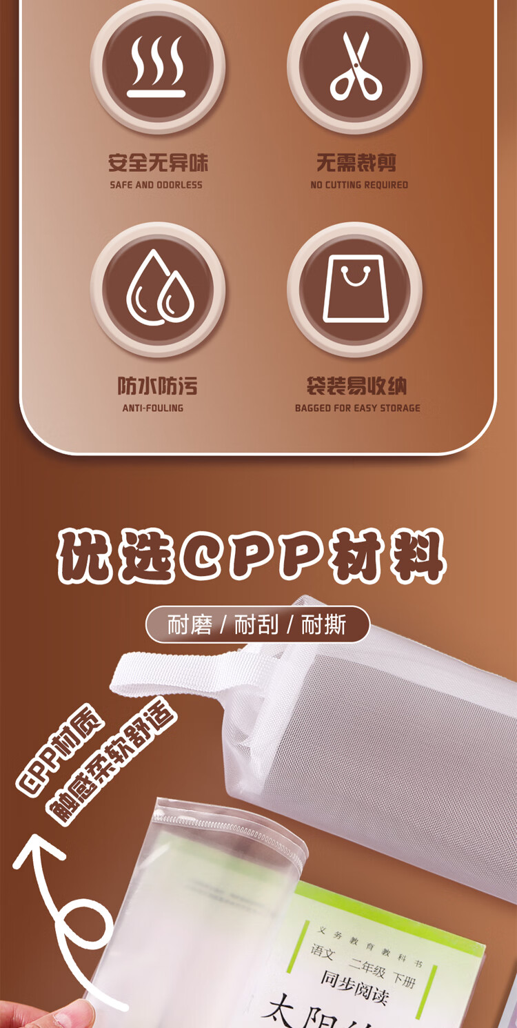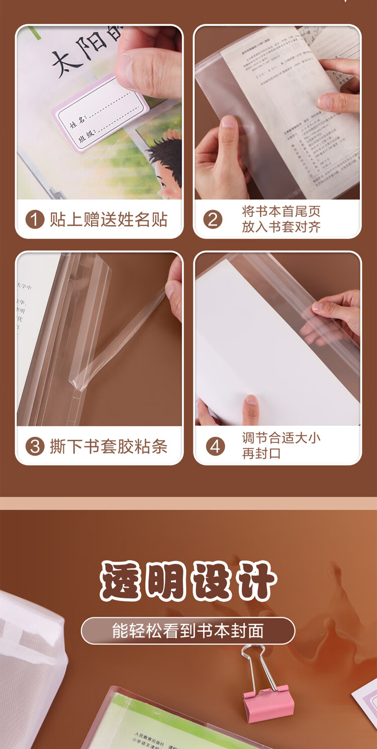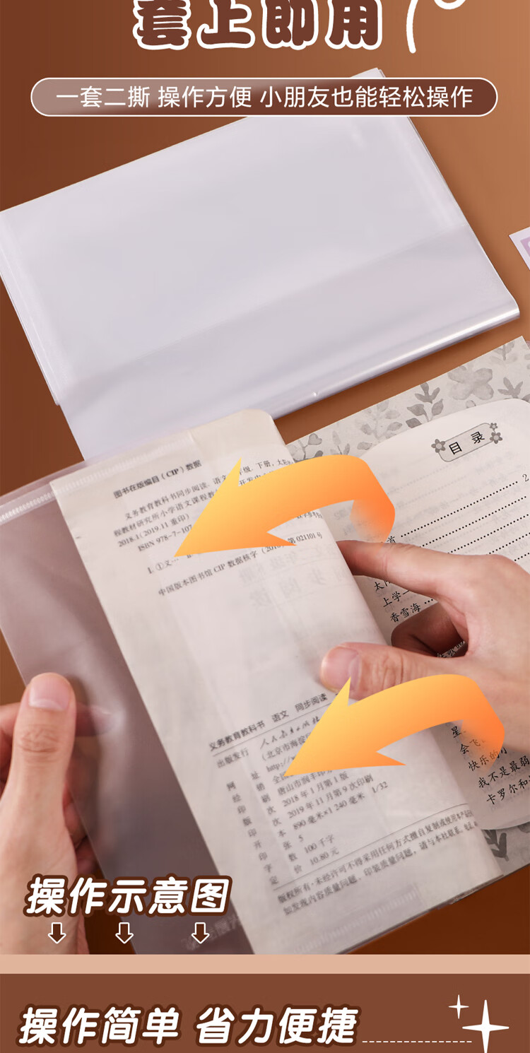 晨光(M&G)书套36K透明防滑书皮10张/包大中小号儿童节书皮包书膜环保学生书套(带姓名贴)AWT944B2-10张/1包