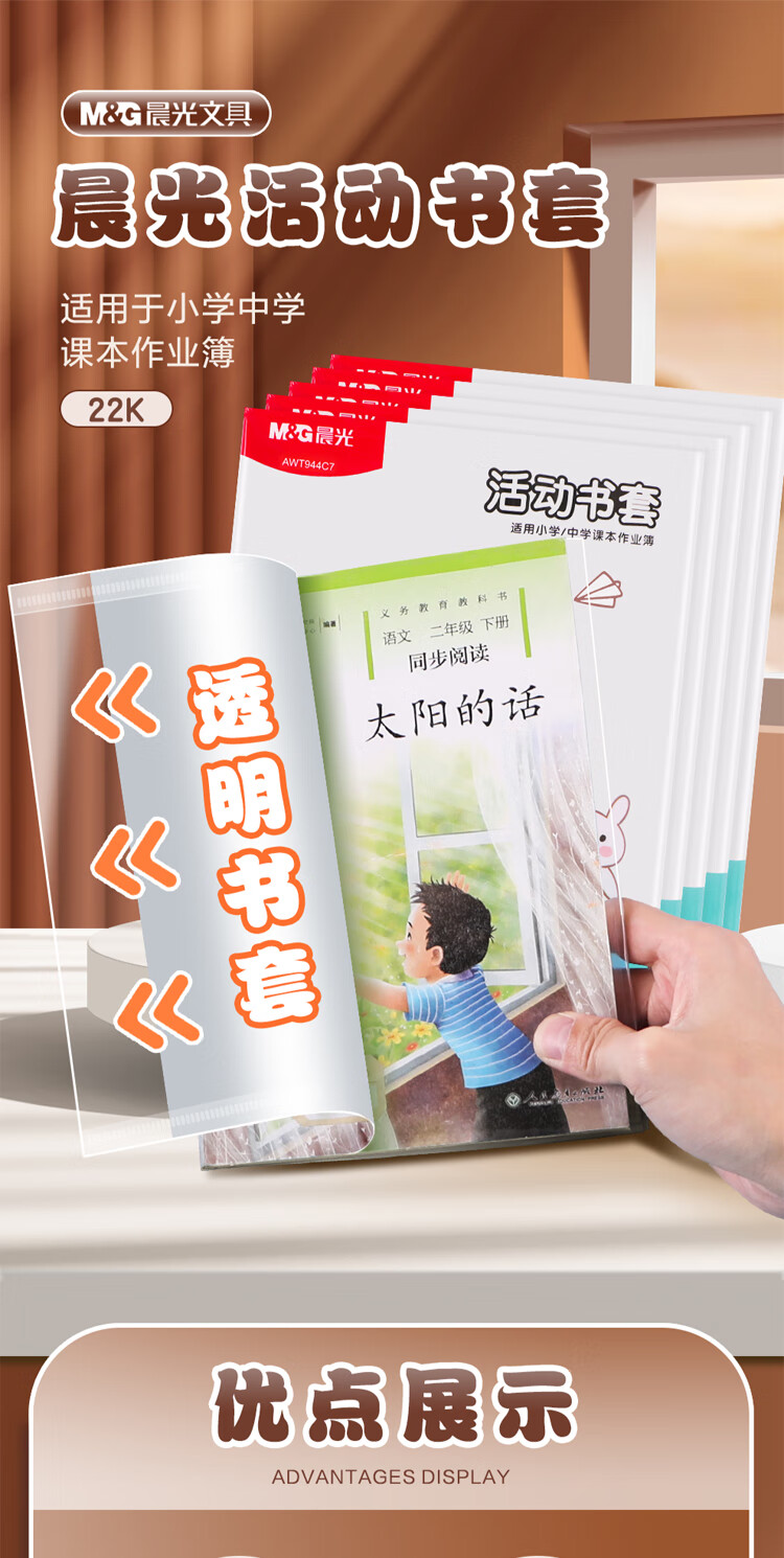晨光(M&G)书套22K透明防滑书皮10张/包大中小号儿童节书皮包书膜环保学生书套(带姓名贴)AWT944C7-10张/1包
