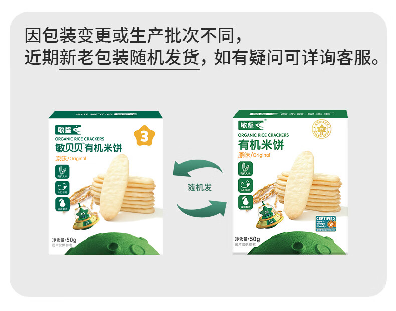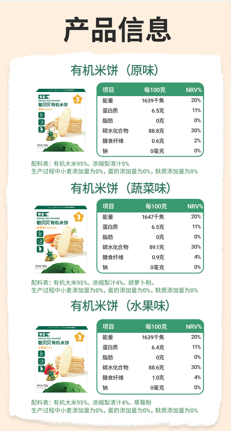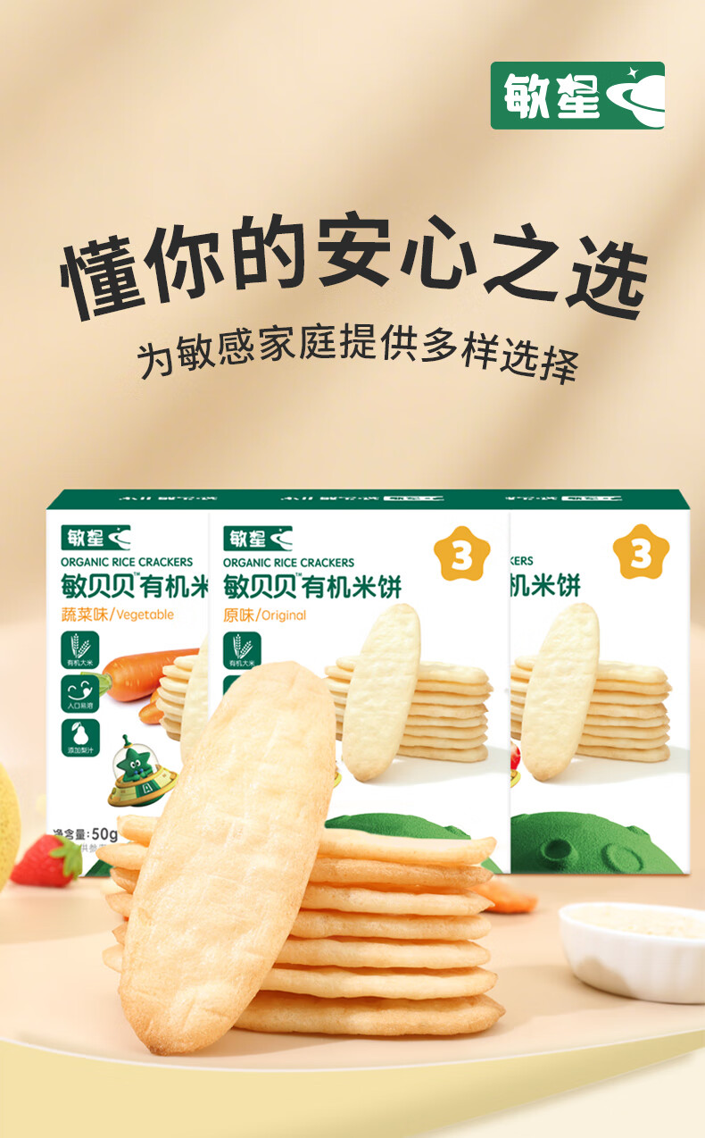 敏星有机大米饼无小麦麸质无蛋奶饼干儿童零食送婴幼儿童宝宝食谱 【纯纯米香】原味有机米饼1盒