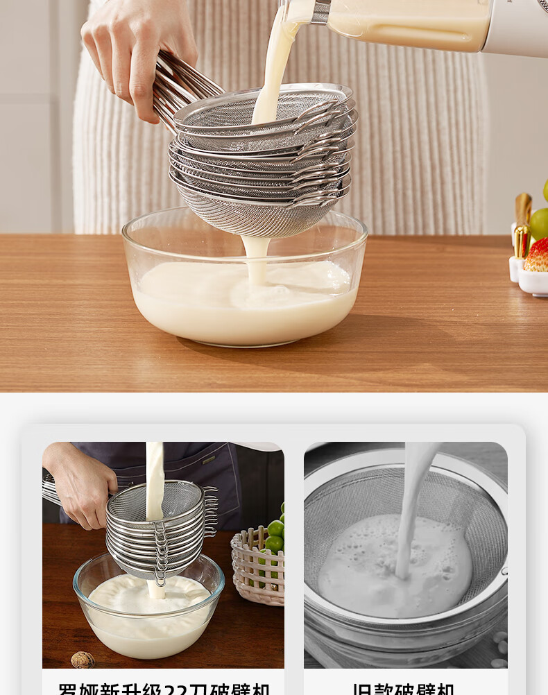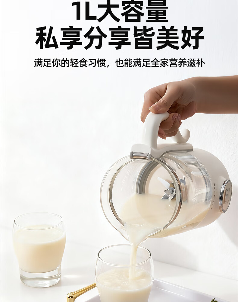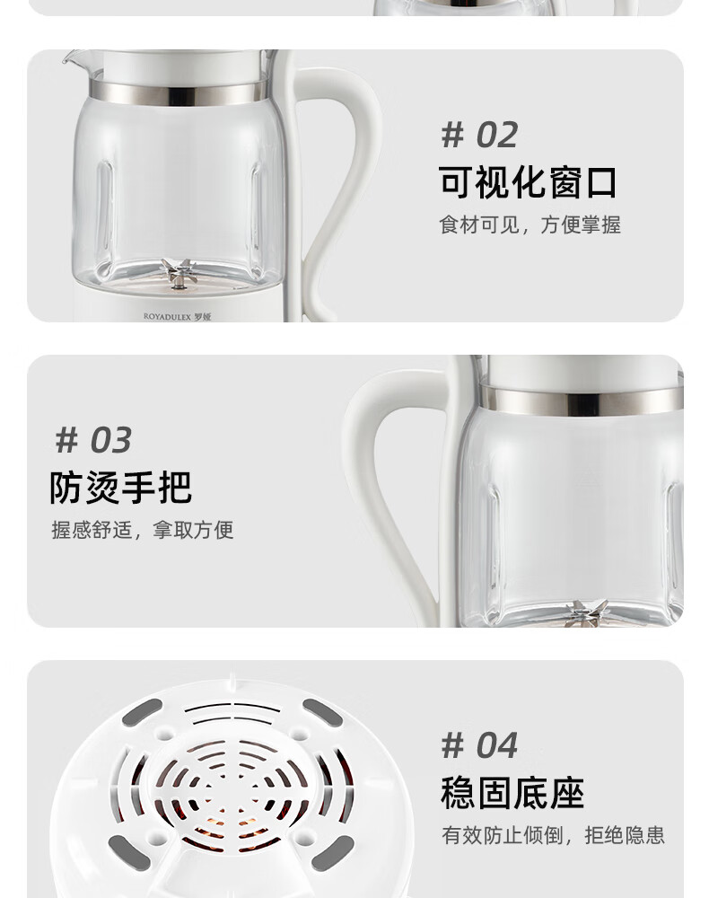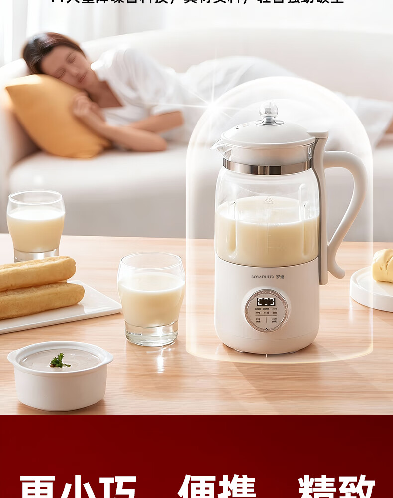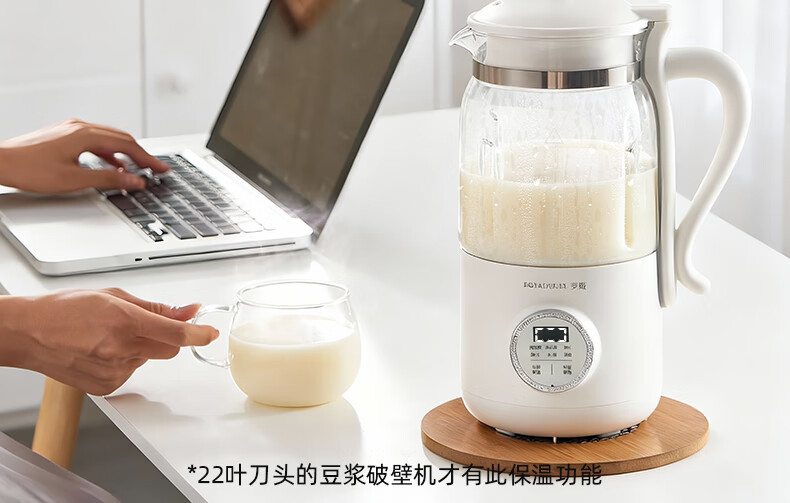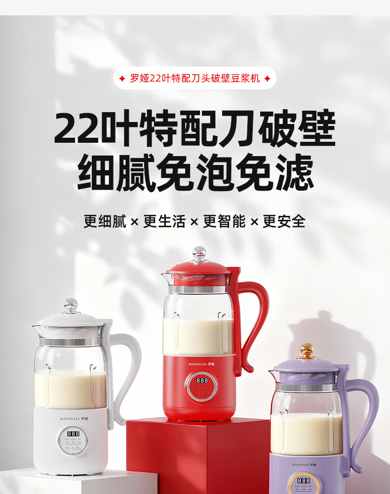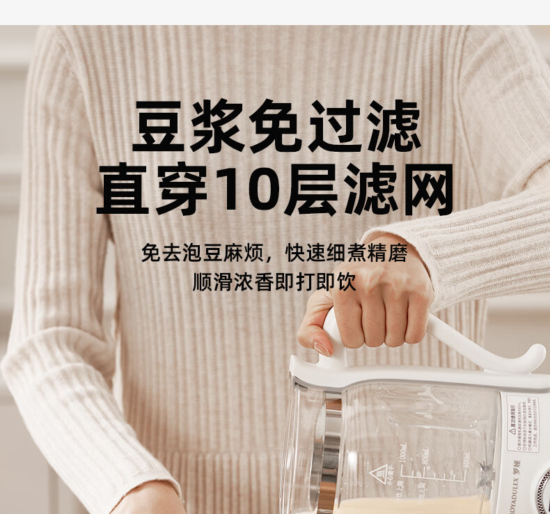 罗娅22叶刀豆浆机破壁机2-3人家用1L全自动免煮免过滤降噪低音小型料理机辅食机米糊机预约保温 雪川白