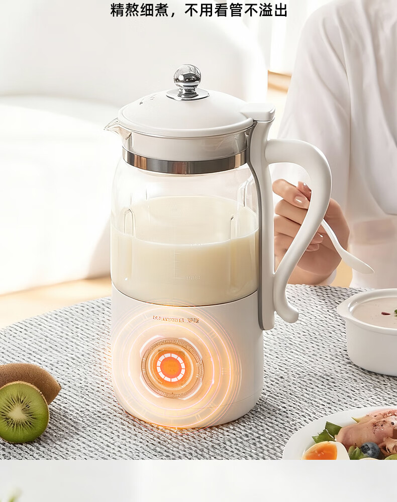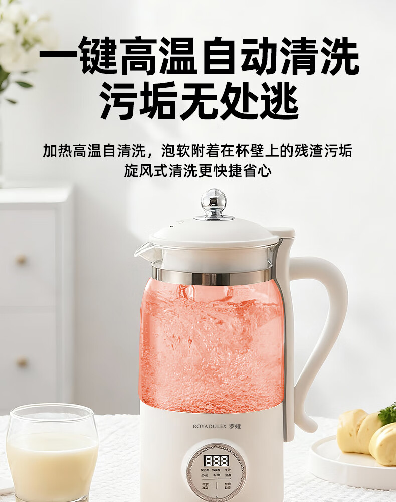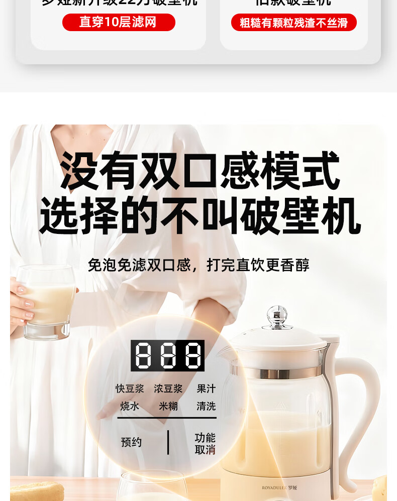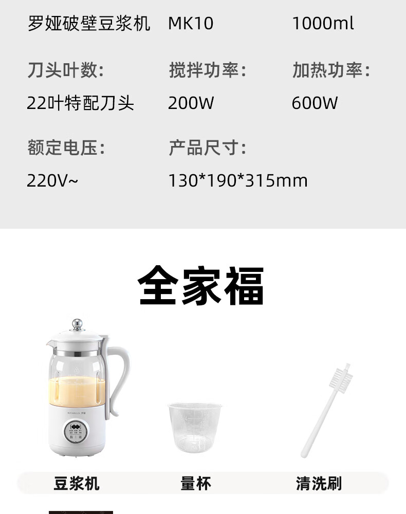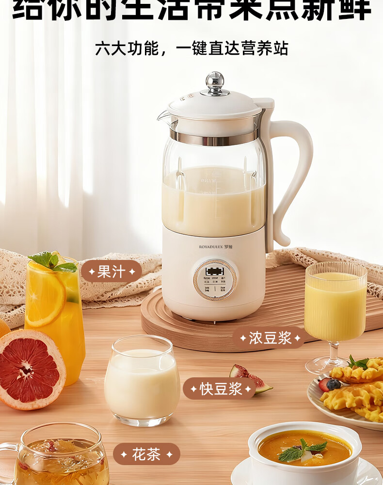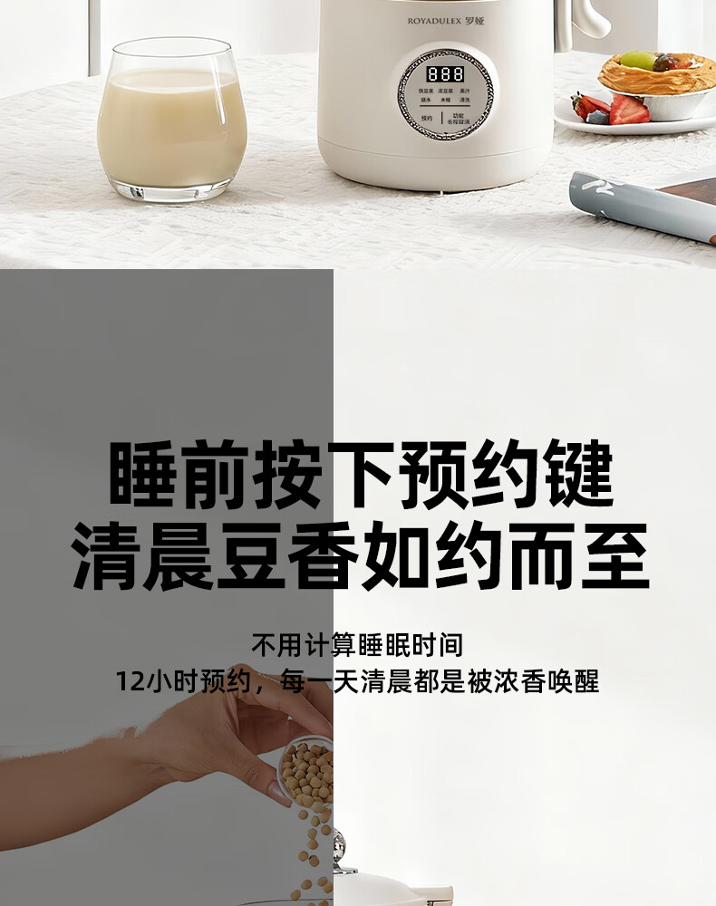 罗娅22叶刀豆浆机破壁机2-3人家用1L全自动免煮免过滤降噪低音小型料理机辅食机米糊机预约保温 雪川白