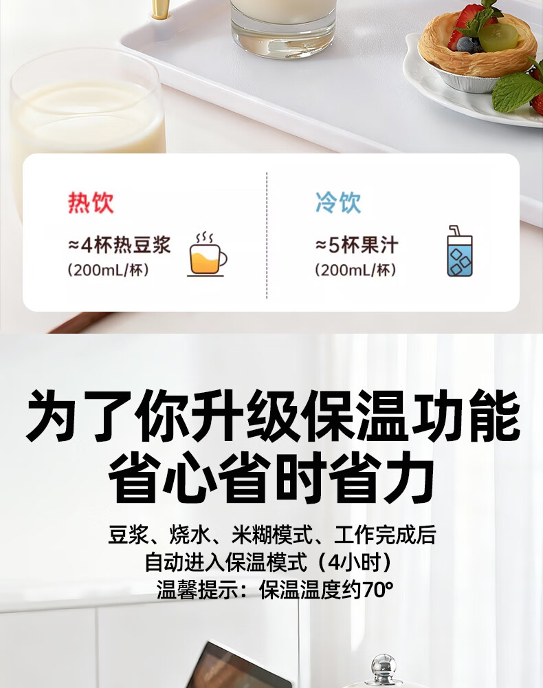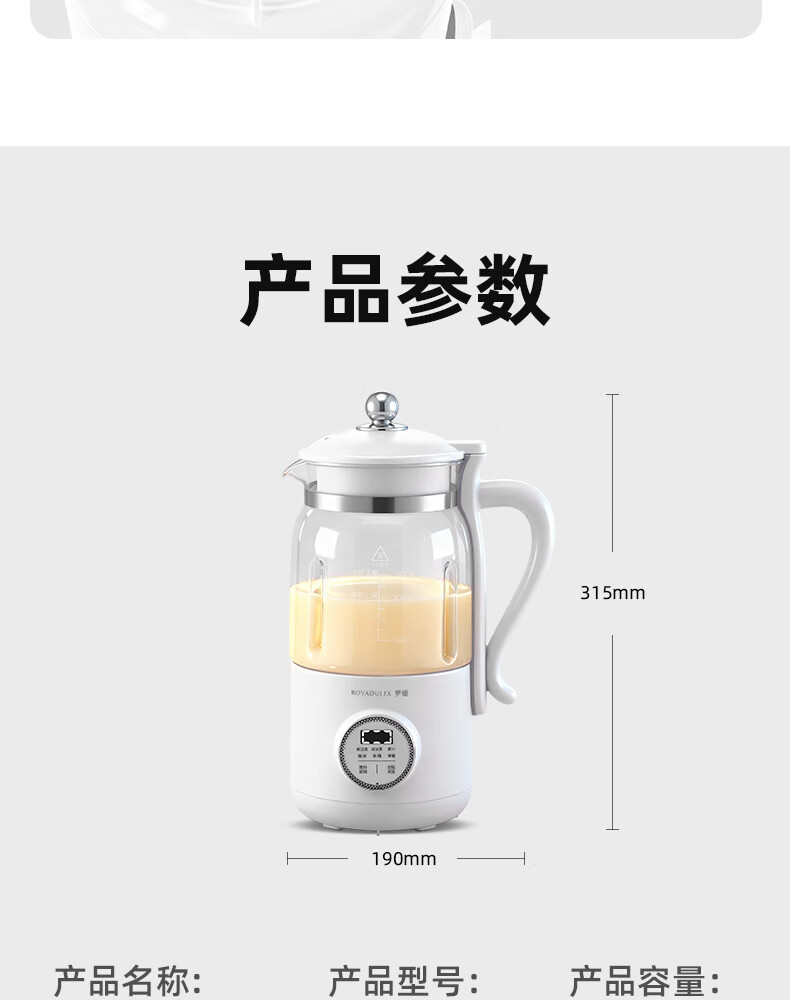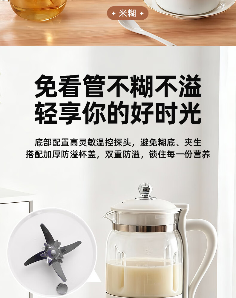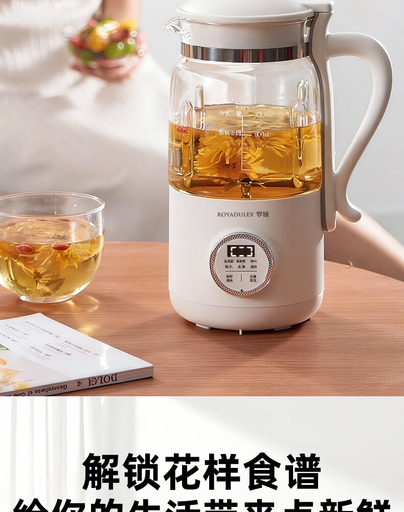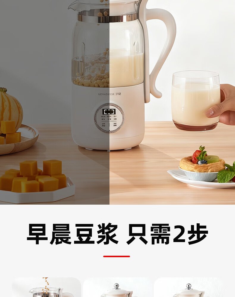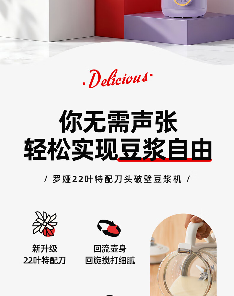罗娅22叶刀豆浆机破壁机2-3人家用1L全自动免煮免过滤降噪低音小型料理机辅食机米糊机预约保温 雪川白